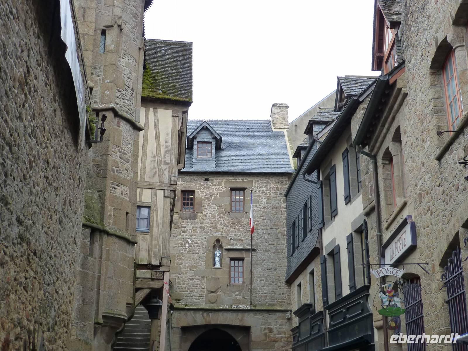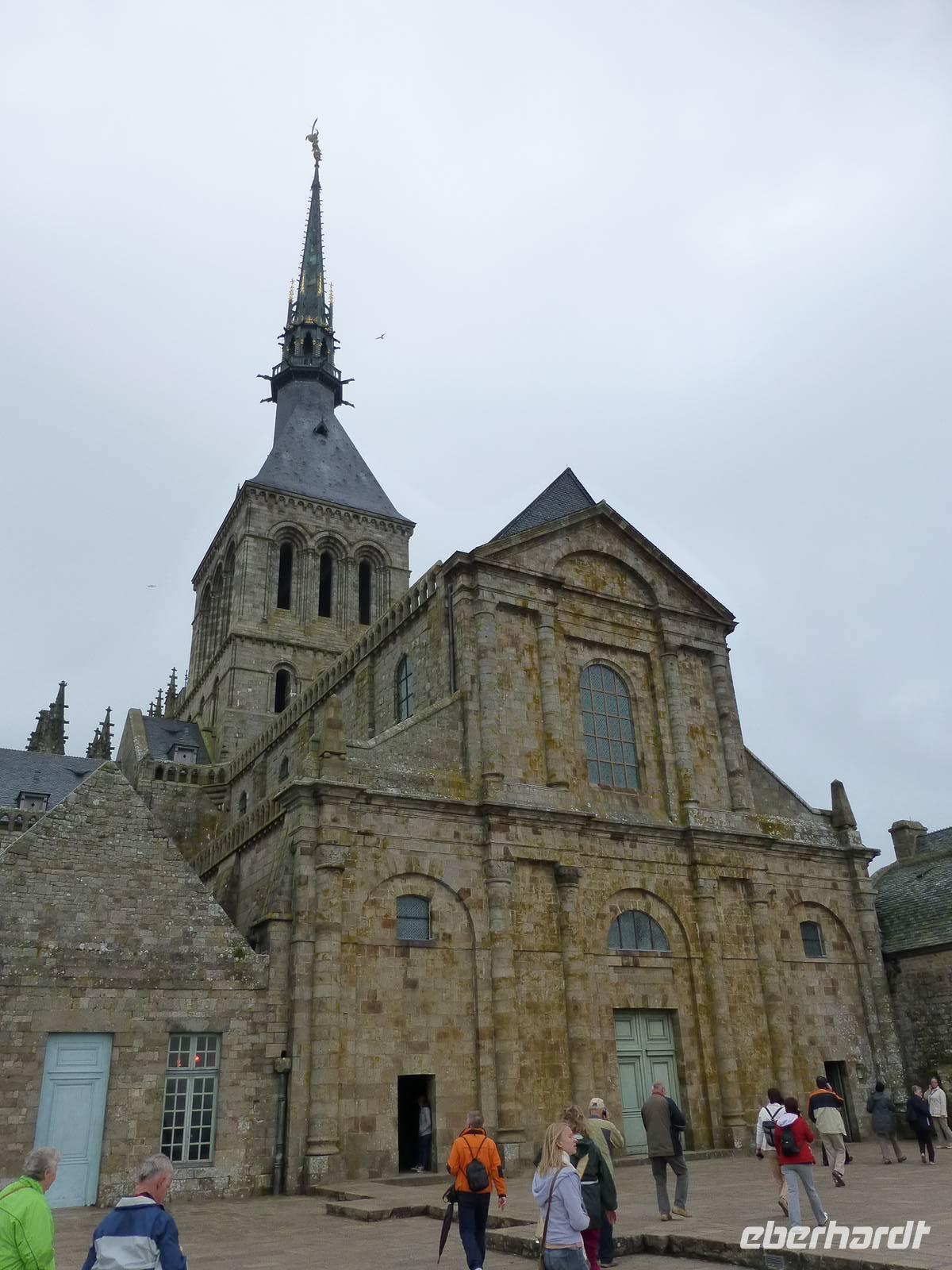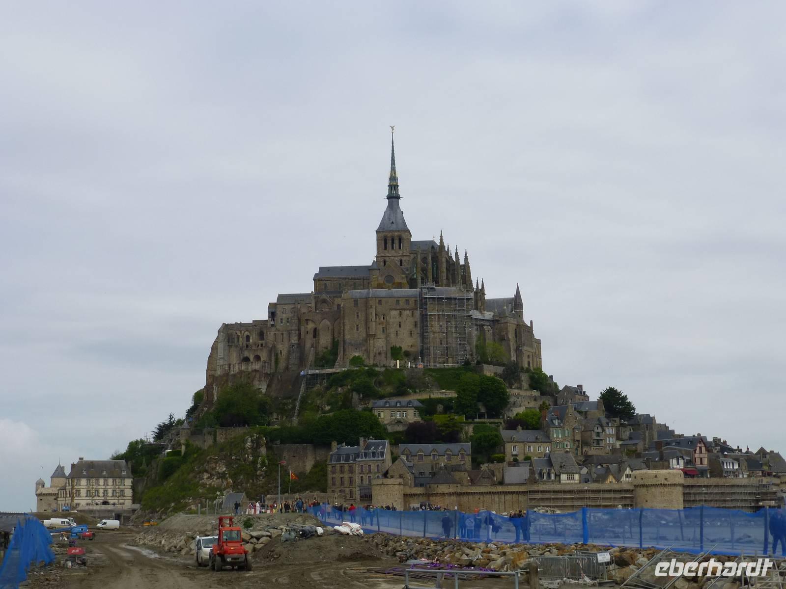 Unser heutiger Tagesausflug führte uns zum bedeutendsten Werk mittelalterlicher Klosterbaukunst, die „Pyramide der Meere" (Victor Hugo), dem Mont Saint Michel. Die Legende erzählt, dass im Jahr 708 der Erzengel Michael mehrmals dem Bischof von Avranches, heilige Aubert, im Traum erschienen war. Von ihm erhielt er den Auftrag, auf dem Mont Tombe genannten Hügel eine kleine Kapelle zu errichten, dem Grundstein des heutigen Klosterberges.