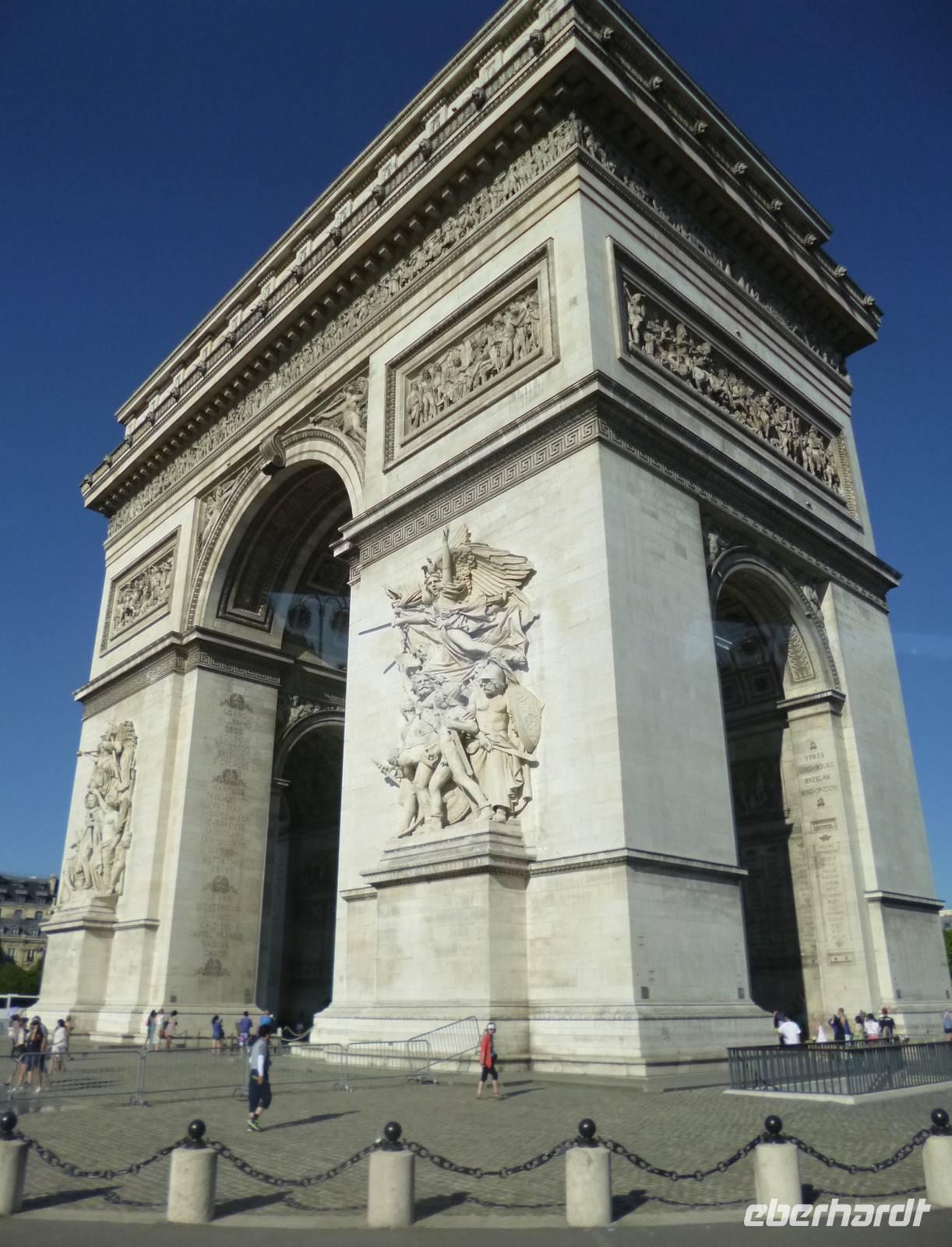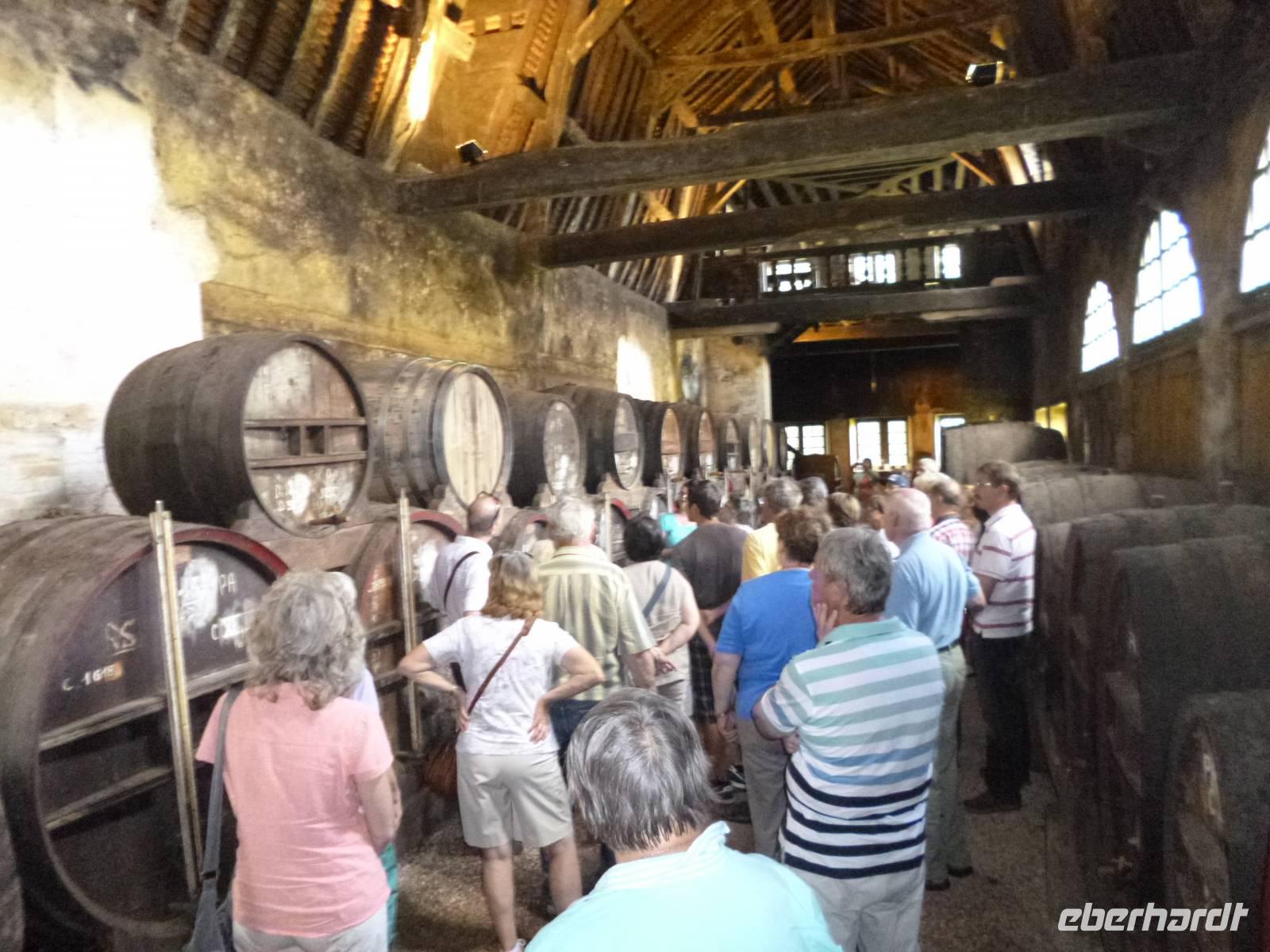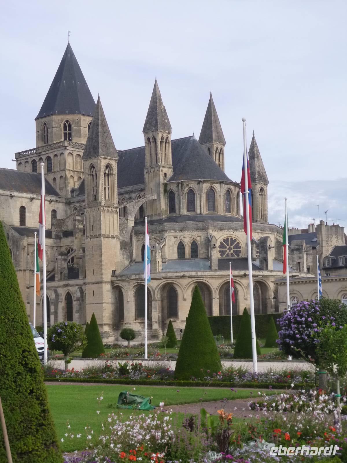 Mit neuer Energie und gut gestärkt verabschieden wir uns bis bald, denn auch die letzte Nacht unserer Rundreise werden wir hier verbringen. Nur 15 Minuten Fahrtzeit später erreichen wir den Platz Place de la Bastille in Paris, wo wir auf Martin, unseren örtlichen Reiseleiter, treffen. Vorbei an zahlreichen Sehenswürdigkeiten wie dem Nôtre Dame, dem Louvre, der Champs-Élysées und dem Triumpfbogen geht es von Osten nach Westen einmal quer durch die Stadt der Liebe. Sogar einen Blick auf den Eiffelturm erhaschen wir. Eine kleine Zugabe, die nur möglich ist, da kaum Verkehr herrscht und die Stadt wie verlassen wirkt. Wo sind nur die Franzosen geblieben? Wir setzen die Fahrt fort und erreichen Rouen am Mittag. In dieser Stadt beeindruckt das Fachwerk sowie die Kirche Nôtre Dame, die Motiv vieler Gemälde von Claude Monet ist. Wir bummeln entlang der Straße „Rue du Gros Horloge" und erfahren mehr über die tragische Geschichte der Jeanne d'Arc, der Jungfrau von Orléans. Da Sonntag ist, sind die vielen Geschäfte geschlossen - leider oder zum Glück? Nach ein wenig Freizeit werden wir von unserem roten Flitzer wieder abgeholt und fahren weiter in Richtung Norden über die Bücke „Pont de Normandie" ins malerische Honfleur. Um den alten Fischerhafen laden zahlreiche Restaurants und Cafés zum Verweilen ein. Ein kleiner Bummel, eine Kugel Eis und weiter geht's nach Cheverny, denn im auf dem Grunstück des Schlosses "Chateau du Breuil" wartet eine Calvadosverkostung auf uns. Bevor wir jedoch probieren dürfen, erhalten wir viele interessante Informationen über Herstellung und Lagerung dieses typischen Apfelschnaps aus der Normandie. Am Abend erreichen wir unser Tagesziel Caen.