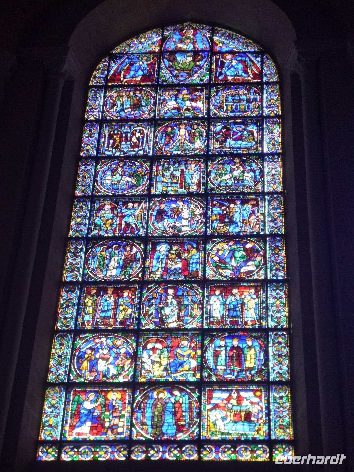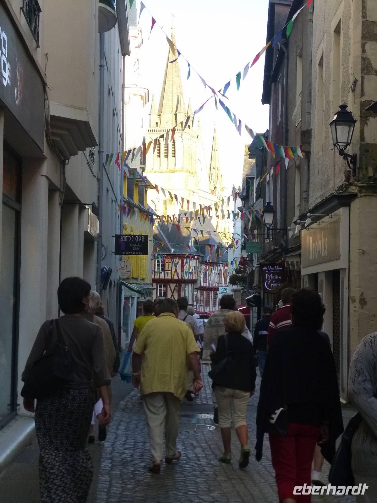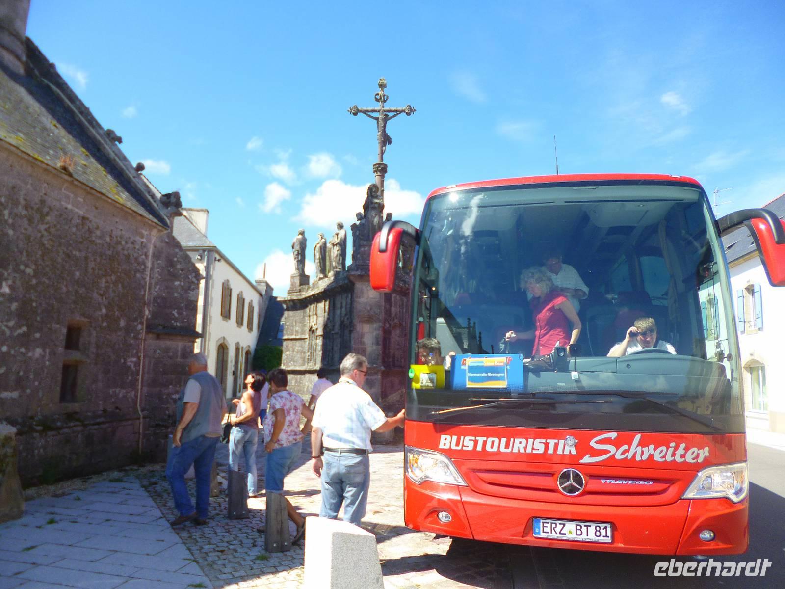 Heute wird es mystisch. Auf der Fahrt durch den „Zauberwald" der Brocéliande, dem Wald von Paimpont, erzählt uns Martin jede Menge Sagen von Merlin dem Zauberer, von Rittern der Tafelrunde und Feen, die sich hier zugetragen haben sollen. Durch's wilde Geäst kämpfen wir uns bis zur sagenumwobenen Grabstätte des Merlin. Während der Fahrt tönt keltische Musik durch den Bus. Verzaubert erreichen wir Rennes, die Hauptstadt der Bretagne. Es ist Markttag. Was für ein wildes Treiben! Einige stürzen sich sofort ins Getümmel, andere schließen sich einem kleinen Rundgang an. Unsere deutsche Pünktlichkeit beim Treff zur Weiterfahrt nützt uns hier eher wenig, da Metzgers Kleinwagen unserem großen roten Flitzer den Weg versperrt. In der Ruhe liegt die Kraft. Und so fahren wir wenige Minuten später Richtung Chartres. Was in dieser Stadt beeindruckt, ist selbstverständlich die Kathedrale Nôtre Dame, eine der berühmtesten gotischen Kathedralen. Mit ihren außergewöhnlichen und farbenprächtigen Fenstern und den mehr als 3500 Statuen spiegelt sie die Kunst des 12. und 13. Jahrhunderts wieder. An diesem Abend schließen wir den Kreis und erreichen unser Hotel vom ersten Abend, ganz problemlos.