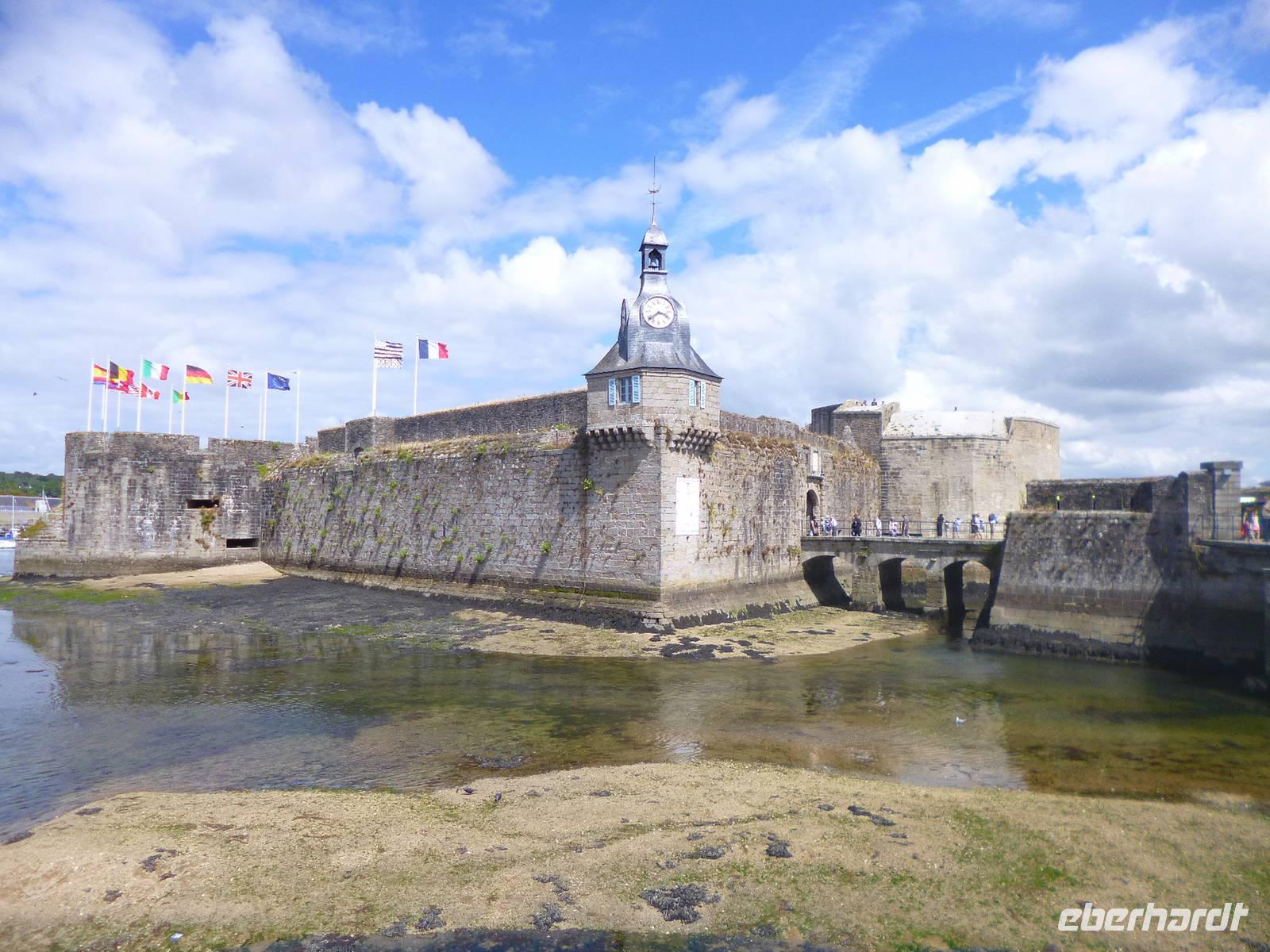 In der Nacht hat es geregnet, denn die Straßen sind nass. Wir haben jedoch Glück mit dem Wetter, bleiben vom hier typischen Regen weitestgehend verschont und konnten bisher die Sonne bei angenehmen Temperaturen genießen. So auch an diesem Tag, an dem wir zur westlichsten Spitze des französischen Festlandes, der „Pointe du Raz", aufbrechen. Nach einem kurzen Fußmarsch erreichen wir die Statue der Nôtre-Dame-des-Naufragés, der Mutter Gottes der Schiffbrüchigen. Ein paar Meter weiter schlagen die Wellen an die Felsen. Dennoch bleibt der stürmische Wind aus. Ein Leuchtturm auf einer vorgelagerten Insel bietet ein tolles Fotomotiv. Die Fahrt im roten Flitzer führt uns weiter durch das Süd-Finistère entlang von Gezeiten beeinflussten Flüssen und Buchten. Wir halten auch kurz in Confort, um in der Kathedrale das seltene hölzerne Glockenspielrad zu bestaunen, bevor wir unsere Fahrt nach Concarneau fortsetzen. Natürlich ist auch bei diesem Aufenthalt die Zeit zu knapp. Die Festungsanlage, die sogenannte „Ville close", mit ihren schmalen Gassen, bunten Häusern, Souvenirläden und Cafés lädt zum Verweilen ein. Keltische Musik untermalt das Ambiente. Bei unserer Rundfahrt durch die Bretagne dürfen die Menhirefelder in der Nähe von Carnac nicht fehlen, über dessen Herkunft und Sinn viele Spekulationen kreisen. Nachdem wir beim Abendessen im Hotel in Vannes neue Energie gesammelt haben, entdecken wir im Anschluss auf einem abendlichen Rundgang das Rathaus, die Fachwerkhäuser, die römisch-katholische Kathedrale und das Schloss "Château de l'Hermine". Der Abend lässt sich hier gut bei einem Gläschen Wein in einer der zahlreichen Bars ausklingen.