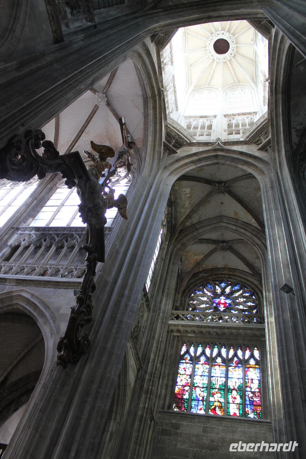Nach einer langen Anreise bis nach Paris, begann unsere Entdeckungsreise am zweiten Tag mit einem Stadtrundgang in Rouen. Vorbei an der durch Claude Monet berühmt gewordenen Kathedrale gingen wir zum Viertel mit den schönen Fachwerkhäusern und dem bizarren Beinhaus des Heiligen Maclou. Durch die Innenstadt führte uns der Rundgang zum Wahrzeichen der Stadt, dem Uhrturm, und schließlich weiter zum Marktplatz, auf dem einst Johanna von Orléans auf dem Scheiterhaufen verbrannt wurde - heute steht hier ein Kreuz zur Erinnerung an die mutige Frau.
