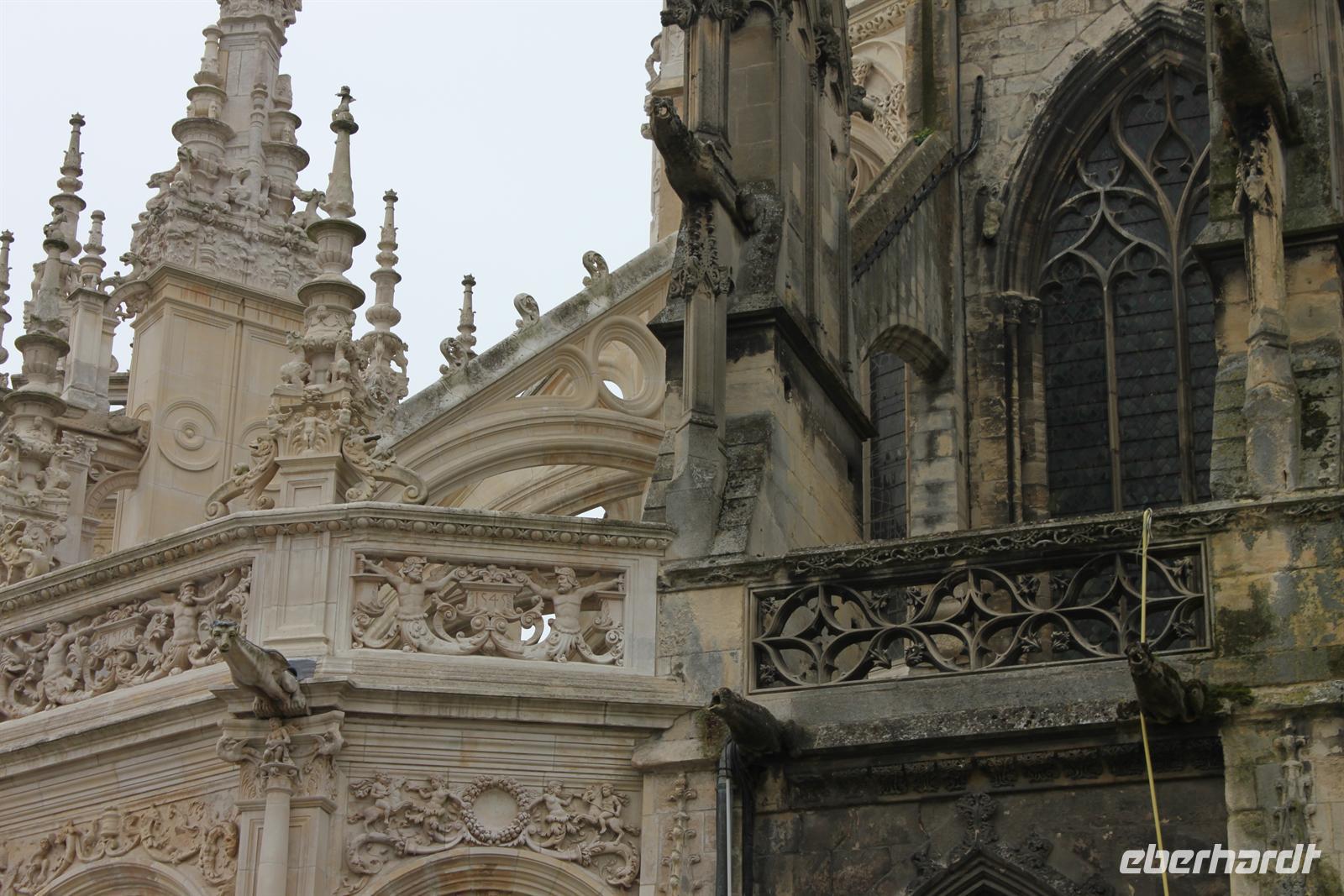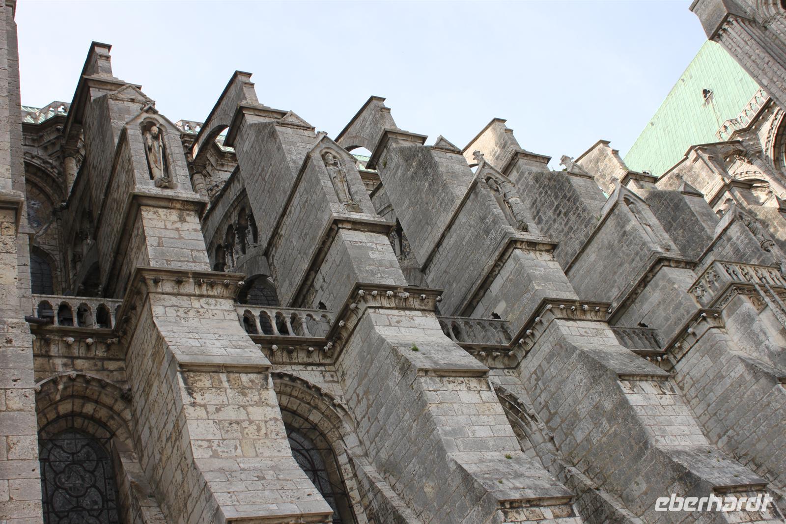 Unser letzter Höhepunkt der Reise war die Kathedrale in Chartres. Auch wenn die größte Rosette der Welt verhangen ist, so lässt sich doch einiges bestaunen: das Wallfahrtslabyrinth, die riesigen Strebepfeiler, das berühmte Chartres-Blau der Fenster oder die Schwarze Sara - nicht zu vergessen das Heiligste, der Schleier der Jungfrau Maria!