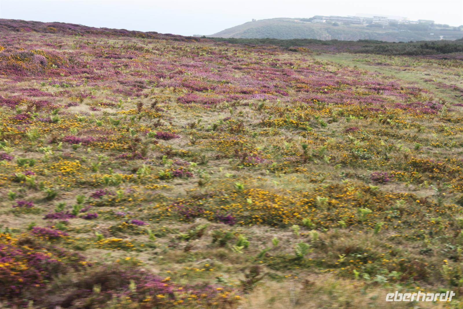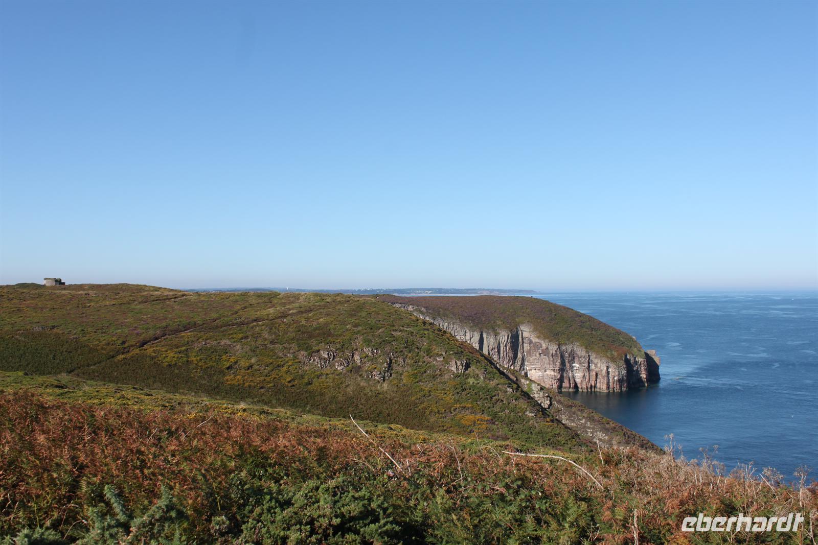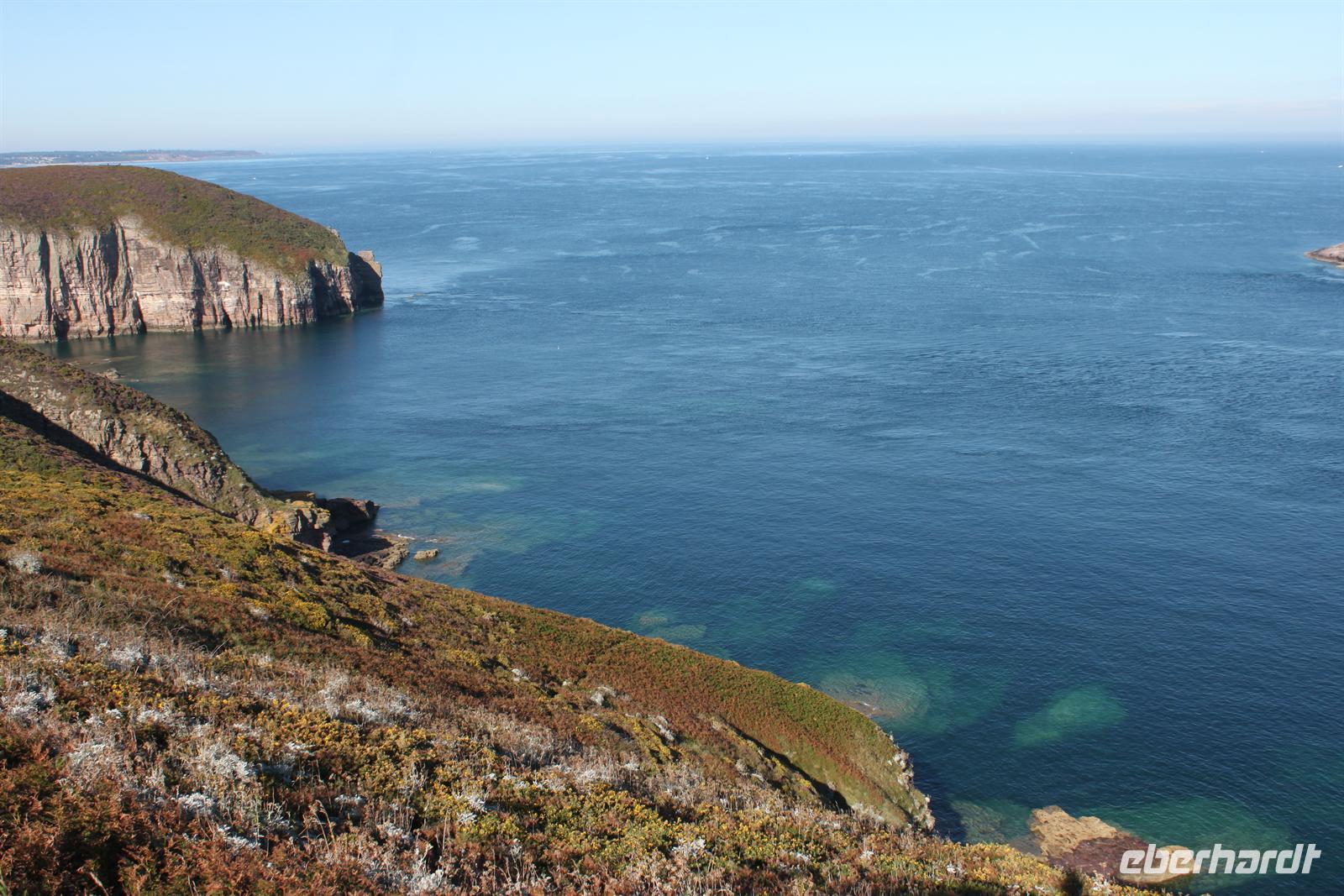 Der darauffolgende Tag brachte uns endlich an die vielbesagte Küste der Bretagne. Bei einem einstündigen Spaziergang ging es einmal rund um den Leuchtturm am Cap Fréhel. Tolle Heidelandschaft und reizvolle Felsformationen mit dem blauen Meer im Hintergrund. Der weitere Weg führte entlang traumhafter Buchten und Strände, die man oftmals nicht in der Bretagne erwarten würde.