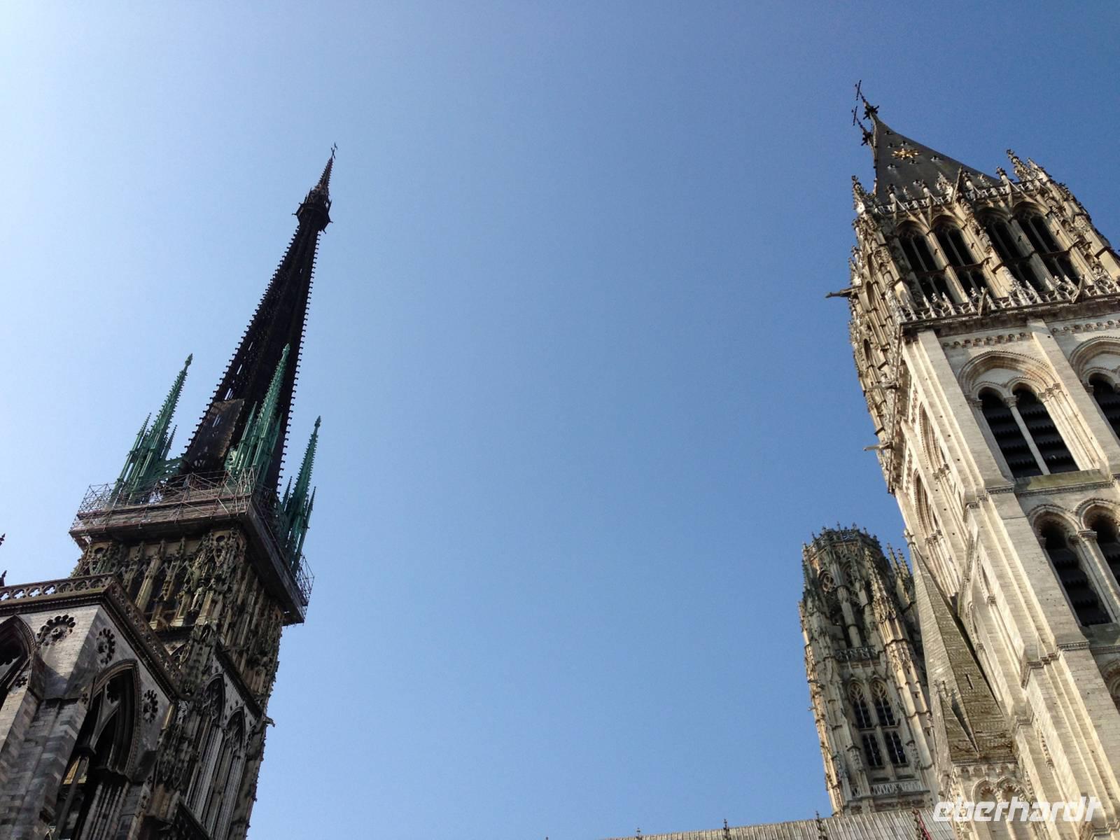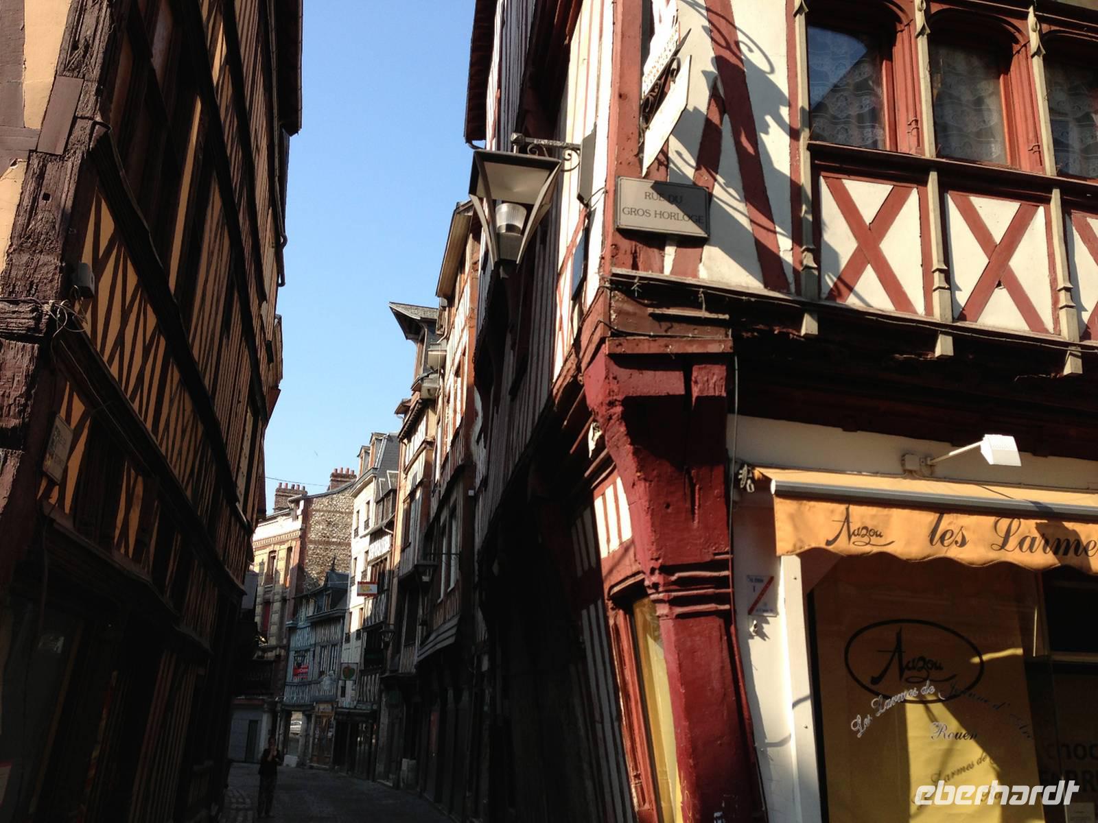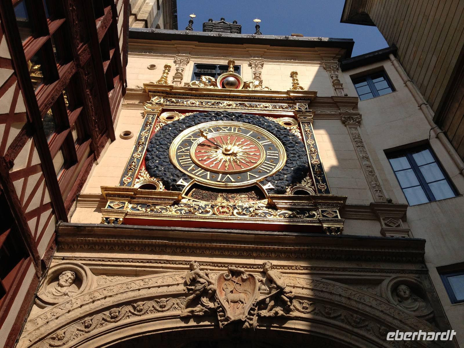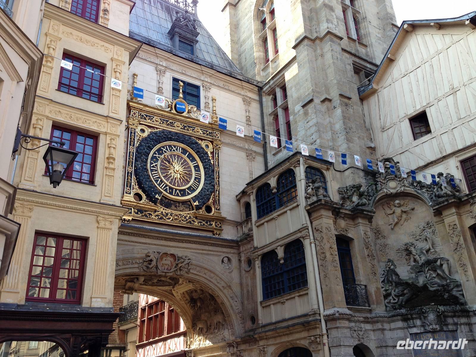 Die Gros-Horloge, eine Uhr aus dem 14.Jahrhundert ist das Wahrzeichen der Stadt, die bekannteste Persönlichkeit ist Jeanne d'Arc, da ihr sie hier im Bischofspalast der Prozess gemacht wurde und sie schließlich auf dem Alten Marktplatz den Tod auf dem Scheiterhaufen fand.