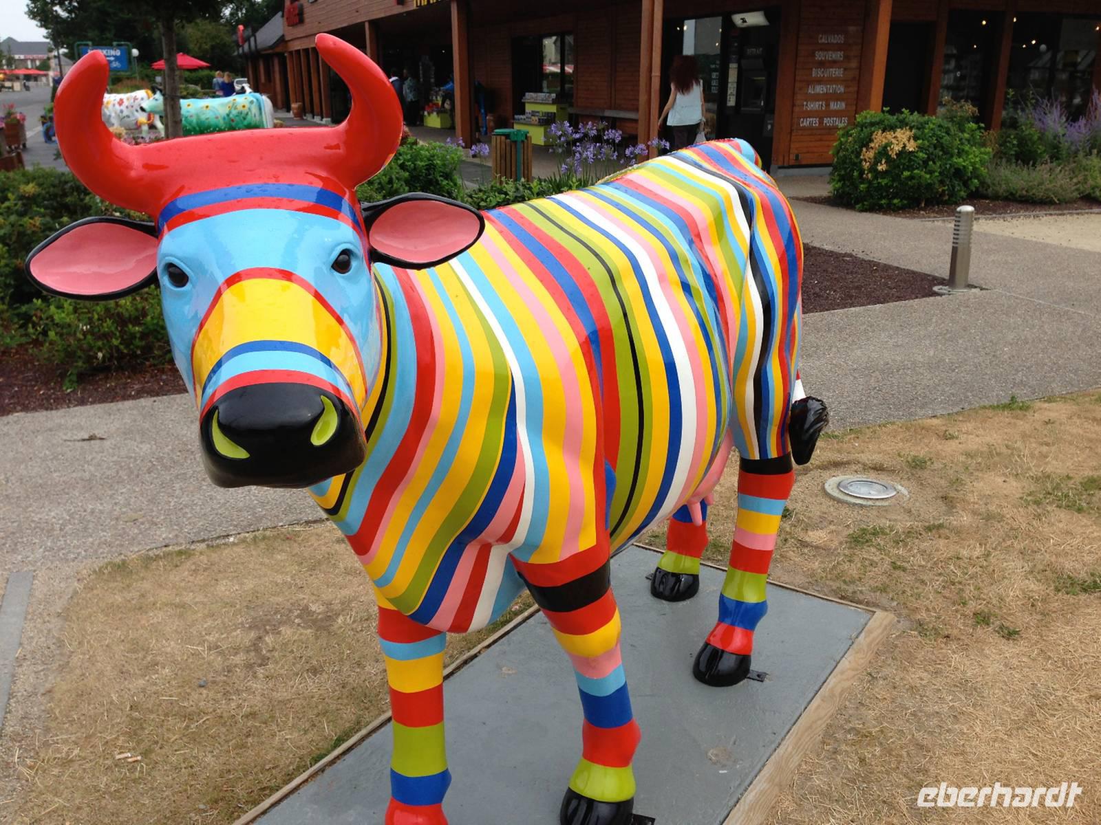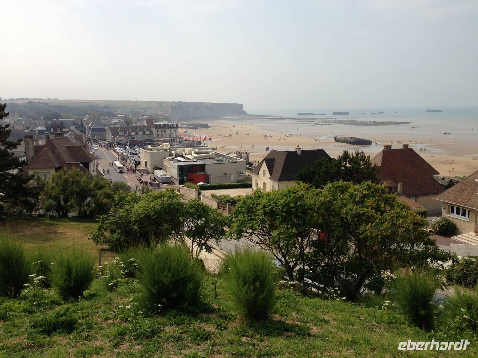 Das nächste Ziel ist Arromanches, ein entscheidender Ort bei der Landung der Alliierten am sogenannten D-DAY, dem 6.Juni 1944. Ganze Strandabschnitte sind gesäumt von gestrandeten Senkkästen, Bunkern, Befestigungsanlagen und zahlreichen Museen, die sich einerseits mit der Aufarbeitung der Geschichte widmen, andererseits entsteht fast jedes Jahr eine neue Attraktion, da ein regelrechter „Schlachtfeldtourismus" entstanden ist, der den sonst ehr beschaulichen Seebädern eine wichtige Einnahmequelle sichert.