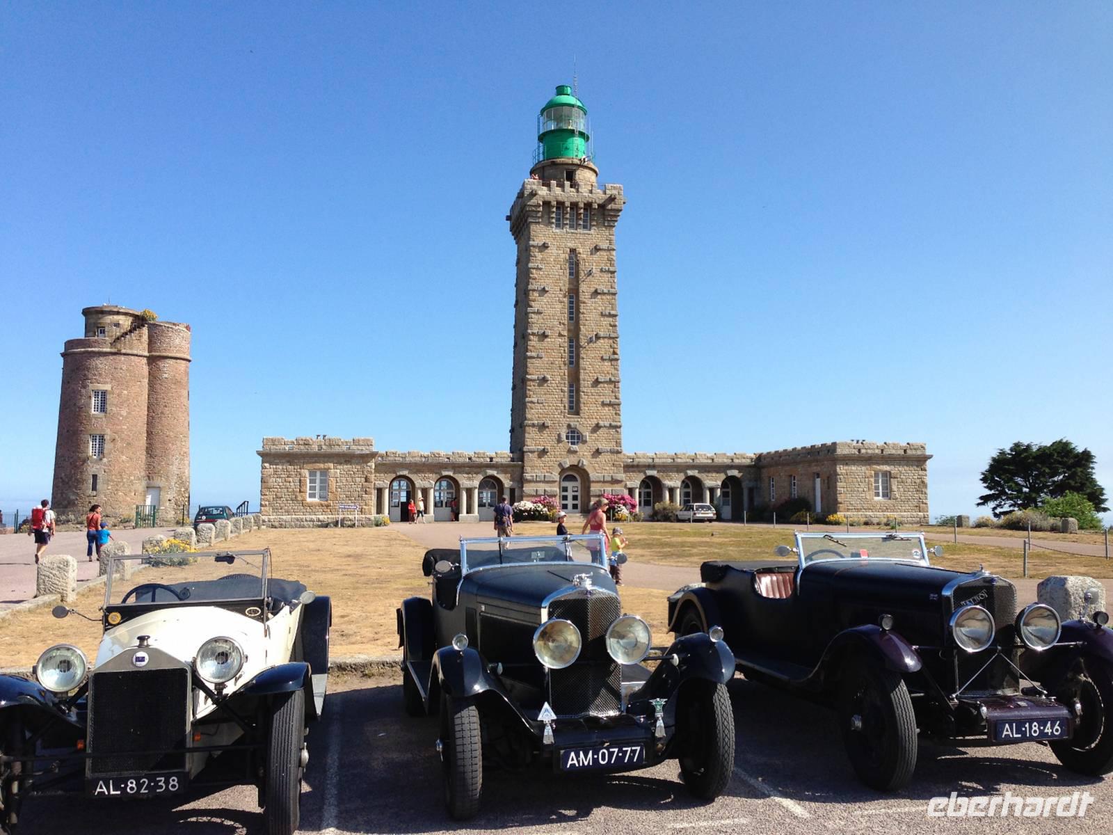 Anschließend machen wir uns auf den Weg zum „Ende der Welt" - der lateinische Begriff Finis Terrae ist Namensgeber für Finistère, das westlichste Département Frankreichs und bis zur Entdeckung Amerikas, einer der Punkte, an denen die Welt aufhörte. Hier an der „Pointe du Raz", brandet der Atlantik pausenlos gegen den 70 Meter hohen Felsenkamm und frisst steile Schluchten in den Granit. Da hier normalerweise eine sehr steile Brise weht, wachsen nur Ginster, Heide und einige Gräser.