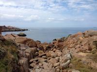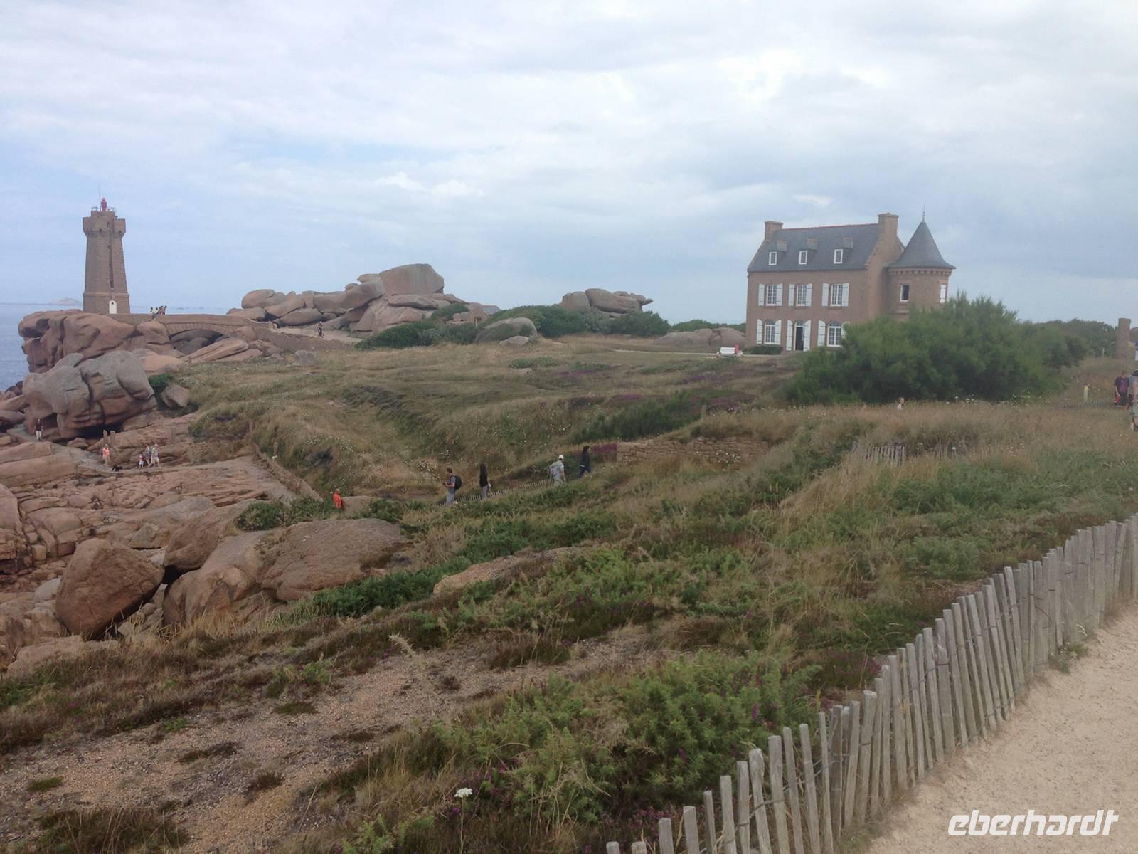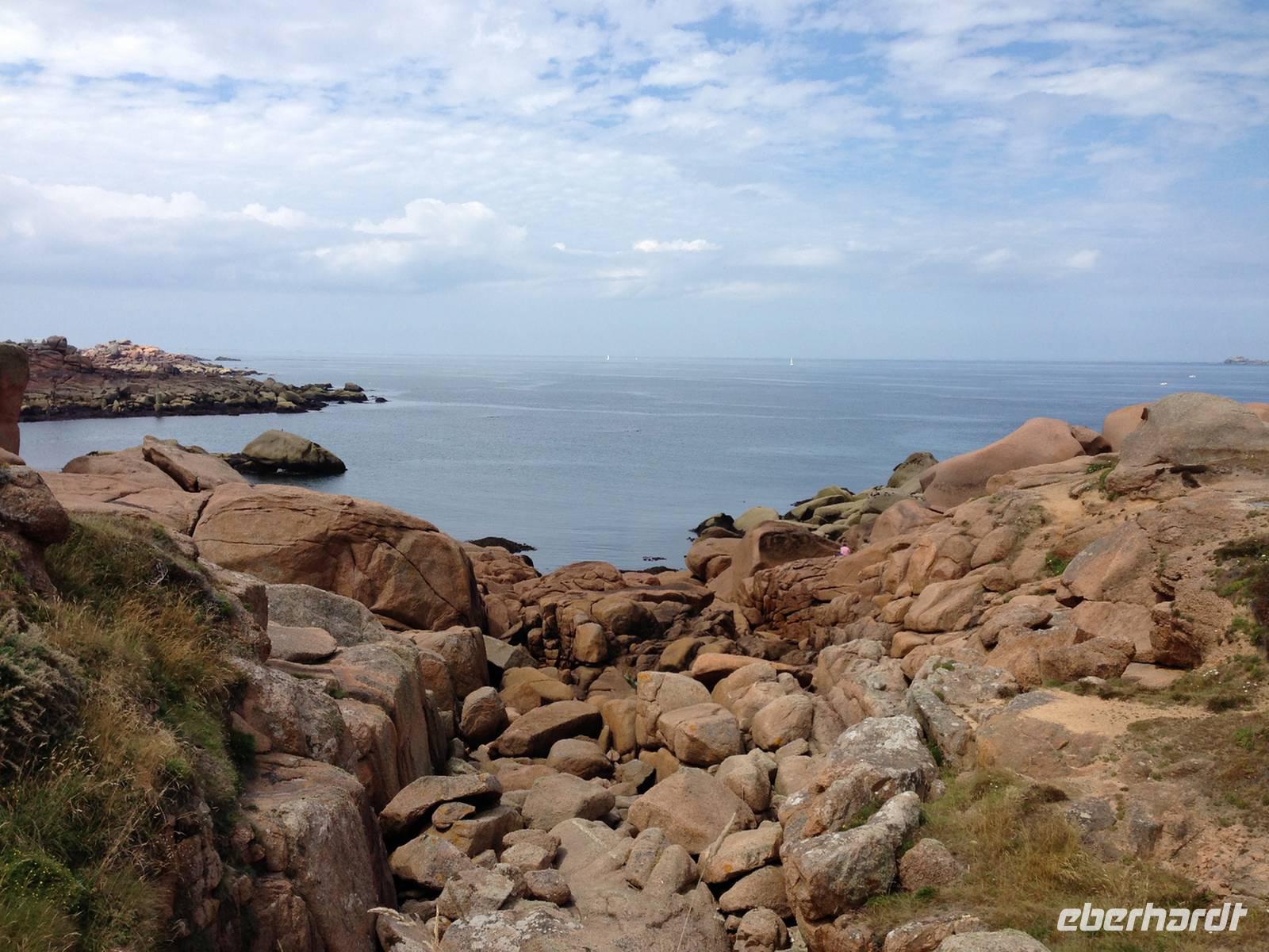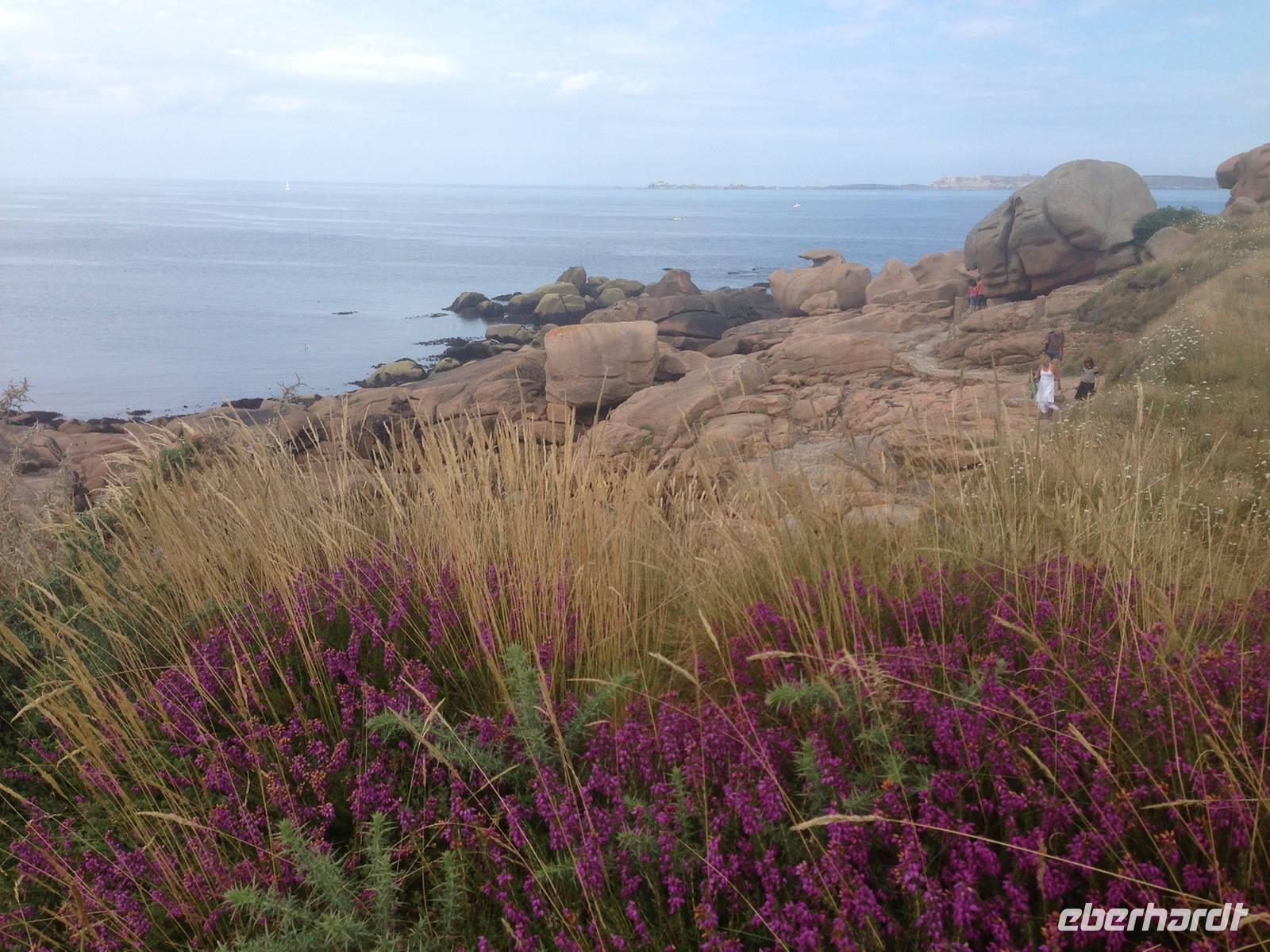 Nach zwei Stunden Fahrtzeit erreichen wir über Saint Brieuc die Rosa Granitküste (Côte de Granit Rose). Hier haben Wind und Wellen das Land und den Küstenstreifen seit Jahrtausenden zu Skulpturen aus rosa Granit und bizarren Felsformationen modelliert. Eine Szenerie, die uns zu Entdeckungen einlädt? und zu Mutmaßungen über die Formen: ist das nun „Napoleons Hut" und wo ist das „Teufelsschloss"? Wo heute Wanderer unterwegs sind, patrouillierten im 19. Jahrhundert Zöllner, um Piraten und Schmuggler abzuwehren. Solche Wachpfade säumten fast die gesamte bretonische Küste, hier haben wir uns am wildromantischsten Abschnitt eingefunden!