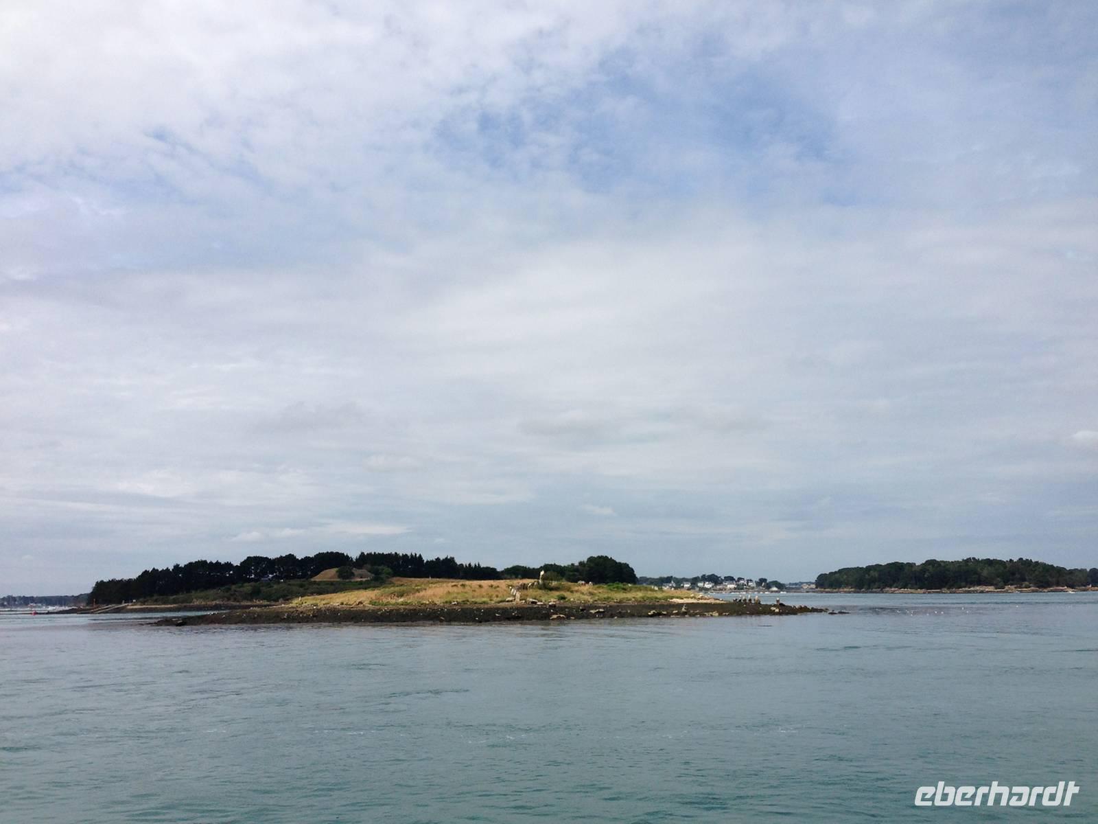 Anschließend machen wir uns auf den Weg zum Anleger in Vannes wo unsere Bootsfahrt durch den Golf von Morbihan - dem Golf der 365 Inseln- startet. Die Kleinste misst nur wenige Quadratmeter und trägt den Namen "Taschentuch". Heute besteht Bauverbot für alle Inseln, es ist nur erlaubt, bestehende Häuser zu sanieren, die vor allem als Ferienhäuser genutzt werden.