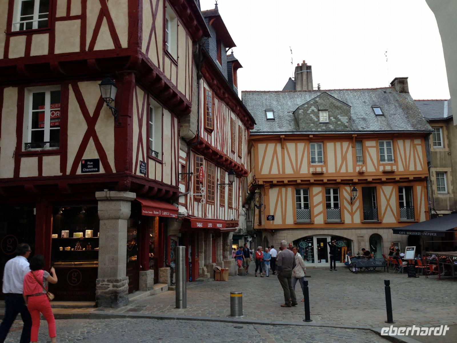 Am Abend treffen wir in Vannes wieder auf liebevoll restauriertes Fachwerk hinter alten Festungsmauern. Ein Abendspaziergang durch die Gassen und zum Jazzkonzert am Hafen beschließt unsere Zeit in der Bretagne.