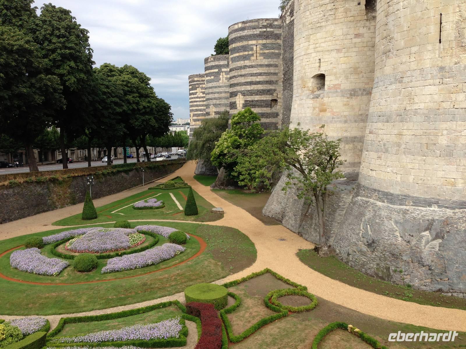 Gegen Mittag liegt das imposante Schloss der Anjou mit hohen Mauern und siebzehn gewaltigen Turmrümpfen aus weißem Tuffstein und schwarzem Schiefer als mächtige Festung vor uns. Einige Gäste entscheiden sich für einen Stadtbummel, die anderen nehmen den Weg über die ehemalige Zugbrücke und besichtigen das Schloss und den ausgestellten Zyklus der Apokalypse, der den Weltuntergang nach den Visionen des Apostels und Evangelisten Johannes darstellt. Das wertvolle Gobelinwerk ist einem modernen, völlig abgedunkelten Museumsbau bei speziellem, künstlichem Licht präsentiert und ist mehr als überwältigend!