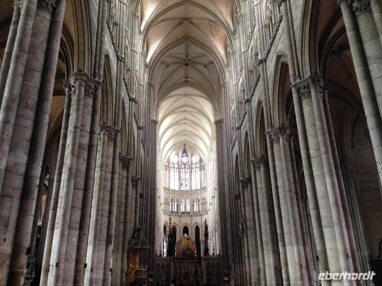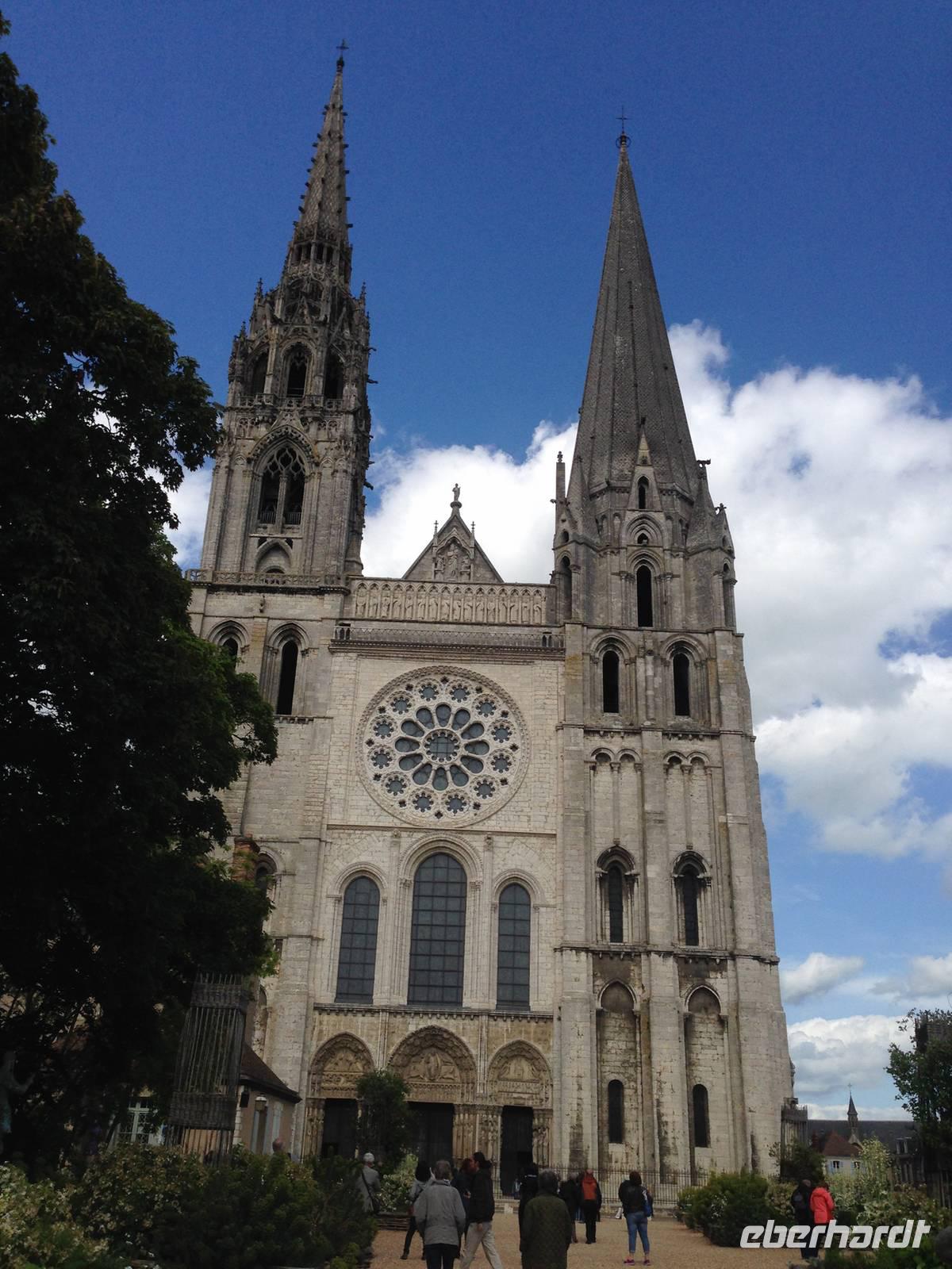 Auch Chartres und seine weltberühmte Kathedrale empfängt uns als letztes Besuchsziel dieser Reise im Sonnenschein! Schon von weitem erkennen wir die sich über der Stadt erhebenden Türme des Westwerks der gotischen Kathedrale, die Musterbeispiel für viele andere Kathedralbauten dieses Baustils wurde. Wir stehen staunend vor dem dreitorigen Königsportal und bewundern die vollständig erhaltene romanisch-frühgotische Bildhauerkunst, die der Zerstörungswut der Französischen Revolution ebenso entgehen konnte wie die gesamte Kathedrale den zahleichen Kriegen im Laufe der Jahrhunderte. Fast zweihundert Fenster (2600 Quadratmeter!) verzaubern mit unzähligen bleiverglasten Scheiben in dem berühmten Blau von Chartres und machen uns den Abschied an diesem stimmungsvollen Nachmittag nicht leicht.