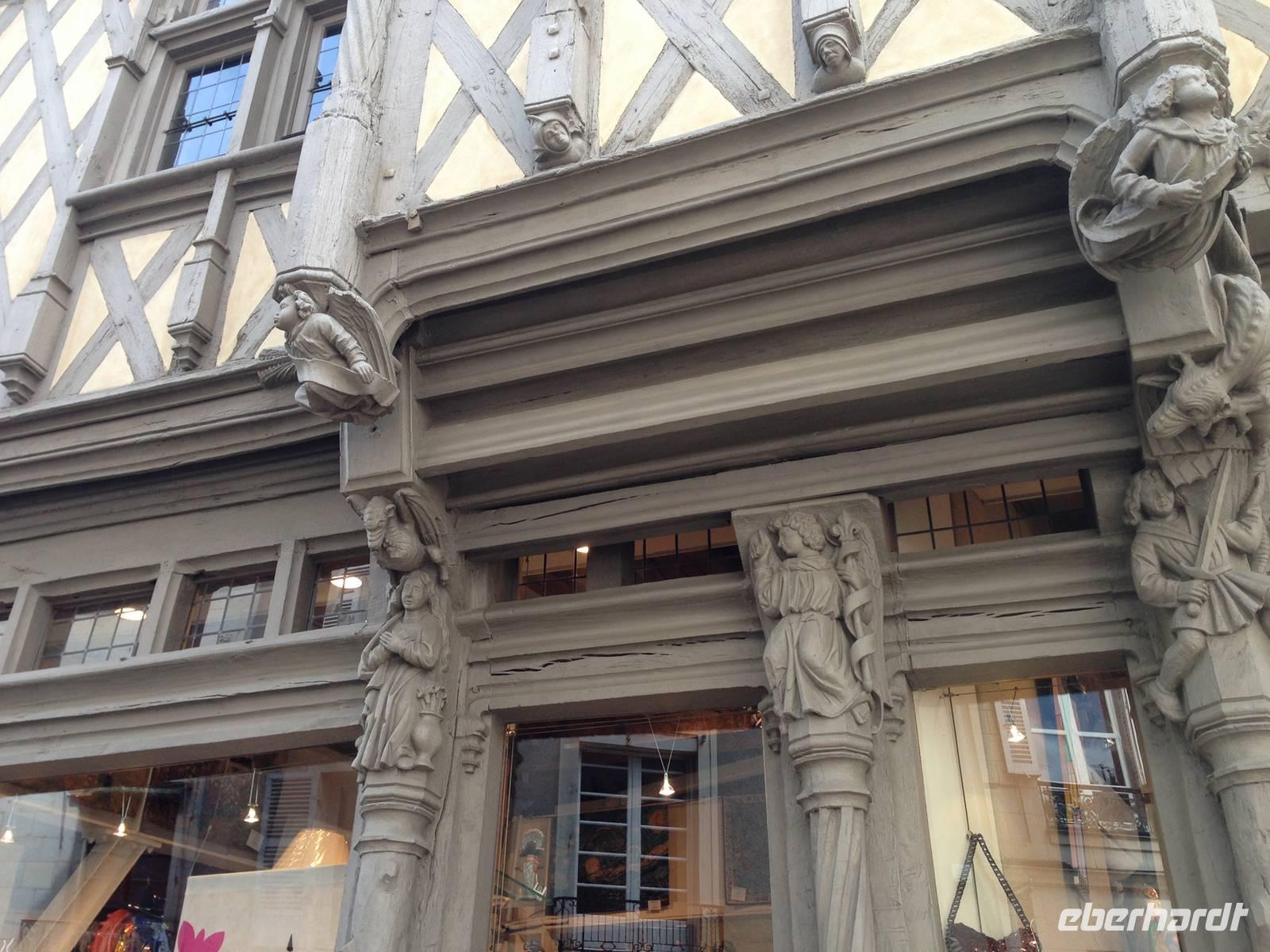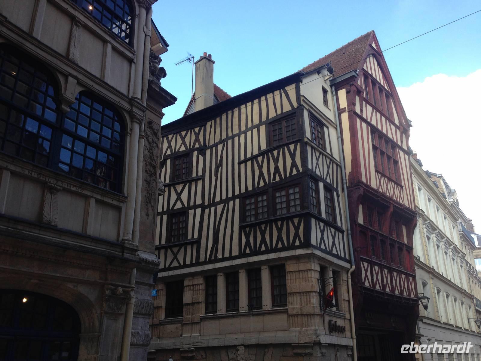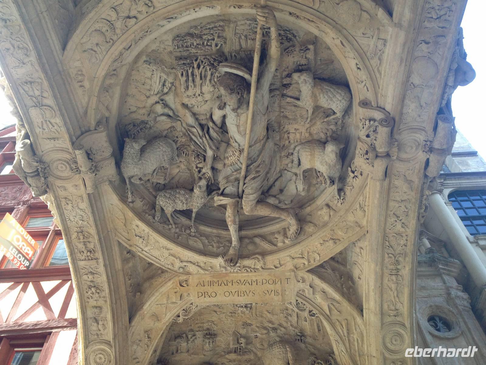An der grandiosen Kathedrale von Rouen erwarten uns zwei örtliche Reiseleiterinnen, die uns entlang beeindruckender Fachwerkzeilen und über stimmungsvolle Plätze führen. Heimliches Wahrzeichen der Stadt ist die herrliche Gros-Horloge, eine Uhr mit Stundenzeiger von 1389, die sich in einem prachtvollen Renaissance-Torbau befindet. Die Führung endet an der Place du Vieux Marché (Alter Markt), dem belebten Kern der Altstadt, wo die spätere Nationalheldin Jeanne d'Arc 1431 verbrannt wurde. Heute erinnert ein moderner Kirchenbau, welcher in die modernen Markthallen integriert ist, daran.