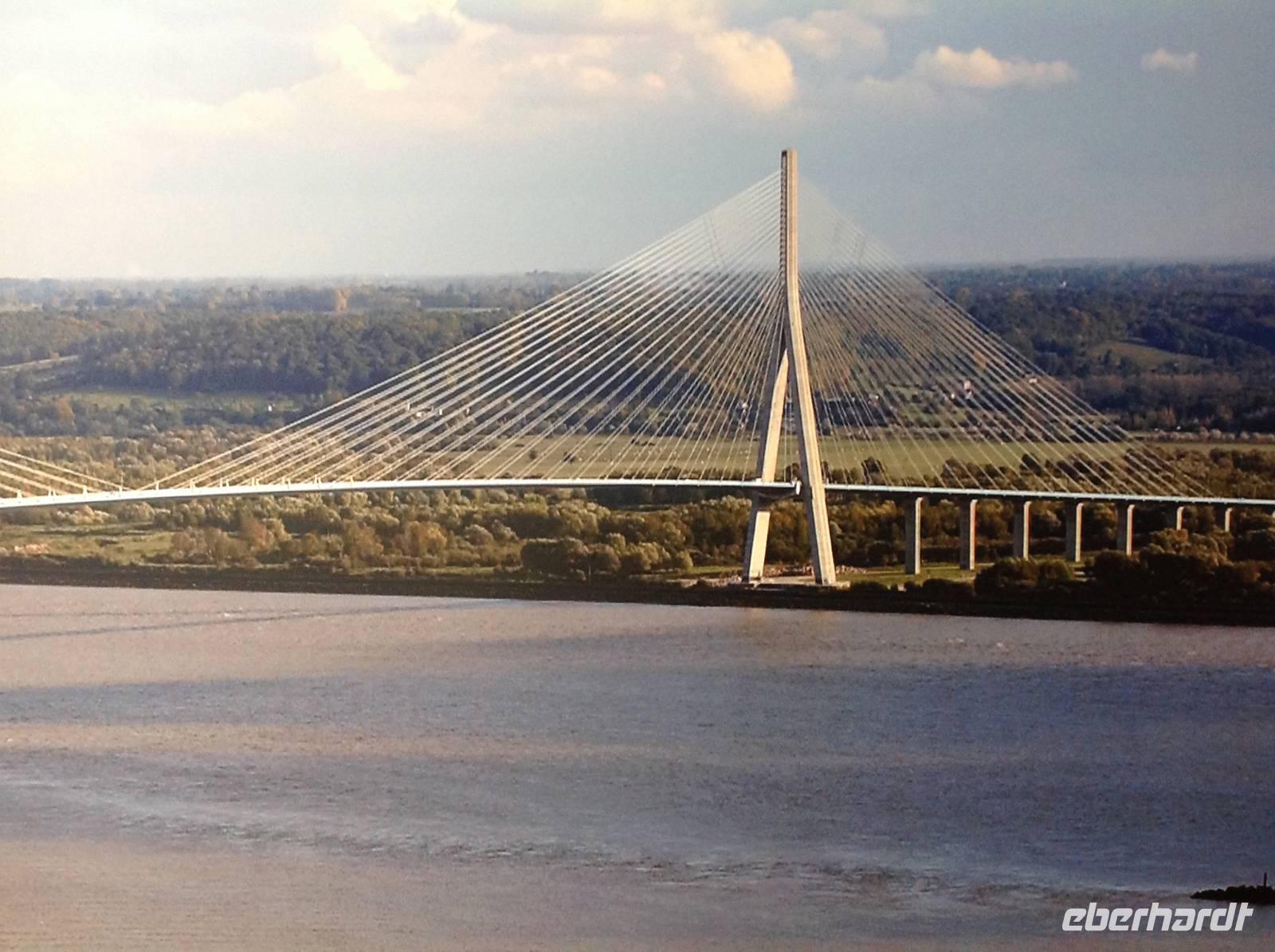 über die elegante Schrägseilbrücke Pont-de-Normandie fahren wir zum nächsten kulinarischen Genuss: Einige Kilometer landeinwärts, im so genannten Pays d'Auge, sind wir zur Besichtigung einer bekannten Calvadosbrennerei angemeldet.
