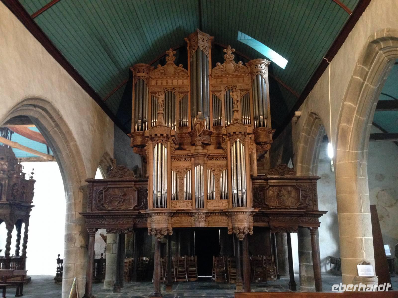 Das "Ende der Welt" - "Finis Terrae" ist heute unser Ziel. Im Finistère, dem westlichsten Département Frankreichs hörte bis zur Entdeckung Amerikas für Frankeich und Mitteleuropa die Welt auf. Hier an der "Pointe du Raz", brandet der Atlantik pausenlos gegen den siebzig Meter hohen Felskamm und frisst steile Schluchten in den Granit. Die Brise des Atlantiks weht uns heute nicht allzu heftig um die Nase - wir haben wieder Glück mit dem Wetter und können den Spaziergang und das anschließende Picknick bei herrlichstem Wetter genießen. Makrelen, Sardinen, Gänse-Rillettes, Kuddelwurst, verschiedene Käsesorten wie den bretonischen Menez Hom und Charouce, dazu Bordeaux und Côtes-du-Rhône -Weine. Auf der Rückfahrt nach Quimper machen wir einen kurzen Halt an einer Kirche mit schönen Bleigalsfenstern und einem Glockenrad in Confort-Meillars. Unsere Rundfahrt auf der Cornouaille-Halbinsel endet im kleinen Marktort Locronon, etwa zwanzig Kilometer nordwestlich von Quimper. Im Bilderbuchstädtchen stört kein einziger Neubau das Ensemble der blumengeschmückten Granithäuser aus dem 16. bis 18. Jahrhundert. Da die elektrischen Leitungen unterirdisch verlaufen, sind ideale Voraussetzungen als Filmkulisse gegeben: mehr als dreißig Filme wurden hier bereits gedreht, unter anderem "Tess" mit Nastasja Kinski.