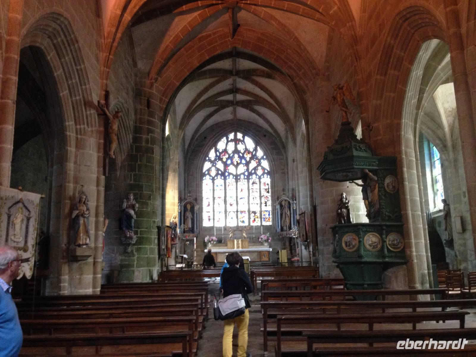 Das Cap Fréhel an der Smaragd-Küste im Golf von Saint Malo lockt uns heute mit einem Spaziergang und wunderschönen Ausblicken auf die Brutplätze zahlloser Vögel wie Kormorane, Austernfischer und Seetaucher. Auf der Weiterfahrt entlang der Küste sind uns schöne Blicke auf die langgezogenen Sandstrände an der Nordwestseite des Caps vergönnt. Nach zwei Stunden Fahrtzeit erreichen wir über Saint Brieuc die Rosa Granitküste (Côte de Granit Rose). Hier haben Wind und Wellen das Land und den Küstenstreifen seit Jahrtausenden zu Skulpturen aus rosa Granit und bizarren Felsformationen modelliert. Eine Szenerie, die uns zu Entdeckungen einlädt und zu Mutmaßungen über die Formen: ist das nun „Napoleons Hut" und wo ist das „Teufelsschloss"? Wo heute Wanderer unterwegs sind, patrouillierten im 19. Jahrhundert Zöllner, um Piraten und Schmuggler abzuwehren. Solche ehemaligen Wachpfade säumen fast die gesamte bretonische Küste, hier haben wir uns am wildromantischsten Abschnitt eingefunden! Auf der Weiterfahrt steuern wir den Achthundert-Seelen Ort Guimilliau an, der über eine für die Bretagne typische Besonderheit, einen sogenannten Kalvarienberg, verfügt. Inmitten eines von einer Mauer umschlossenen Pfarrhofes mit Kirche, Friedhof und Beinhaus finden wir einen aus Granitstein gehauenen, opulent mit zweihundert Figuren gestalteten Bilderzyklus auf einem Steinpodest. Passionsszenen stellen Christi Leben und Leiden dar, von der Verkündigung bis zur Auferstehung. Aber auch die Höllenfahrt der Katherina, Katel Gollet, wie sie auf bretonisch heißt, ist dargestellt: Die nackte und mit üppigen Brüsten ausgestattete Katherina -das übliche Bild, das "Sünde" verkörpert- wird von Teufeln, dargestellt durch ein zahnbewaffnetes Dämonenmaul, in die Hölle gestoßen.