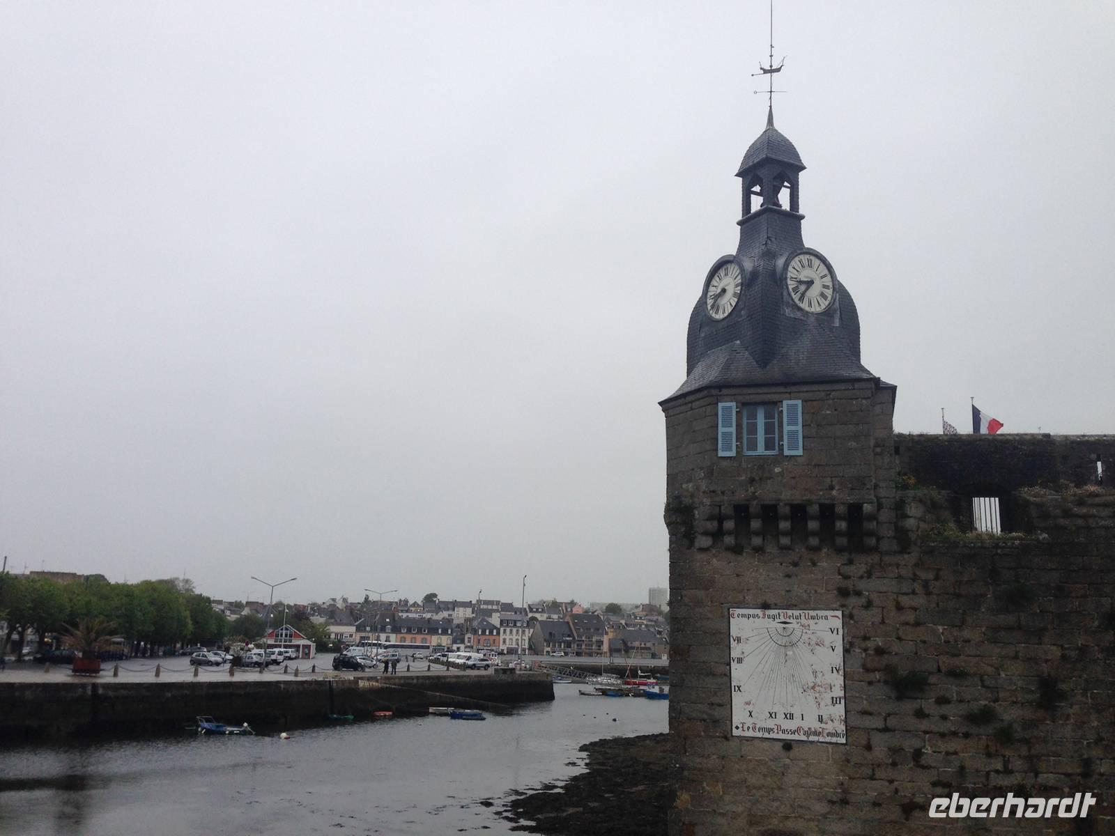 Nach kurzer Fahrt erreichen wir die Hafenstadt Concarneau, deren Zentrum gleich einer schwimmenden Festung im stattlichen Becken des Fischereihafens ruht. Eine einzige Brücke gewährt Zugang zu der Hauptstraße der nur 350 Meter langen "Ville Close". Hier schreien Möwen im Wind und die Luft schmeckt nach Salz, an der Sonnenuhr steht sinngemäß: "Die Zeit flieht wie ein flüchtiger Schatten!" Wir verlassen das Finistère, um in Richtung Osten zu weiterzufahren.
