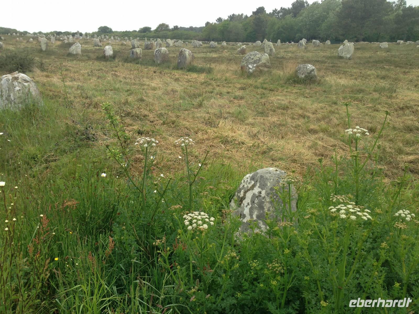 Unser nächstes Ziel ist das Département Morbihan, genauer: Die Umgebung von Carnac - "Mekka der Megalith-Kultur". Mit 3000 aufrecht stehenden Steinen treffen wir hier auf eine eindrucksvolle Konzentration von Überbleibseln einer bis heute rätselhaften Zivilisation: Weithin sichtbare Steinkolosse, auch Menhire genannt. Zwischen den Steinreihen von Kerzerho machen wir unser Gruppenfoto, denn nur hier gibt es noch Hinkelsteine zum Anfassen. An den sehr langen Steinreihen von Le Menec fahren wir mit dem Bus vorbei und haben aus unserer erhöhten Position einen schönen Blick über die Gruppierung von Steinen unter-schiedlicher Größe, die, gemäß einer Sage, in Stein verwandelte, römische Soldaten sein sollen. Anschließend machen wir uns auf den Weg zum Anleger in Vannes, wo wir zu einer schönen Bootsfahrt durch den Golf der (angeblich!) 365 Inseln starten. Die Kleinste misst nur wenige Quadratmeter und trägt den Namen "Taschentuch". Heute besteht Bauverbot für alle Inseln, es ist nur erlaubt, bestehende Häuser zu sanieren, die vor allem als Ferienhäuser genutzt werden. Beim Abendspaziergen durch Vannes, treffen wir wieder auf liebevoll restauriertes Fachwerk hinter alten Festungsmauern.