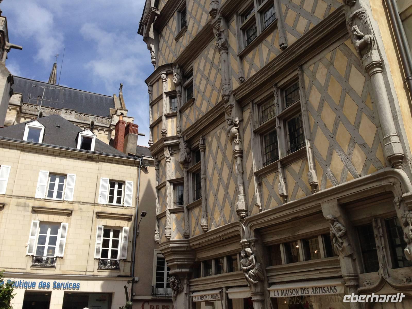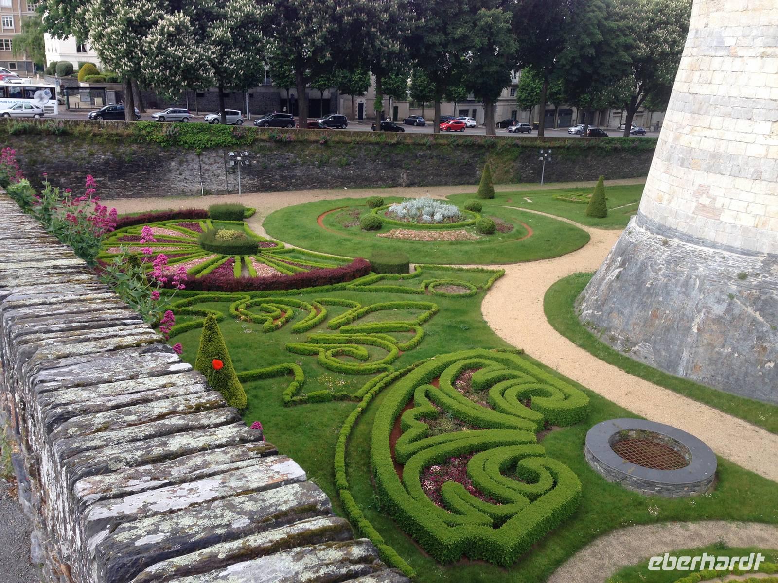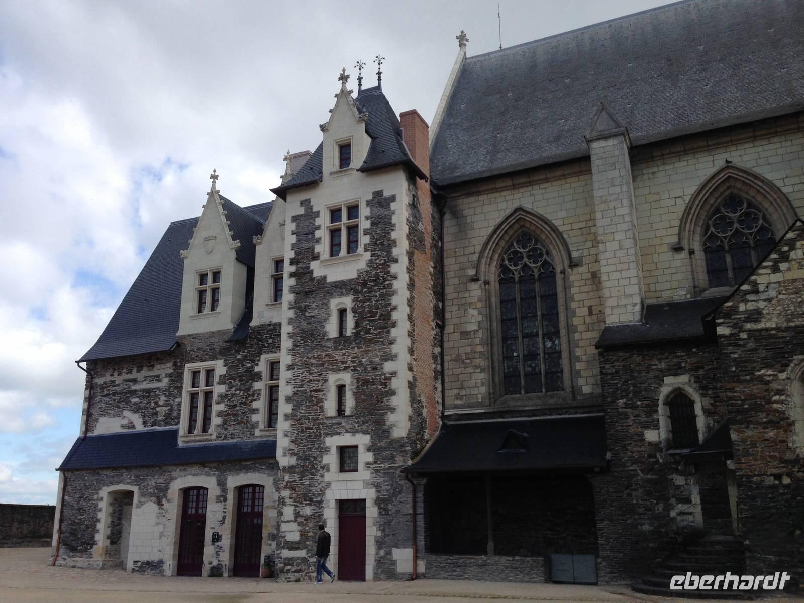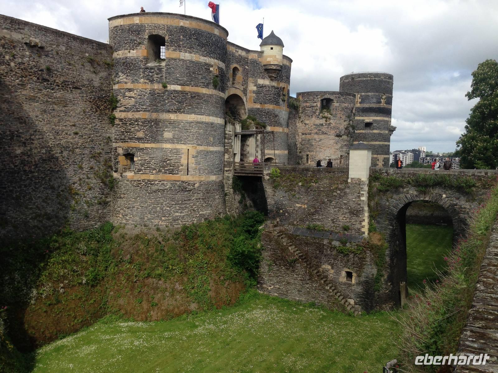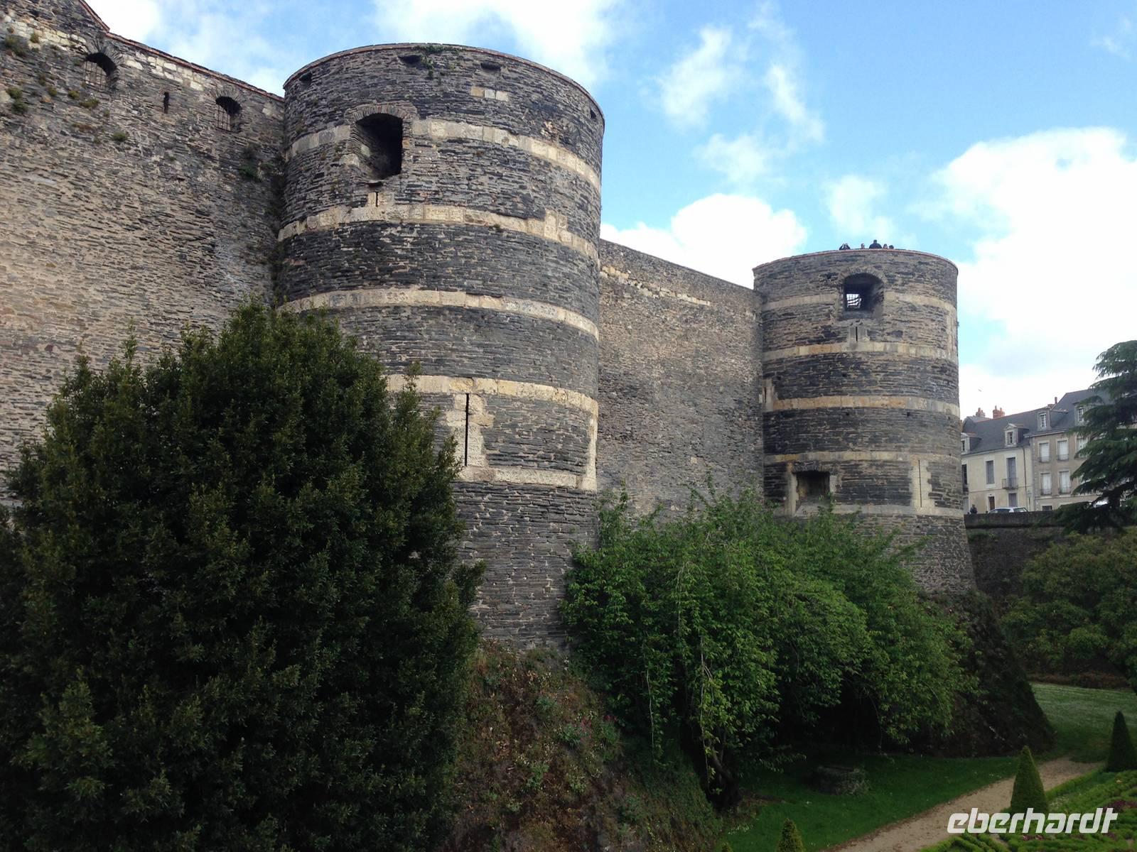 Bei wiederum herrlichem Sonnenschein erreichen wir Angers, wo das imposante Schloss der Anjou mit hohen Mauern und siebzehn gewaltigen Turmrümpfen aus weißem Tuffstein und schwarzem Schiefer als mächtige Festung vor uns liegt. Einige Gäste entscheiden sich für einen Stadtbummel, die anderen nehmen den Weg über die ehemalige Zugbrücke und besichtigen das Schloss und den ausgestellten Zyklus der Apokalypse, der den Weltuntergang nach den Visionen des Apostels und Evangelisten Johannes darstellt. Das wertvolle Gobelinwerk ist in einem modernen, völlig abgedunkelten Museumsbau bei speziellem, künstlichem Licht präsentiert und ist mehr als überwältigend! Mit seinen geheimnisvollen Figuren und Allegorien zählt der Wandbehang zu den beeindruckendsten Zeugnissen unserer Geschichte und des christlichen Glaubens.