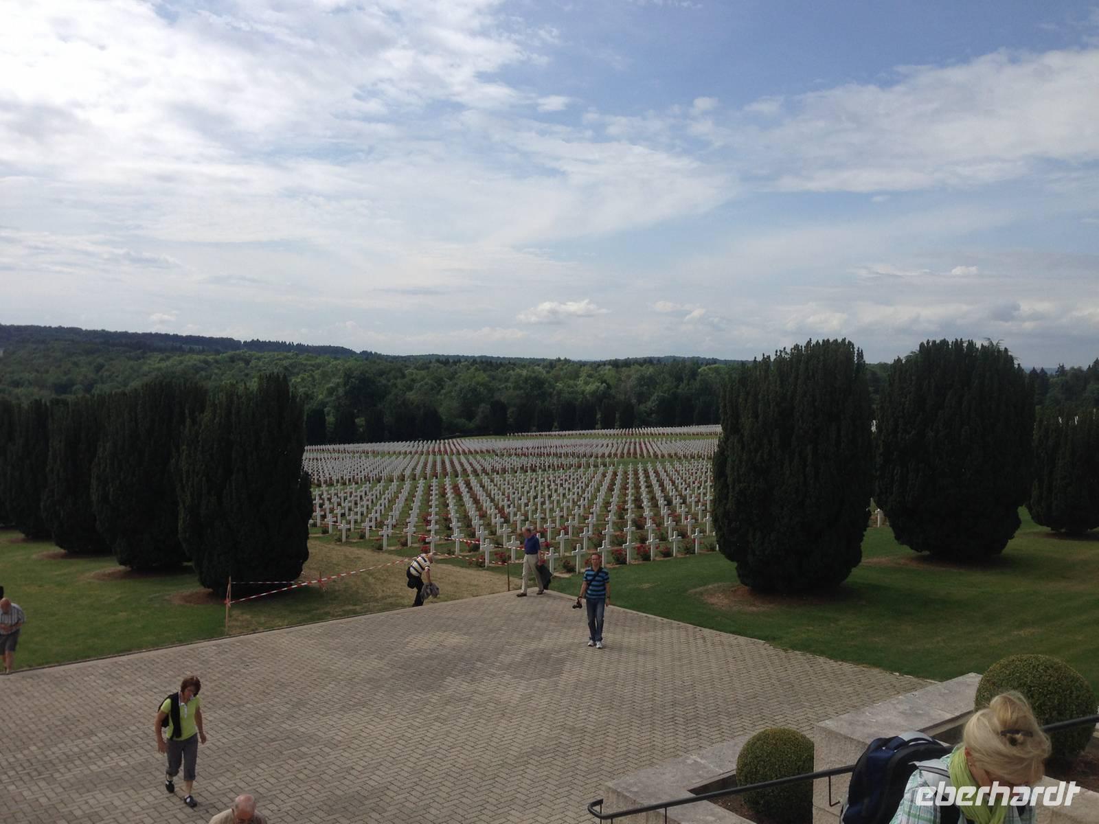 Heute besuchen wir, ausgestattet mit festem Schuhwerk -und nicht minder festem Nervenkostüm!- die Schlachtfelder von Verdun. Anlässlich der Gedenken zum 100.Jahrestag ist das Thema durch die Medien sehr gegenwärtig. Trotzdem geben die Schilderungen unseres örtlichen Reiseleiters auf sehr anschauliche Art und Weise in die Tiefe eines Themas, welches noch mehr Schattenseiten hat, als den meisten von uns bisher bewusst war. Im Beinhaus von Douaumont überwältigt uns einmal mehr die Anzahl der Kriegstoten und das Ringen um einen würdigen Umgang für die Hinterbliebenen. Das Fort Douaumont lehrt uns die Schecken des Kriegsalltags im menschenverachtenden Stellungskampf des Ersten Weltkriegs. Der französische Staat finanziert die Pflege sehr vieler Gedenkstätten und Friedhöfe, der 11. November ist in Erinnerung an den Waffenstillstand von 1918 nationaler Feiertag.