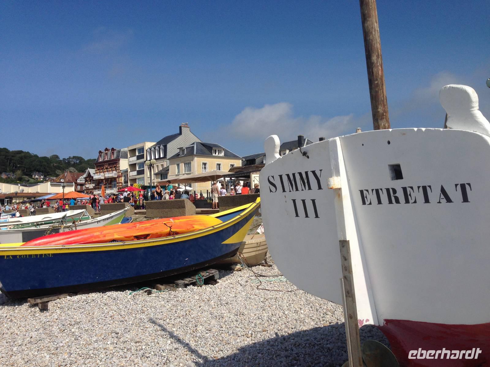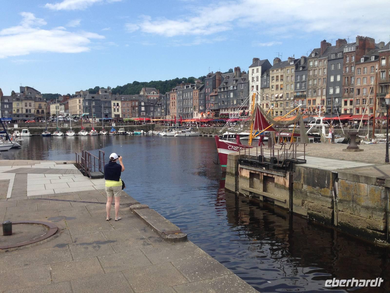Unter blauem Himmel erwartet uns Honfleur: Das malerische Hafenstädtchen an der Seinemündung hat seit jeher Maler, Musiker und Schriftsteller angelockt. Vorbei an mächtigen Salzspeichern und durch enge Straßen gelangen wir in einen versteckten Hinterhof mit Galerien der heutigen Künstler. Wir queren den Hafen und erreichen eine außergewöhnlichen Kirche: Es gibt zwei gleichwertige Hauptschiffe und die gesamte Kirche ist aus Holz erbaut, mit Dächern, die an ein umgedrehten Schiffsrumpf erinnern.