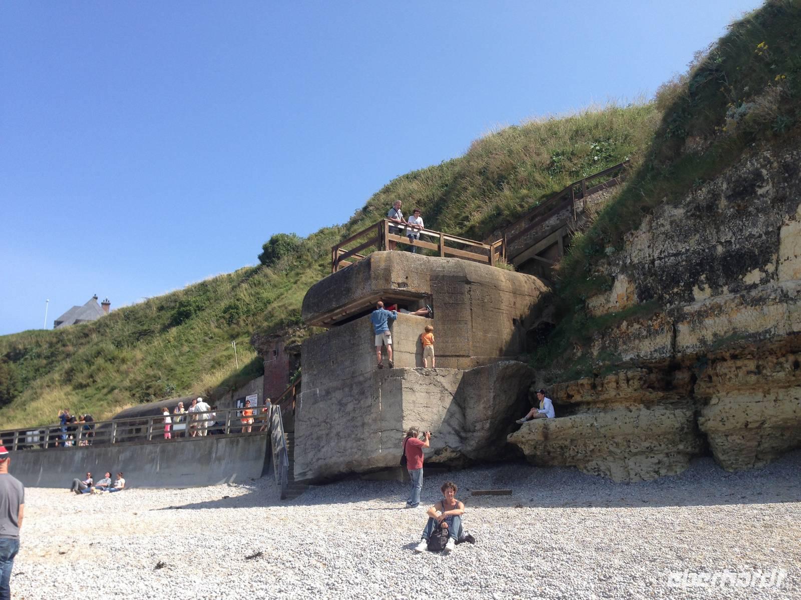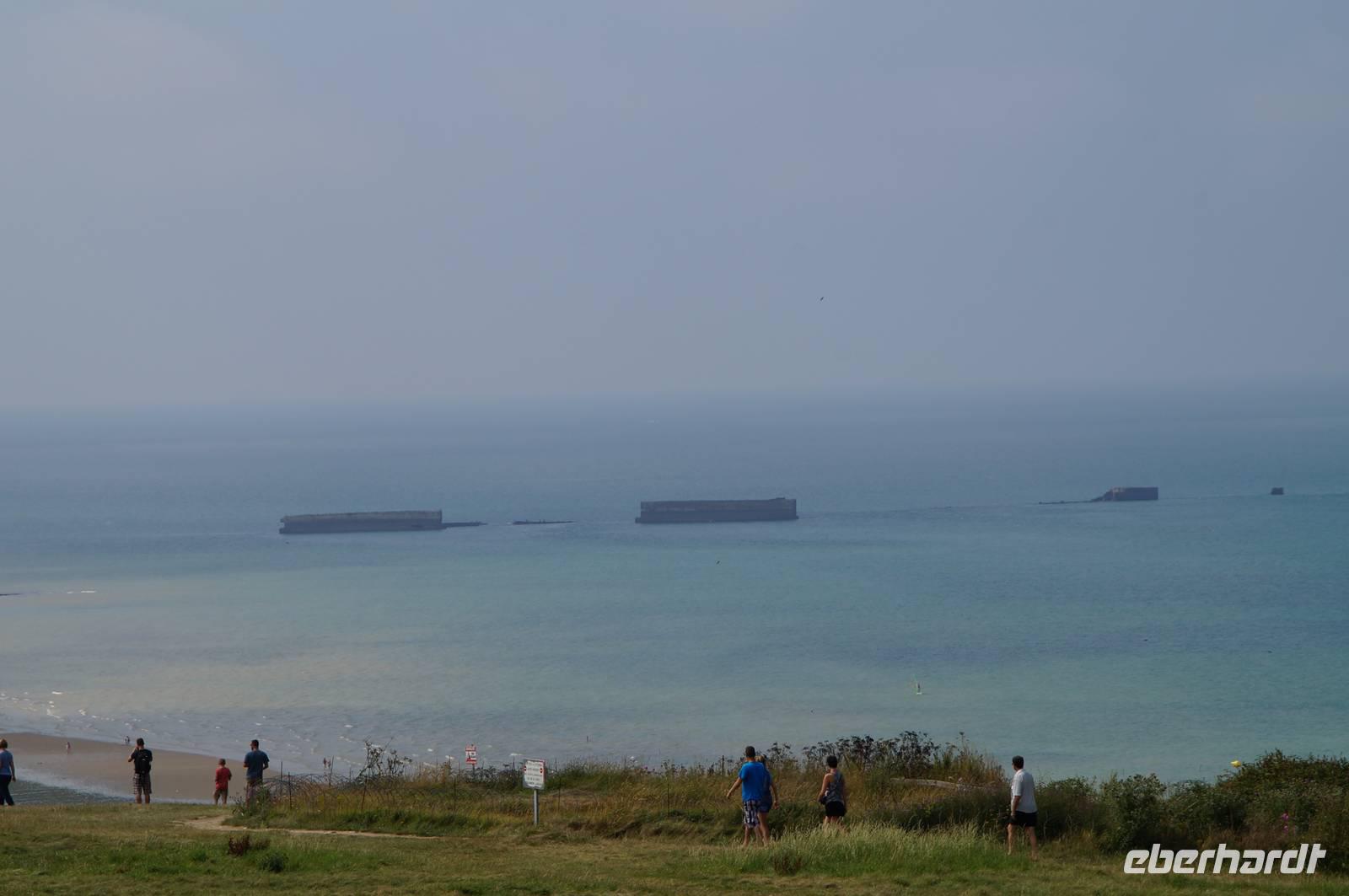 In Ouistreham, im damaligen britischen Landeabschnitt Sword-Beach, fahren wir zu einem Bunker, welcher als deutsche Kommandostelle diente und heute als Museum genutzt wird. Bis zu seiner Erstürmung war fünfstöckige Koloss eine der letzten ernsthaften Bedrohungen der anlandenden alliierten Truppen. Bis Arromanches kommen wir an weiteren Landungsstränden vorbei und oberhalb des Badeortes beeindruckt uns der weite Blick über die Küste und die zahllosen Wracks der Senkkästen aus Beton, die Teil des Hafens waren, welcher hier am 6.Juni 1944 vom Meer aus als künstlicher Hafen für den Nachschub der Alliierten Streitkräfte gebaut wurde.