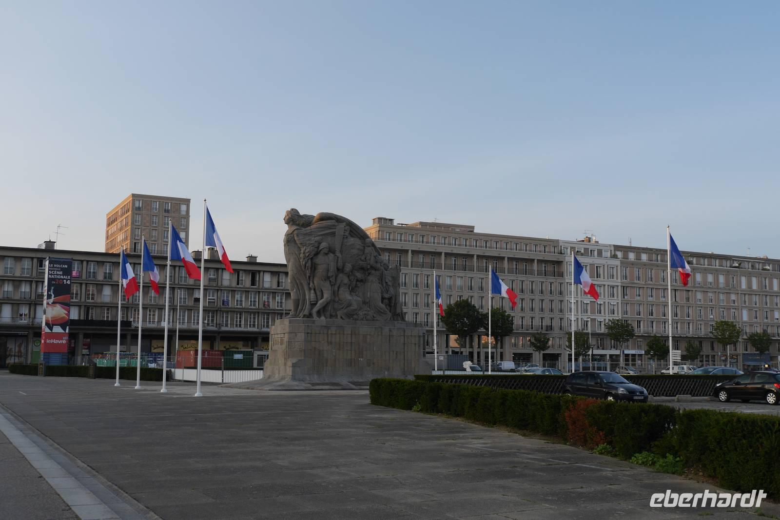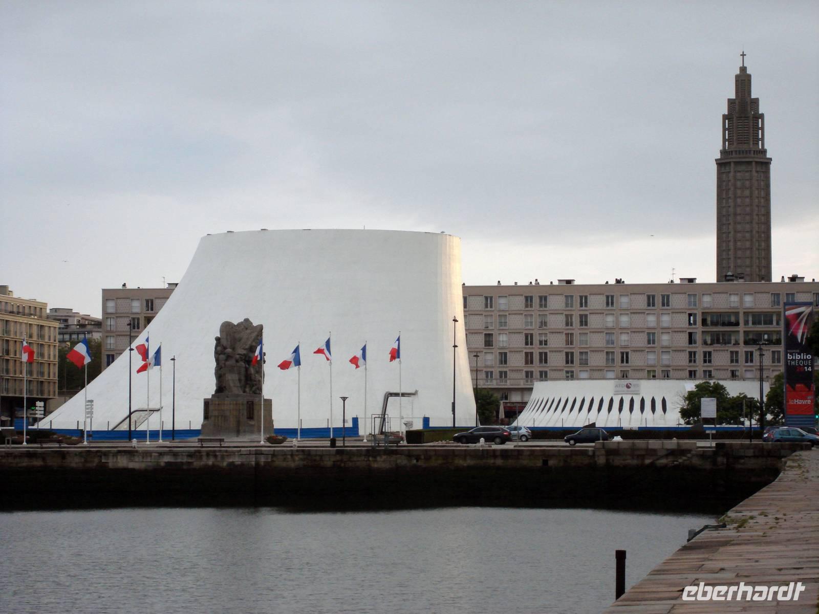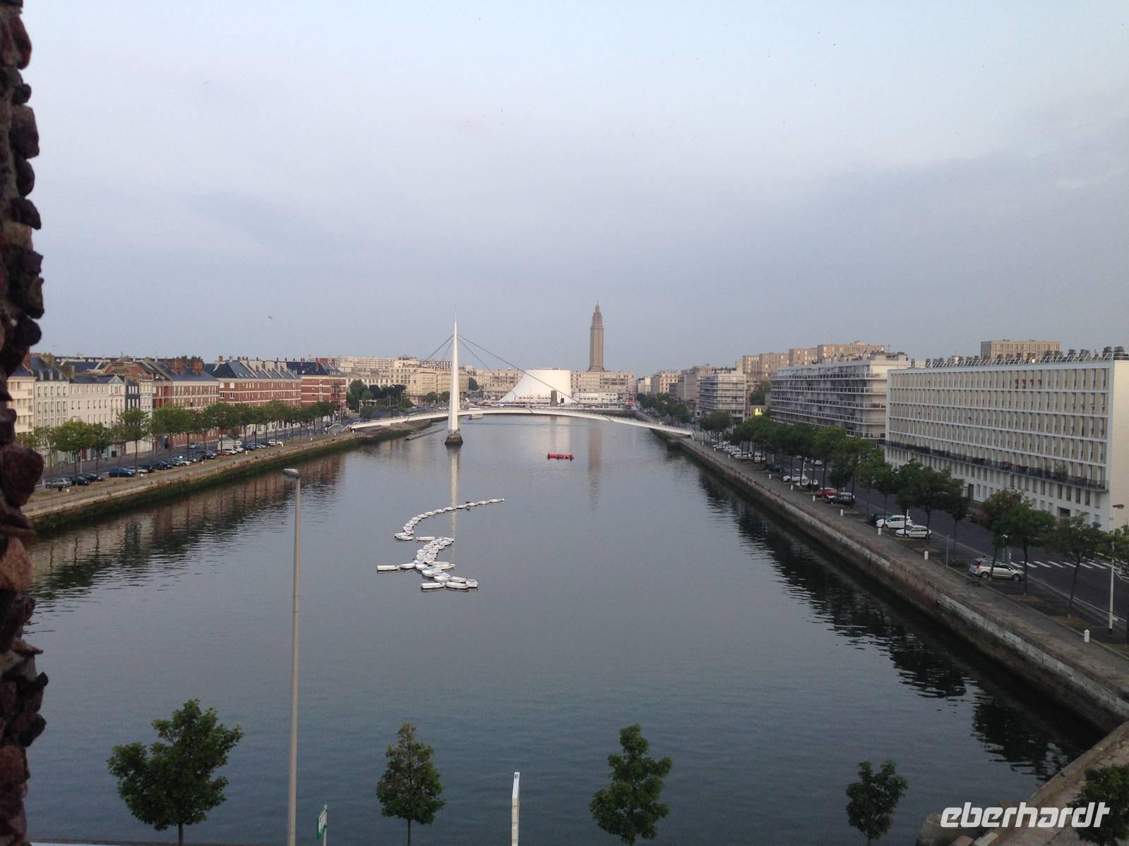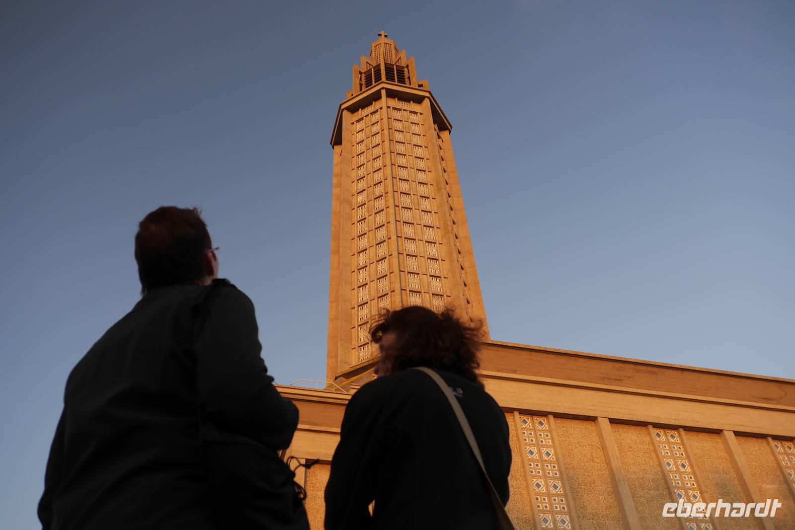 Anschließend bringt uns unser Bus bis ins Zentrum des kleines Badeortes Étretat. Bei strahlend blauem Himmel machen wir uns auf den Weg zum Plateau der Falaise Aval. An der Strandpromenade erinnern Informationstafeln mit Reproduktionen von impressionistischen Gemälden an die Maler des Impressionismus: Hier entstanden Claude Monets berühmte Kreidefelsen-Bilder. In dem Aval-Felsen erkannte er die abstrahierte Form eines Elefanten, der seinen Rüssel ins Meer steckt. Es geht weiter nach Le Havre, in die bekannte Hafenstadt, welche aufgrund der fast vollständigen Zerstörung des Zentrums und Hafens im Zweiten Weltkrieg komplett neu und in moderner Betonarchitektur unter der Leitung des Architekten Auguste Perret aufgebaut wurde.