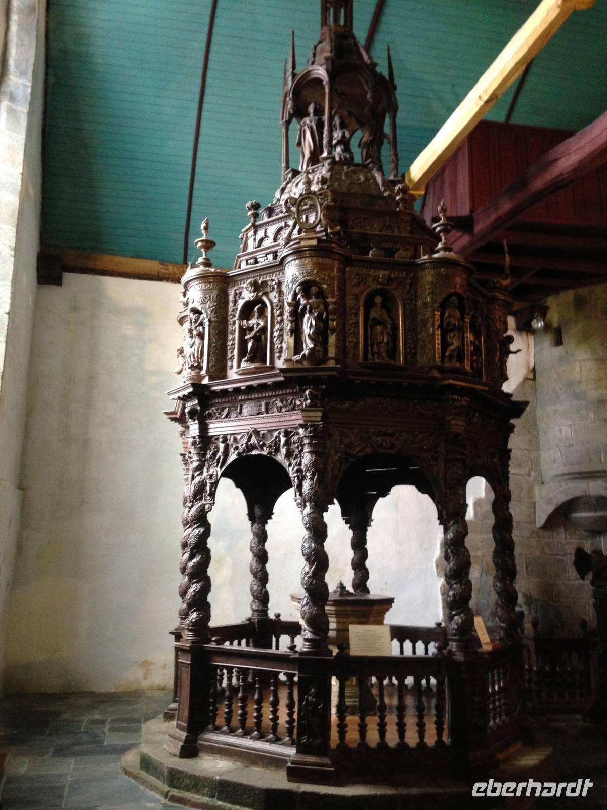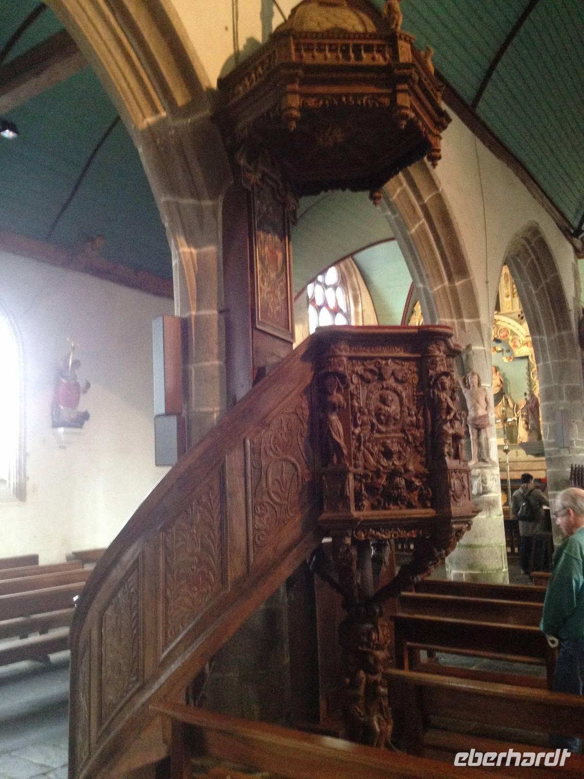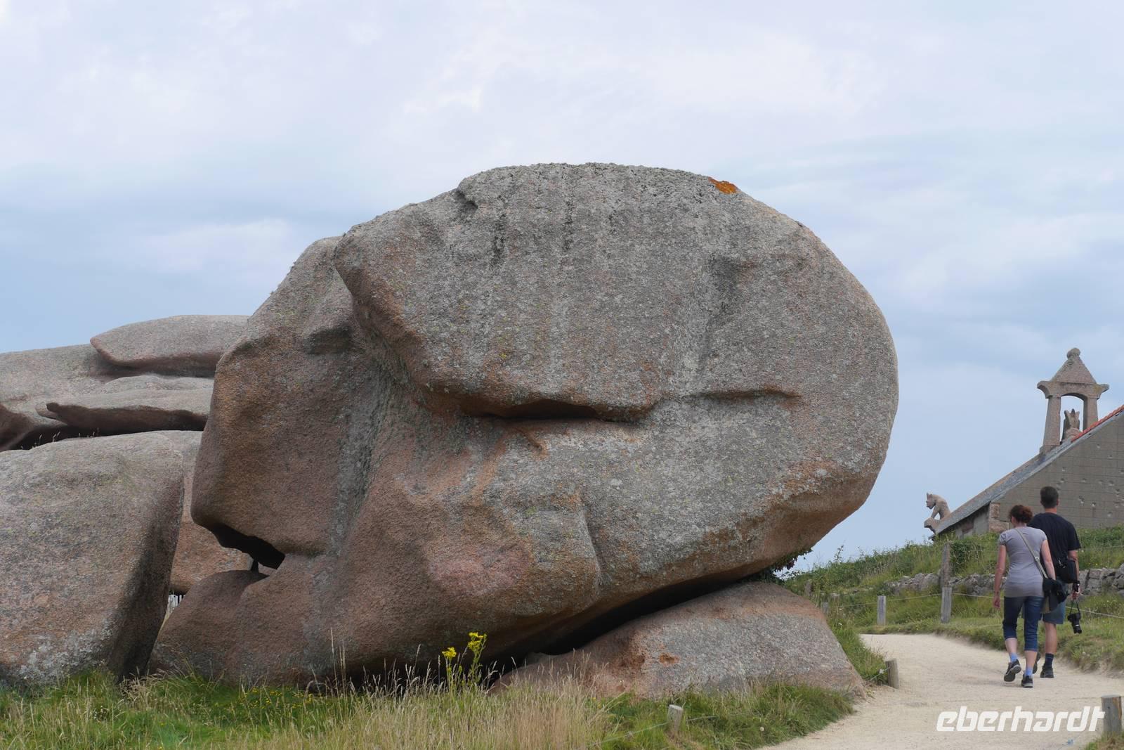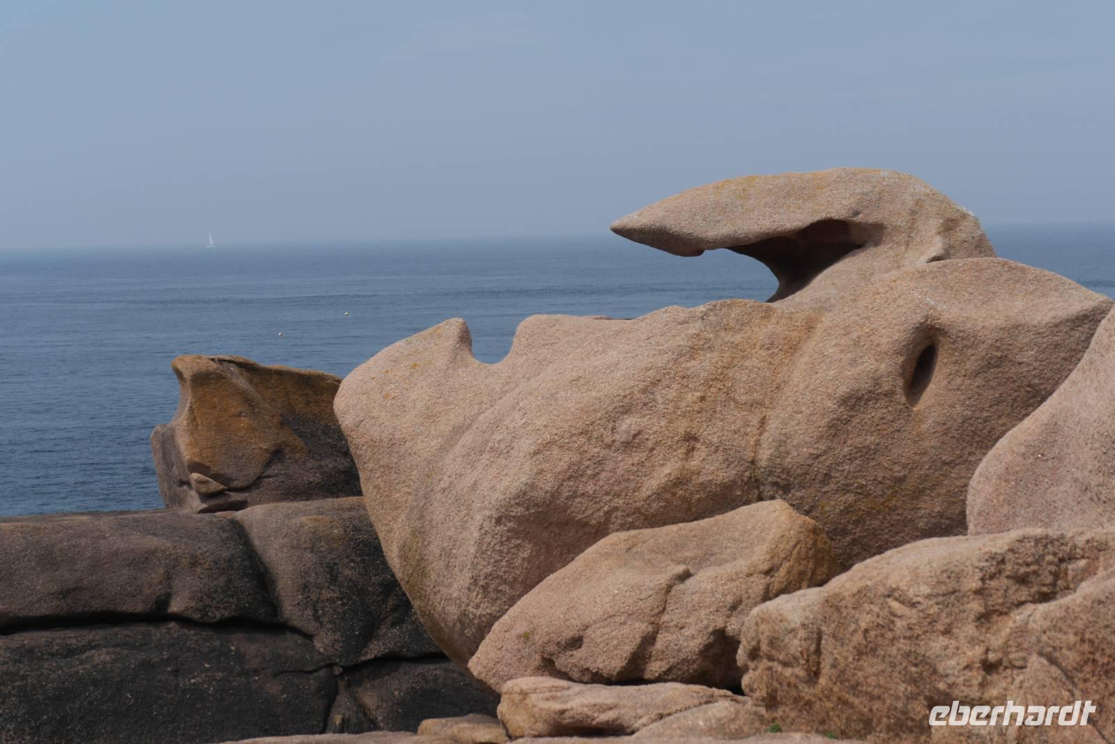 Das Cap Fréhel an der Smaragd-Küste im Golf von Saint Malo lockt uns heute mit einem Spaziergang und wunderschönen Ausblicken auf die Brutplätze zahlloser Vögel wie Kormorane, Austernfischer und Seetaucher. Auf der Weiterfahrt entlang der Küste sind uns schöne Blicke auf die langgezogenen Sandstrände an der Nordwestseite des Caps vergönnt. Nach zwei Stunden Fahrtzeit erreichen wir über Saint Brieuc die Rosa Granitküste (Côte de Granit Rose). Hier haben Wind und Wellen das Land und den Küstenstreifen seit Jahrtausenden zu Skulpturen aus rosa Granit und bizarren Felsformationen modelliert. Eine Szenerie, die uns zu Entdeckungen einlädt und zu Mutmaßungen über die Formen: ist das nun „Napoleons Hut" und wo ist das „Teufelsschloss"? Wo heute Wanderer unterwegs sind, patrouillierten im 19. Jahrhundert Zöllner, um Piraten und Schmuggler abzuwehren. Solche ehemaligen Wachpfade säumen fast die gesamte bretonische Küste, hier haben wir uns am wildromantischsten Abschnitt eingefunden! Auf der Weiterfahrt steuern wir den Achthundert-Seelen Ort Guimiliau an, der über eine für die Bretagne typische Besonderheit, einen sogenannten Kalvarienberg, verfügt. Inmitten eines von einer Mauer umschlossenen Pfarrhofes mit Kirche, Friedhof und Beinhaus finden wir einen aus Granitstein gehauenen, opulent mit zweihundert Figuren gestalteten Bilderzyklus auf einem Steinpodest. Passionsszenen stellen Christi Leben und Leiden dar, von der Verkündigung bis zur Auferstehung. Aber auch die Höllenfahrt der Katherina, Katel Gollet, wie sie auf bretonisch heißt, ist dargestellt: Die nackte und mit üppigen Brüsten ausgestattete Katherina -das übliche Bild, das "Sünde" verkörpert- wird von Teufeln, dargestellt durch ein zahnbewaffnetes Dämonenmaul, in die Hölle gestoßen.