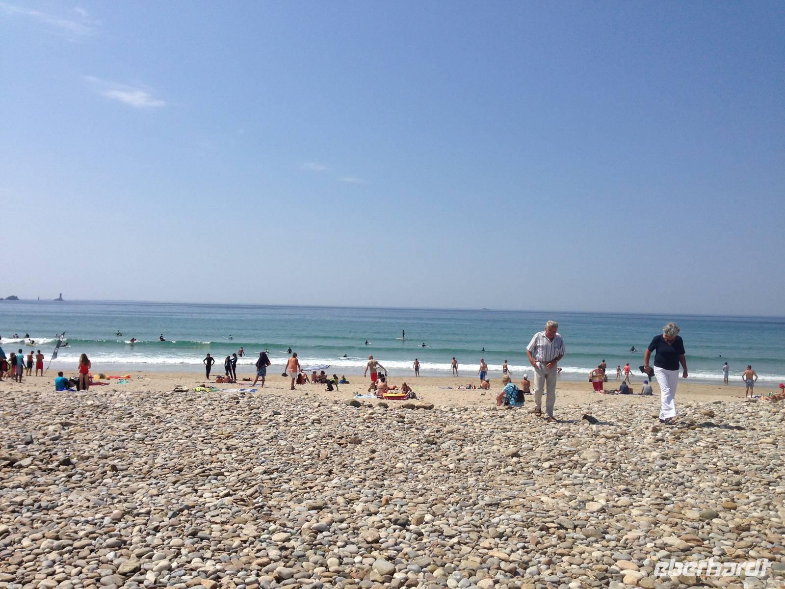 Das "Ende der Welt" - "Finis Terrae" ist heute unser Ziel. Im Finistère, dem westlichsten Département Frankreichs hörte bis zur Entdeckung Amerikas für Frankeich und Mitteleuropa die Welt auf. Hier an der "Pointe du Raz", brandet der Atlantik pausenlos gegen den siebzig Meter hohen Felskamm und frisst steile Schluchten in den Granit. Die Brise des Atlantiks weht uns heute nicht allzu heftig um die Nase - wir haben wieder Glück mit dem Wetter und können den Spaziergang und das anschließende Picknick bei herrlichstem Wetter genießen. Makrelen, Sardinen, Innereienwurst, verschiedene Käsesorten wie den bretonischen Menez Hom und Charouce, dazu Weine aus dem Médoc und dem Anbaugebiet von Saint-Émilion, welches heute zu den bekanntesten und bedeutendsten im Südwesten Frankreichs gehört. Auf der Rückfahrt nach Quimper machen wir einen kurzen Halt an der Kirche Notre-Dame-de-Confort-Meillars mit schönen Bleiglasfenstern und einem Glockenrad. Unsere Rundfahrt auf der Cornouaille-Halbinsel endet im kleinen Marktort Locronon, etwa zwanzig Kilometer nordwestlich von Quimper. Im Bilderbuchstädtchen stört kein einziger Neubau das Ensemble der blumengeschmückten Granithäuser aus dem 16. bis 18. Jahrhundert. Da die elektrischen Leitungen unterirdisch verlaufen, sind ideale Voraussetzungen als Filmkulisse gegeben: mehr als dreißig Filme wurden hier bereits gedreht, unter anderem "Tess" mit Nastasja Kinski.