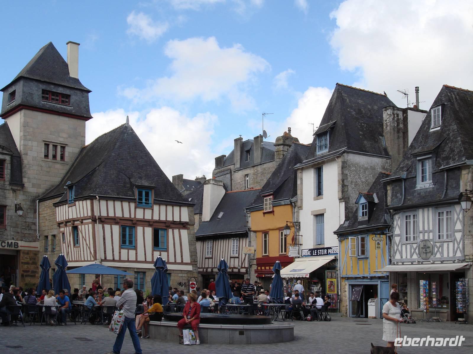 Die Stunden bis zum Abendessen nutzen wir für einen Bummel durch Quimper: Zahllose hübsche Fußgängerbrücken über den Fluss Odet verbinden das Stadtviertel unseres Hotels mit dem historischen Zentrum mit seinen schmucken Fachwerk- und Steinhäusern.