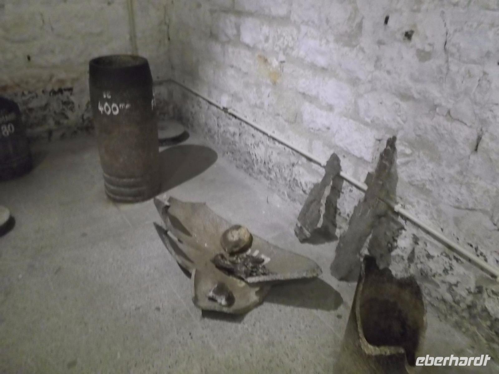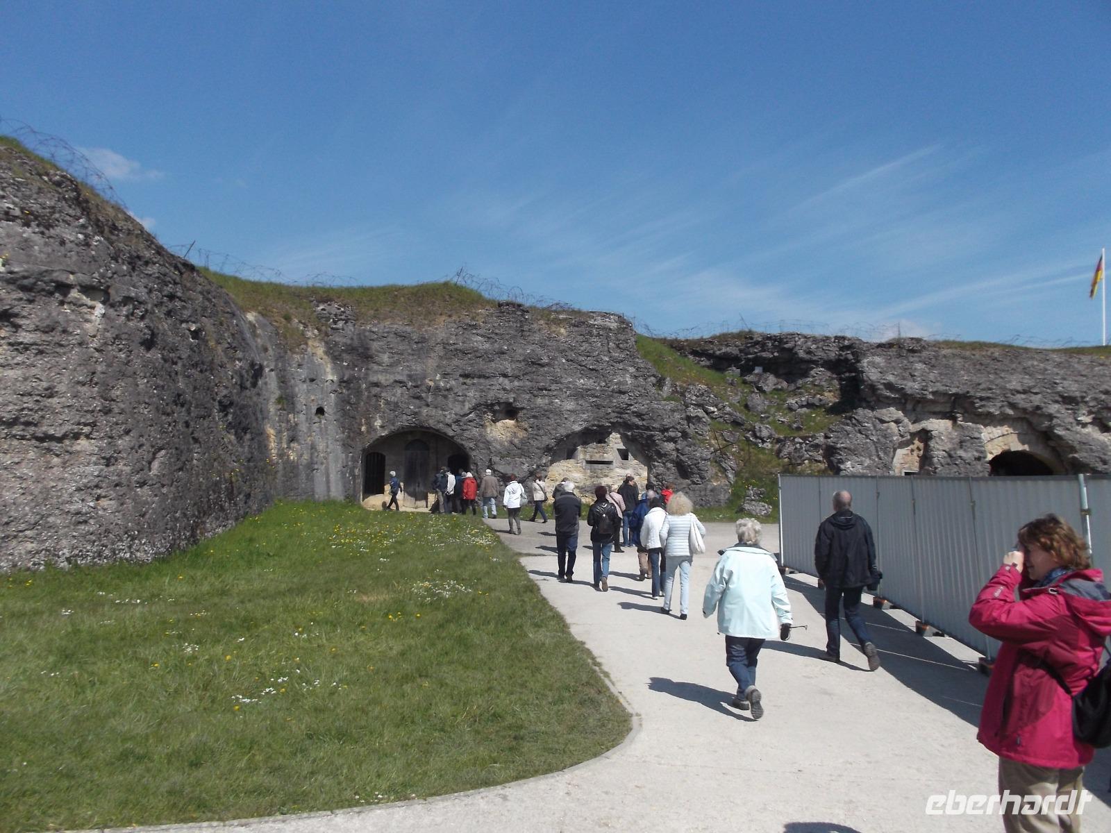 Verdun, heute als „Stadt des Friedens" bekannt und im ersten Weltkrieg Schauplatz einer der schlimmsten Schlachten der Epoche, war unser erstes Ziel. Wenn man sich in der Umgebung des Städtchens bewegt, was wir mit einem örtlichen Führer taten, istr man verblüfft: obwohl inzwischen hundert Jahre vergangen sind, kann man die Spuren der Ereignisse, die sich hier zugetragen haben, gut erkennen, denn sie haben den Ort bis heute komplett gezeichnet. Die außerordentlich eindrucksvolle Rundfahrt über Schlachtfelder, Gedenkstätten , historische Forts und Soldatenfriedhöfe, zeigt die Spuren eines Geschütz- und Bombardierungskrieges, in denen hunderttausende Soldaten sinnlos geopfert wurden. Nachdem wir hunderte Bombentrichter, Sappen und Laufgräben - in Resten erhalten und teilweise langsam vom Wald vereinnahmt - gesehen hatten, begannen wir die Innenbesichtigungen mit dem Besuch des „Ossuaire", des Beinhauses, das lange nach dem Krieg in der seltsamen Form eines Schwertgriffes, als stecke das Schwert hier in der Erde, errichtet wurde. Es dient zur Aufnahme der Gebeine von über hundertzwanzigtausend Gefallenen, die man nicht mehr zuordnen konnte ... Sehr beeindruckend - aber auch bedrückend - war die folgende Besichtigung des einstigen Artillerieforts Douaumont. Nicht nur die düsteren, feuchten Soldatenunterkünfte, die gewaltigen unterirdischen Straßen—und Gangsysteme und die Reste eines gewaltigen Geschützturmes, sondern auch die bewegende Führung durch den örtlichen Reiseleiter, der es gut verstand, die historischen Szenen zu illustrieren, erlaubten eine Vorstellung des hier Geschehenen.