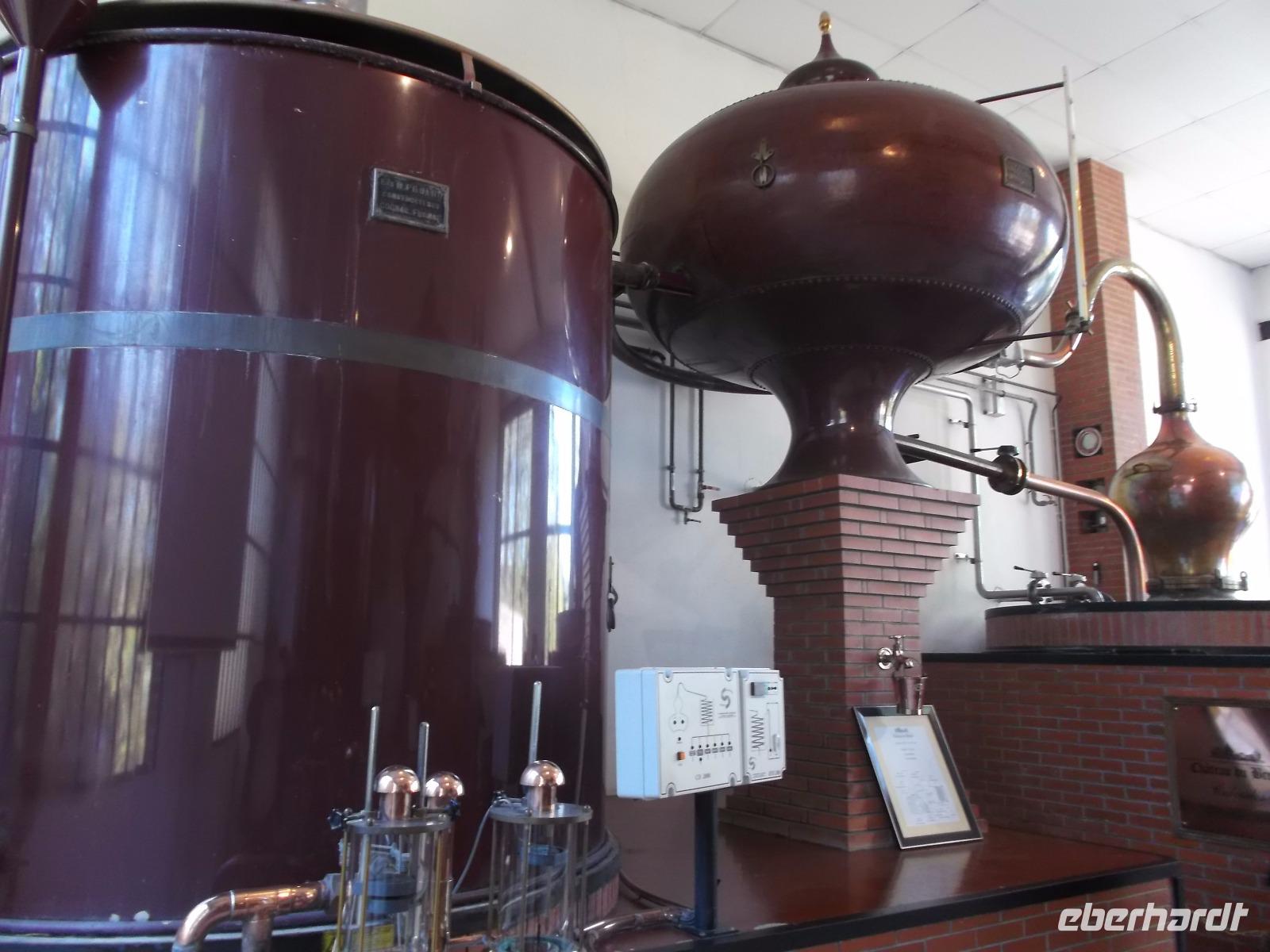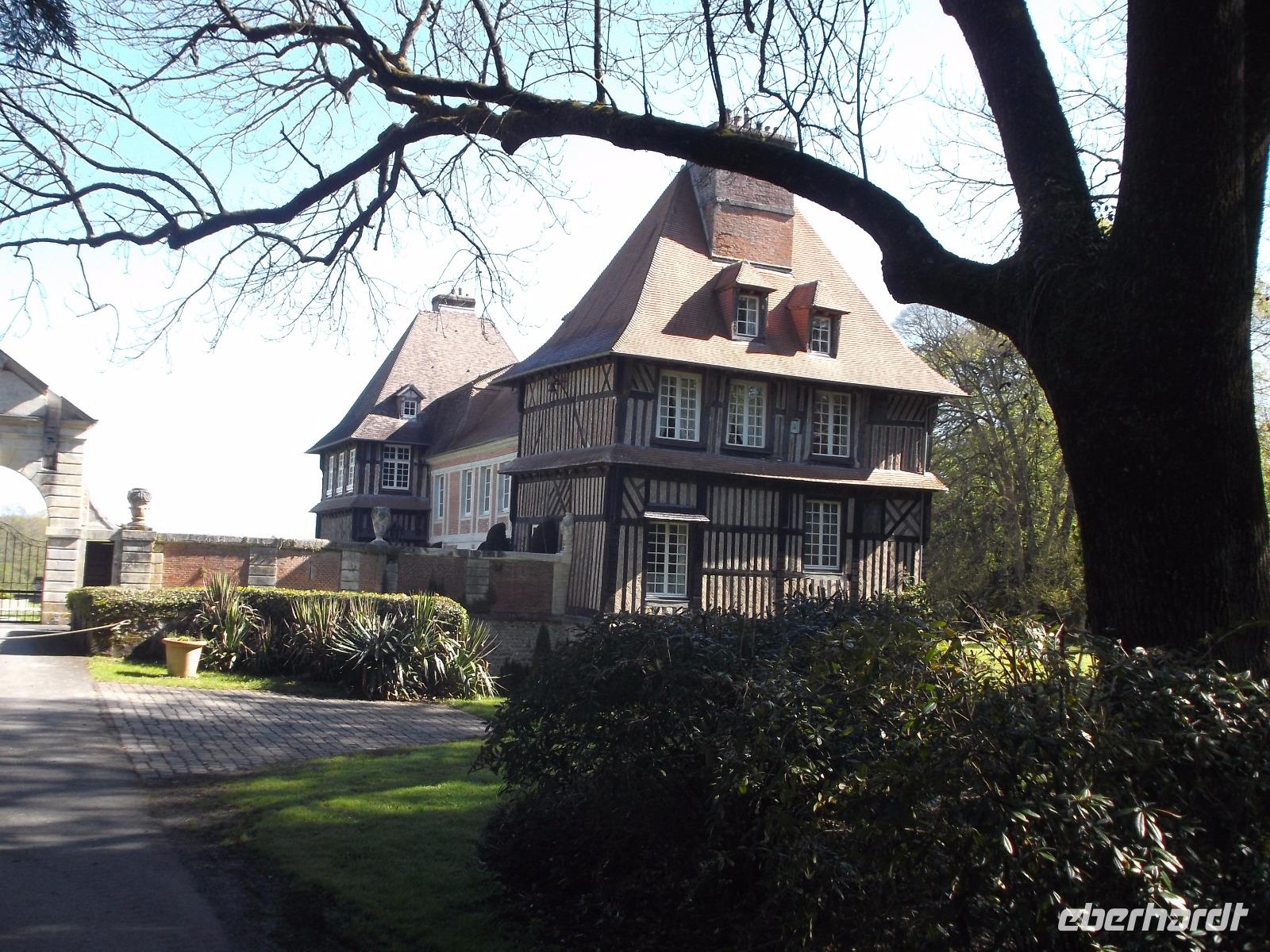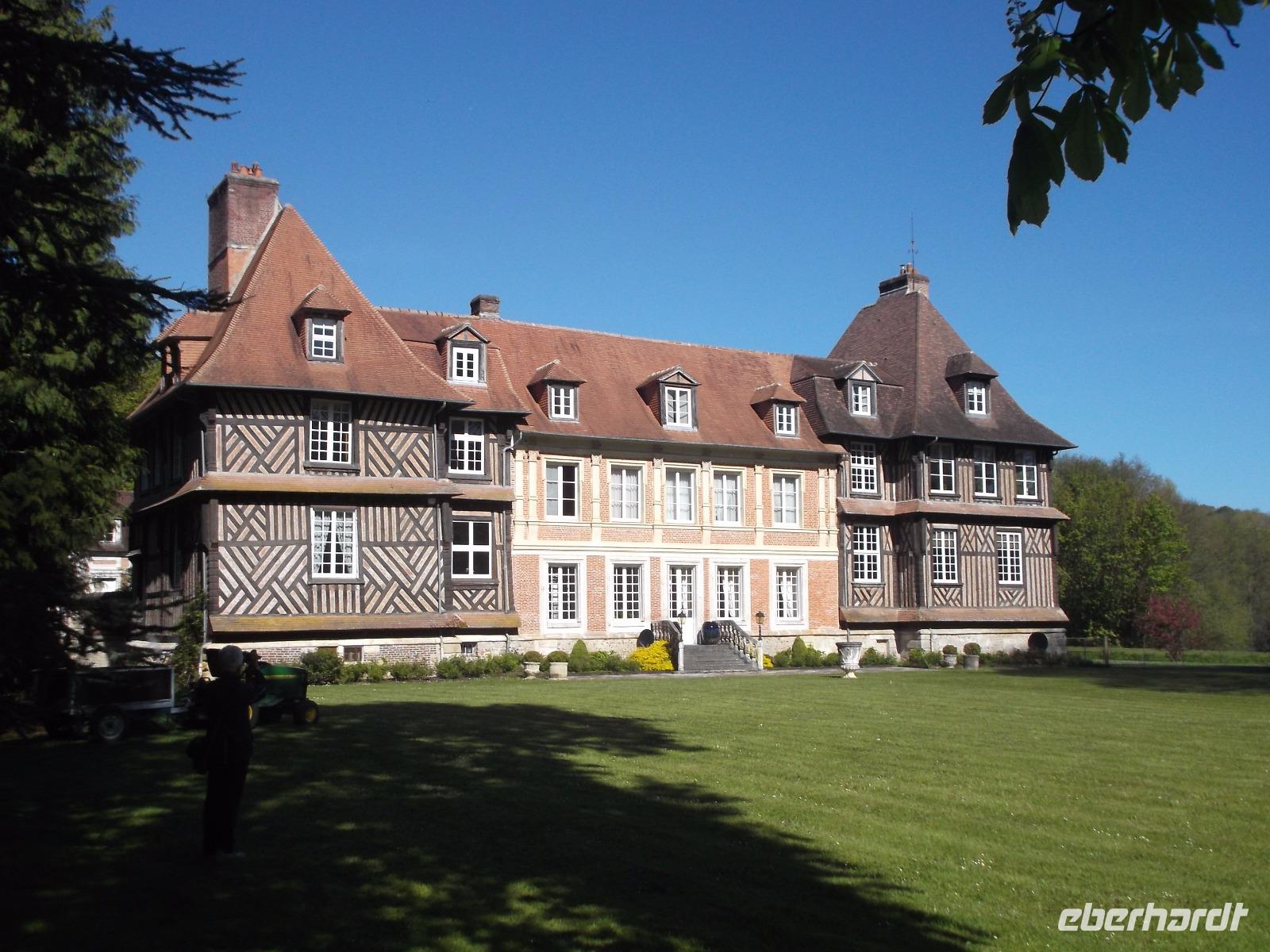 Anschließend besuchten wir das alte Fachwerkschloss „Chateau de Breuil", das zwar immer noch Wohnschloss ist, inzwischen aber in seinen Gemäuern aber eine Schnapsbrennerei und Lagerkeller für eine normannische und bretonische Spezialität beherbergt: in langer Tradition wird aus dem normannischen Apfelwein „Cidre" der weit alkoholhaltigere, leckere „Calvados" gebrannt. Sein Name leitet sich ab von der Region, aus der er stammt und bei einem Besuch der modernen Destillieranlage und später der Tour durch die historischen Lagerhallen, erfuhren wir, auf welche Art die in ganz Frankreich beliebte Spirituose erzeugt wird und wie sie ihren charakteristischen Geschmack und ihre Farbe erhält. Bei der anschließenden Verkostung lernten wir den besonderen Geschmack der Spezialität Pommeau - hergestellt aus Apfelsaft und Calvados - sowie von gereiftem Calvados kennen.
