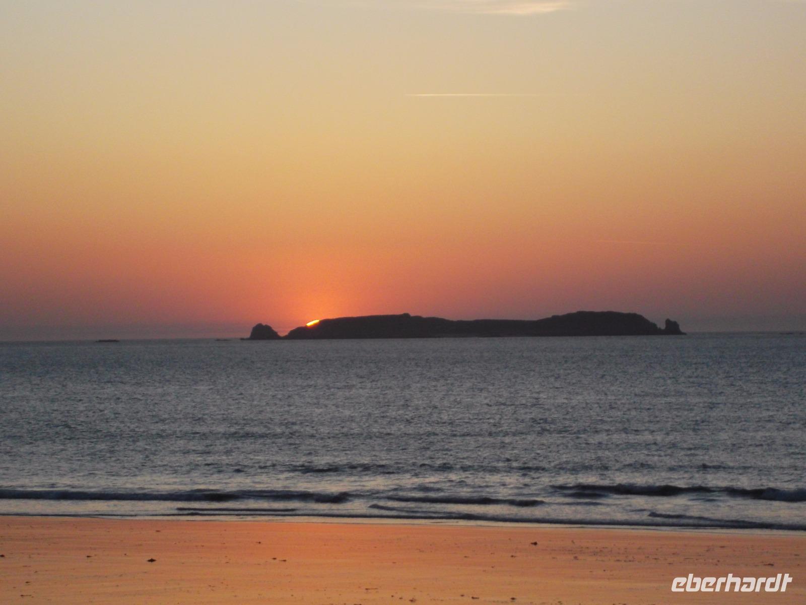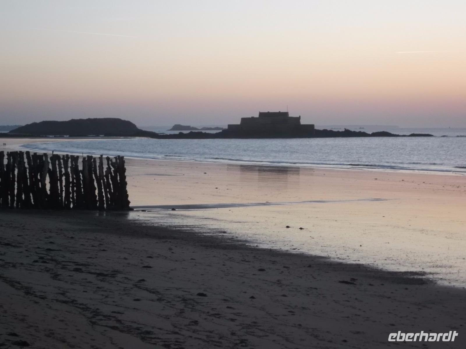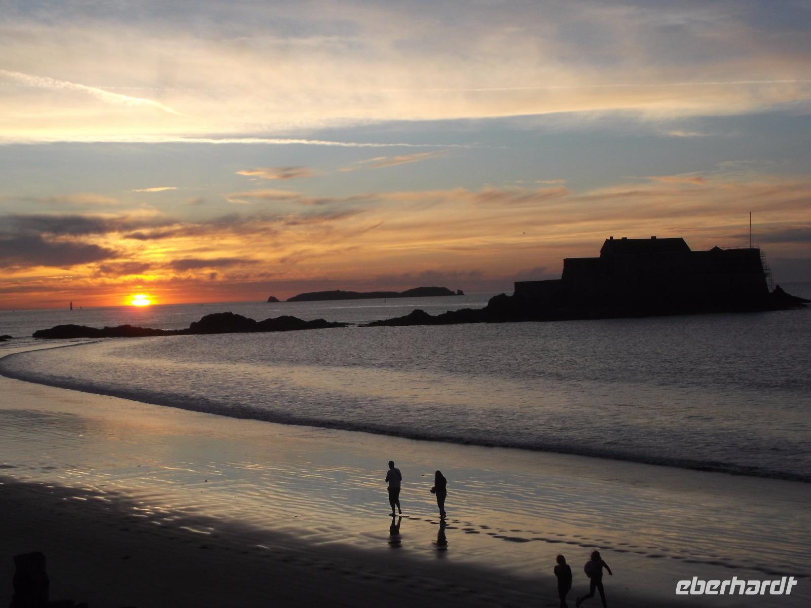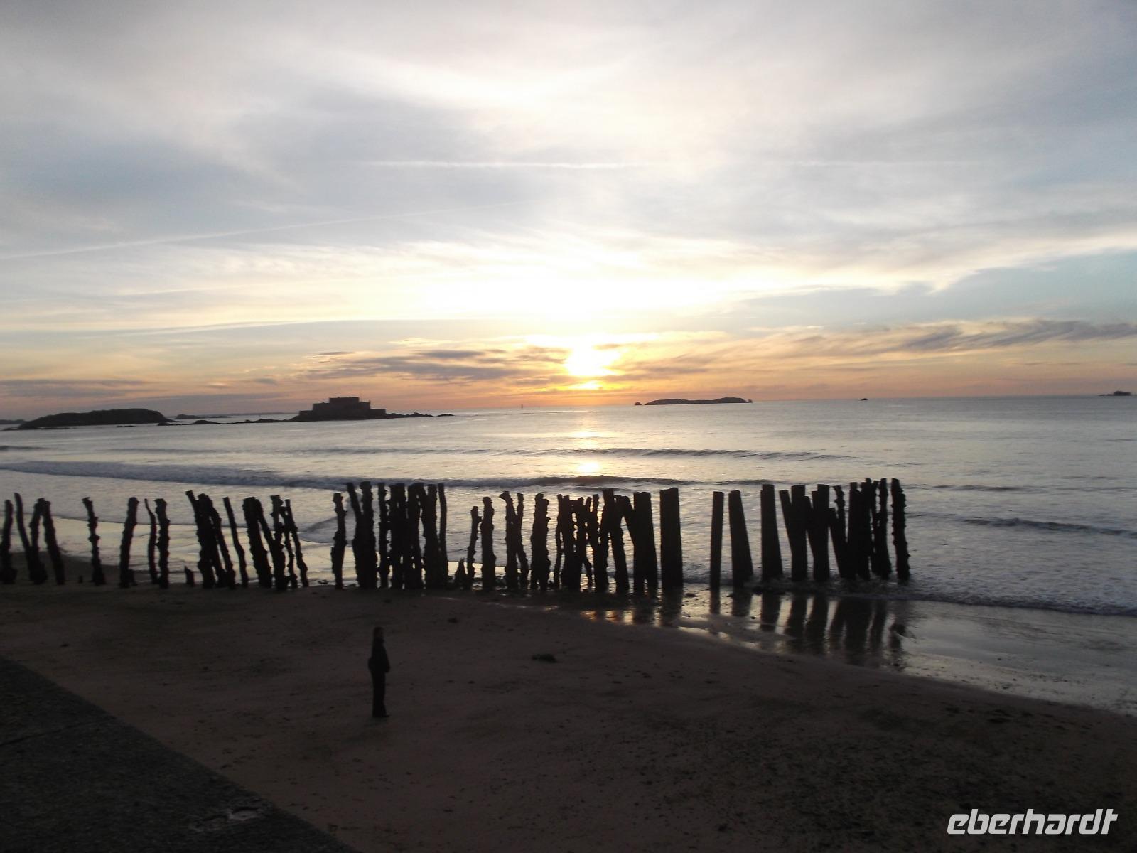 Später setzten wir unsere Fahrt fort - zurück zur Autobahn und quer durch die Normandie bis in die Bretagne. Unterwegs hatten wir, da schönes Wetter und gute Sicht uns begünstigten, schon Ausblicke auf den Höhepunkt des morgigen Tages, bergartig aus der breiten Meeresbucht aufragenden Mont St.Michel. Später erreichten wir unser Hotel in Saint Malo und wohnten direkt an der Küstenstraße - was uns später einen atemberaubend schönen Sonnenuntergang bescherte.