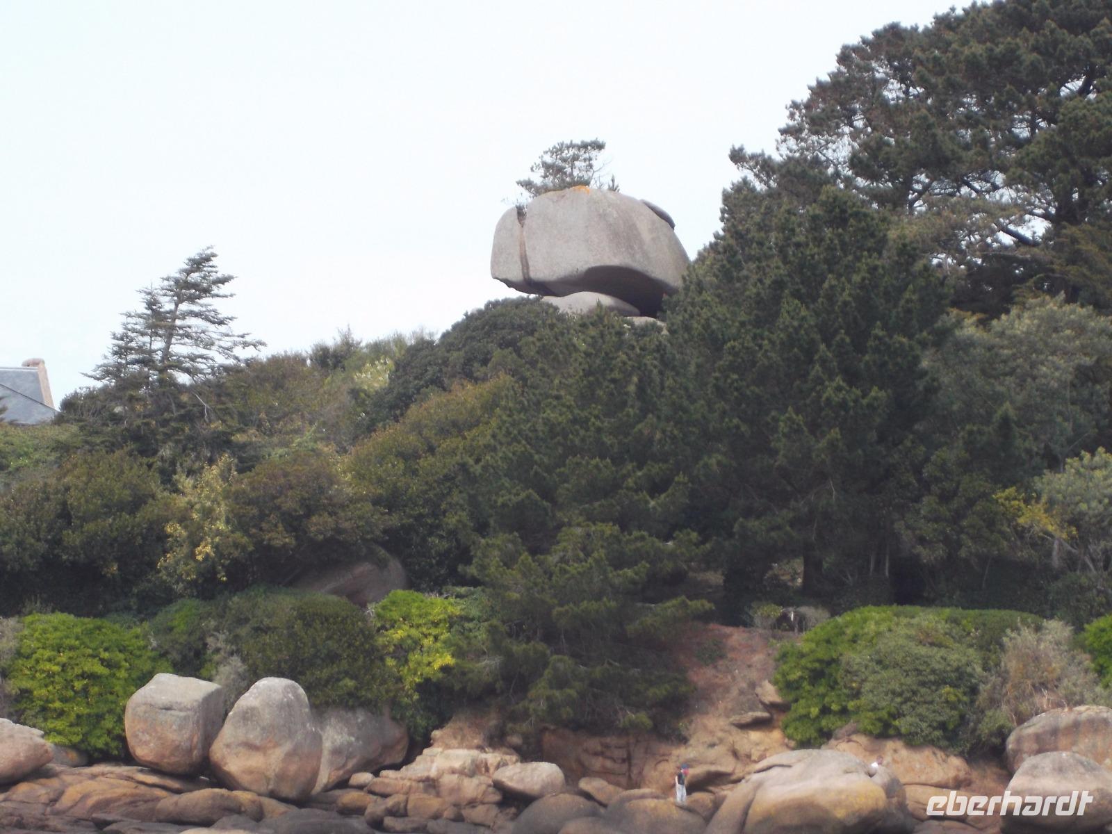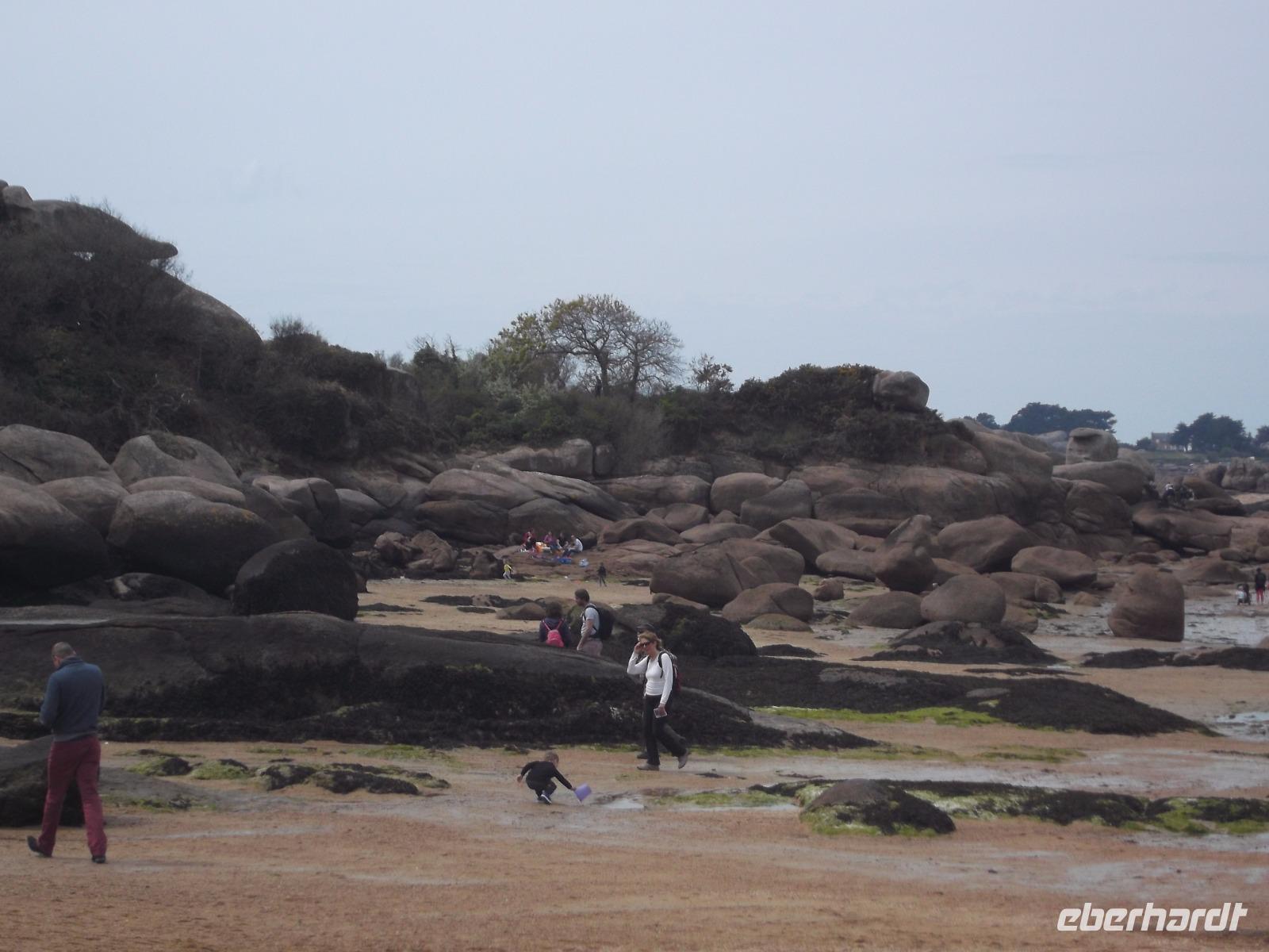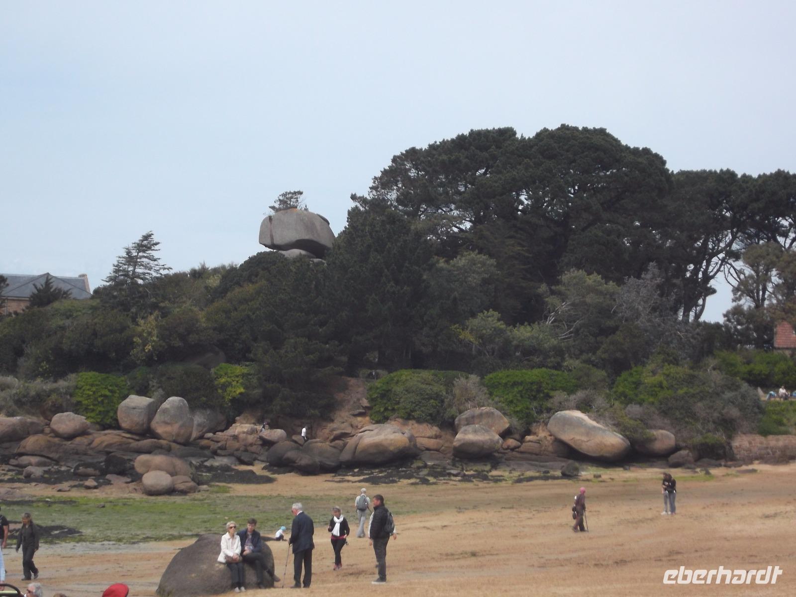 Die landschaftliche Schönheit der Bretagne würde heute den Hauptinhalt des Reiseprogramms bilden. Gleich nach dem Frühstück gab es einen Fotostopp auf dem Weg zum Kap Frehel, nachdem wir die Mündung des Flusses Rance überquert hatten. Das Gewässer trennt die Städte St. Malo und Dinard und in seinem Mündungstrichter sieht man die Höhenunterschiede der Gezeiten besonders gut. An dieser Stelle nutzt man seit den 60er Jahren des 20. Jh. die gewaltige Energie von Ebbe und Flut zur Stromerzeugung. Vom Gezeitenkraftwerk selbst sieht man nur wenig, lediglich die Schleusenanlagen und einige der Wassereinlässe für die insgesamt 24 Turbinen kann man sehen. Sie sind in der Staumauer verborgen untergebracht und nutzen die Kräfte sowohl des herausfließenden wie auch des hineindrückenden Wassers zur Energieerzeugung nutzen. Die Weiterfahrt führte uns zum Kap Frehel. Über 70 m über die Meeresfluten ragen die hohen Klippen und Felsenflanken des Kaps auf und zeigen als grandioses Naturschauspiel, wie die Wellen des türkisfarbenen Wassers die Felsküste, bestehend aus rotem, schwarzem und grauem Gestein, umtosen. Wer wollte, konnte auf einem kleinen Rundwanderweg um den 1950 erbauten steinernen Leuchtturm die Naturschönheiten dieses Ortes entdecken. Noch auf große Entfernung soll vom Meer aus das Leuchtfeuer bei schönem Wetter zu sehen sein. Nach ausgiebigem Stopp an den mit Heidekraut und Ginster bewachsenen und von Möwen und Kormoranen bevölkerten Klippen ging es schon weiter zum nächsten landschaftlichen Höhepunkt. Vor ungefähr 300 Millionen Jahren entstand die rosa Granitküste. Die Farbe, die die kurze „Cote de granit rosé" besonders anziehend macht, entstand durch bestiummte Mineralien im Gestein. Die folgenden Jahrmillionen mit ihren Veränderungen des Wasserspiegels und den verschiedensten Formen der Erosion schließlich sorgten für die Entstehung der bizarren Felsformationen, für die diese rosa Granitküste neben ihrer Färbung so bekannt und als Touristenattraktion beliebt ist. Schon beobachten kann man sie beim Rundweg und am Anfang des berühmten „Zöllnerpfades", der im Städtchen Ploumanach seinen Anfang nimmt. Ob es nur ein Fotostopp am kleinen Hafen mit seinen bizarren Formationen oder gleich eine längere Wanderung zu den Felsenkuppen sein sollte - wir hatten hier Zeit, um die Schönheiten der Küste, des Ortes und des Zöllnerpfades aufzunehmen.