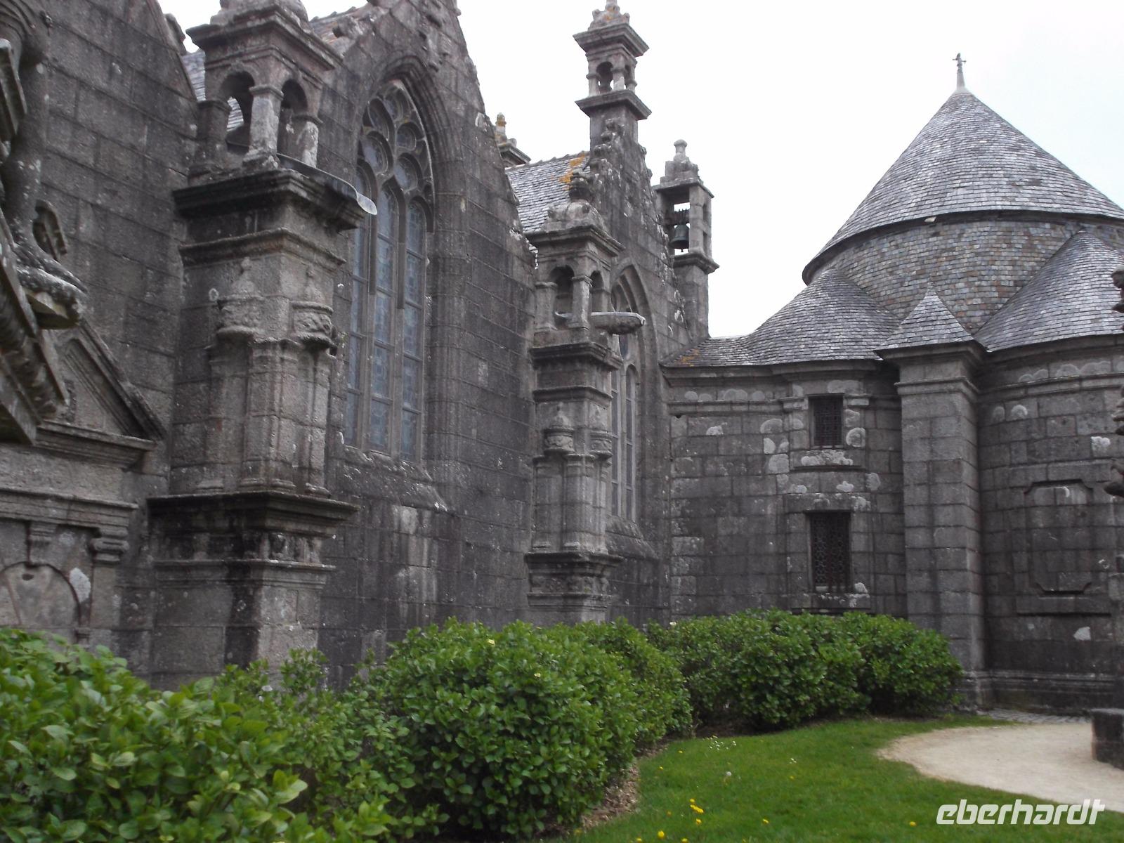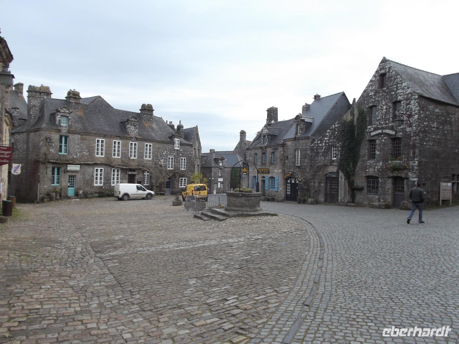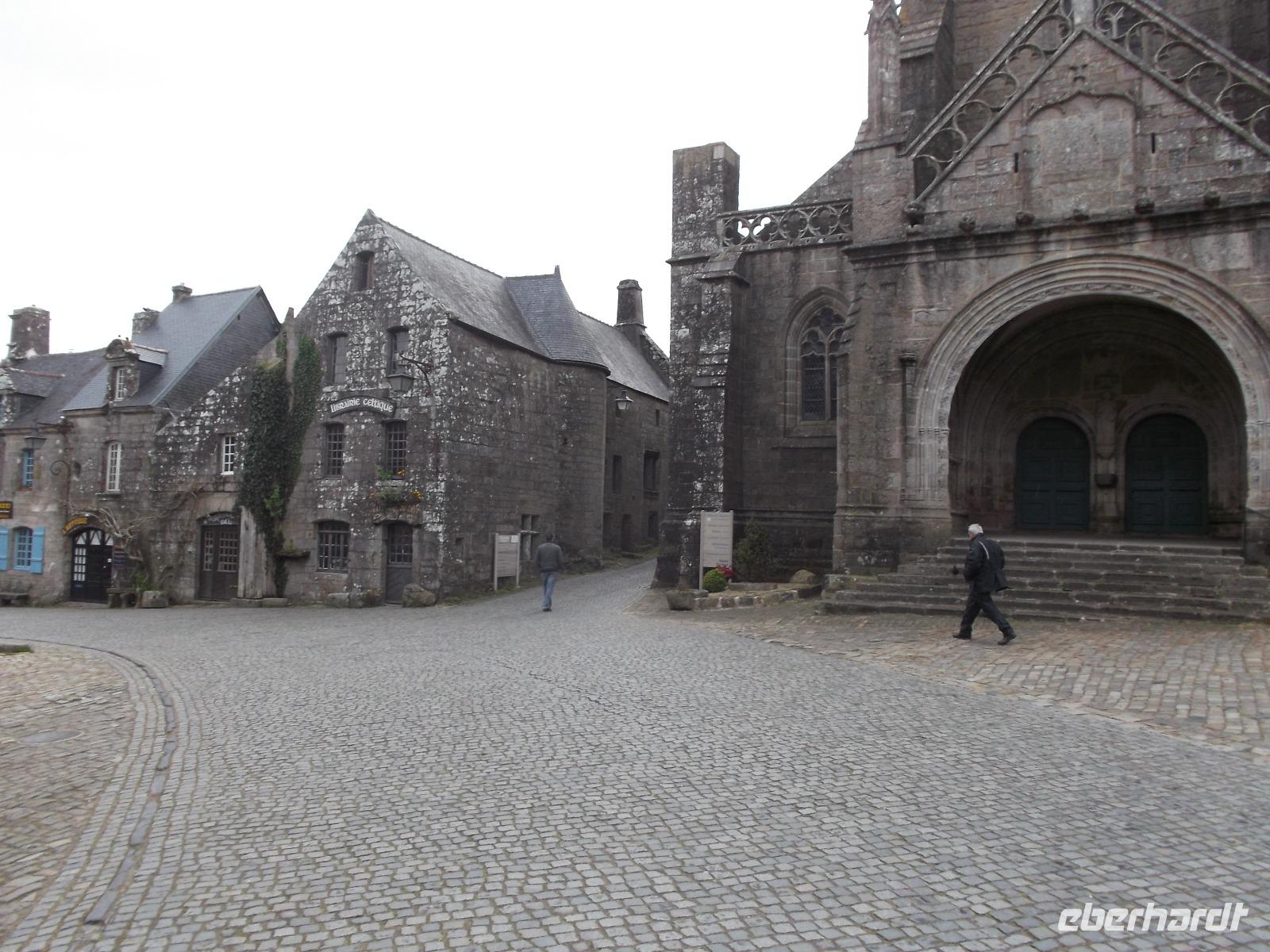 Unser erstes Ziel war der malerische Ort Locronan. Das Dorf, das früher für seine Segeltuchherstellung bekannt war und damit Wohlstand erwarb, konnte sein mittelalterliches Flair wie kaum ein anderer Ort in Frankreich bewahren. Deshalb ist nicht nur offiziell autofrei und steht komplett unter Denkmalschutz, sondern es diente auch immer wieder als Kulisse für zumeist historische Filme. Roman Polanski drehte hier „Tess", mehrere „Musketiere"-Klassiker-Verfilmungen (wie z.B. der mit Michael York und Oliver Reed in den Hauptrollen) fanden hier ihren Drehort, aber auch Serien und in den 60er Jahren bekannte Reihen wie die „Angelique"-Filme hatten hier verschiedene Schauplätze. Wir hatten Zeit, um uns die ungewöhnlich aussehenden Kirche, den malerischen Dorfplatz und die von alten Häusern gesäumten Straßen und Plätze von Locronan anzusehen.