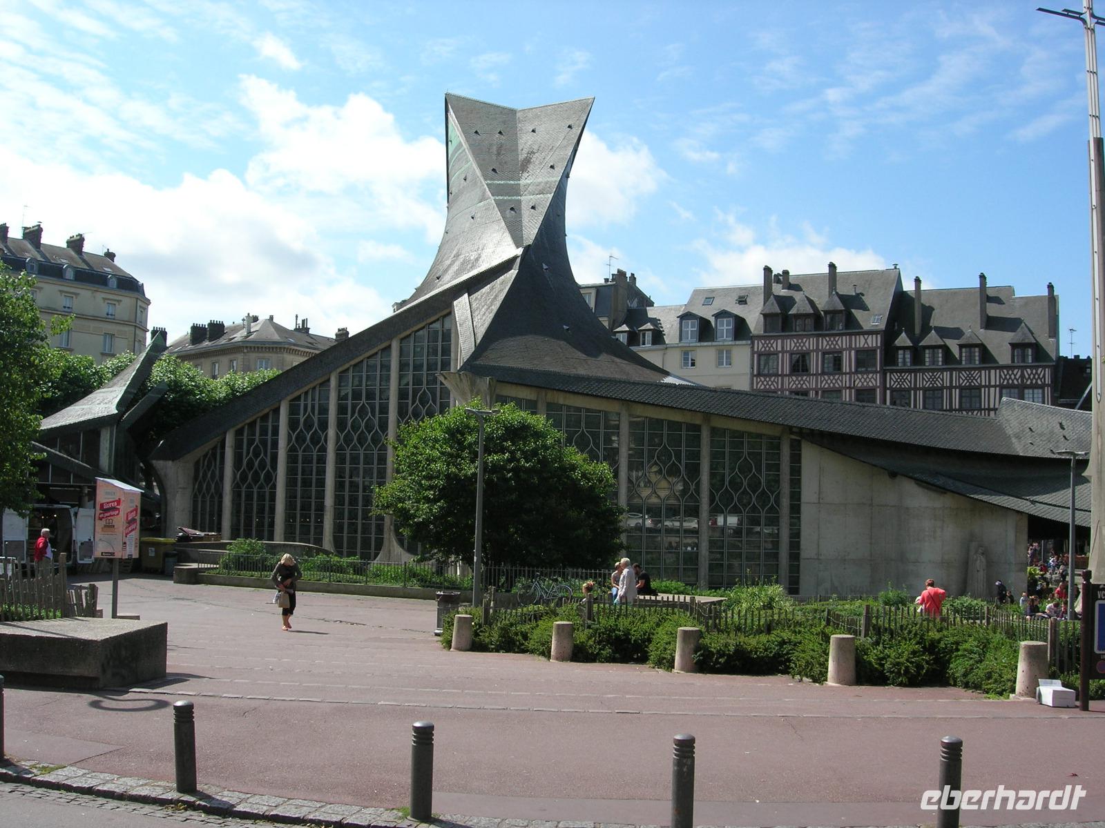 Nach einer kurzen Fahrt vom Hotel zur Altstadt Rouens, der Hauptstadt der Normandie, erwartete uns dort schon unsere lokale Stadtführerin. Sie zeigte uns den Aitre St. Maclou (eine 1338 angelegten Pestfriedhof), die Kathedrale Notre-Dame, malerische Ecken der Altstadt sowie den alten Markt mit der 1979 erbauten und Jeann-d'Arc geweihten Kirche, die einen wunderschönen Glasfensterzyklus aus der 1944 zerstörten Kirche St. Vincent beherbergt. Neben der Kirche erinnert ein 20 m hohes Kreuz an die Verbrennung Jeanne d'Arcs am 30.5.1431 auf einem Scheiterhaufen an dieser Stelle.