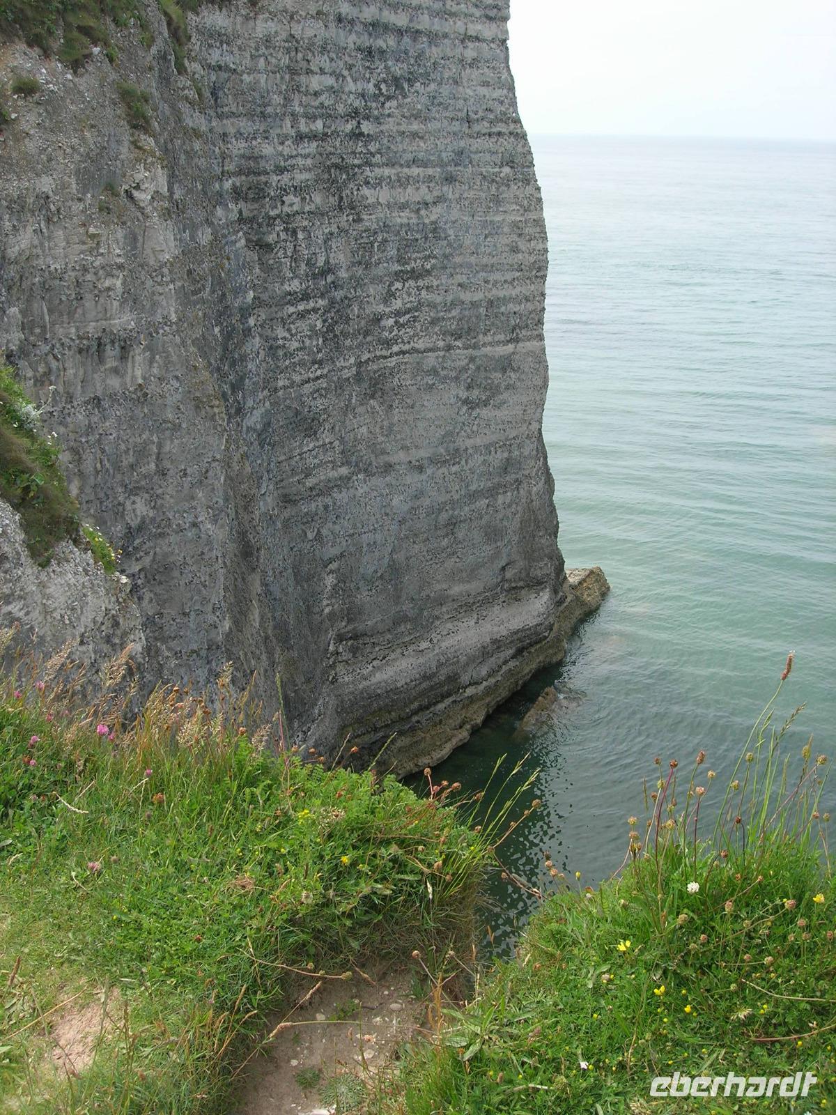 Nach der Mittagspause in Rouen hieß es 'auf zur Côte d'Abatre' - dem nach seinen hellen Kreidefelsen benannten Küstenabschnitt der Oberen Normandie. Bei strahlendem Sonnenschein lockte die Küste mit ihren steinigen Stränden und den beeindruckenden Kreidefelsen. Schöner als an diesem Nachmittag kann es in Ètretat nicht sein. Die Sonne gab dem Meer einen smaragdfarben Glanz. Die hellen Felswände der "Falaise d'Aval" links und der "Falaise d'Amont" rechts mit ihren eingelagerten Feuersteinbändern boten von oben ein atemberaubendes Panaorama - so unbeschreiblich schön, das es sich kaum fotografieren liess. Das ideale Wetter lockte alle zum Wandern vor oder nach einer kleinen Mittagspause im Ort.