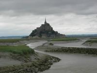 Dann ging es ins ins Pays d'Auge, das malerische Hinterland der Küste. Im Château de Breuil erwartete uns eine interessante und humorvolle Führung durch die Calvados-Brennerei mit anschließender Calvados-Verkostung. Beschwingt durch den köstlichen Calvados bzw. Pommeau ging es nun in das alte Hafenstädtchen Honfleur, von dem einst Kapitäne wie Samuel de Champlain, in die Neue Welt aufbrachen. Viele Jahrhunderte lang florierte hier der Überseehandel mit Canada und Brasilien, später kamen die frühimpressionistischen Landschaftsmaler, die Mitte des 19. Jahrhunderts um den Maler Eugène Boudin herum in der Ferme Saint-Siméon bei Honfleur eine kleine Künstlerkolonie gründeten. Ende des 19. Jahrhunderts sollte Erick Satie, der seinerzeit berühmteste Sohn der Stadt, das Pariser Musikleben kräftig aufmischen. Wir erkunden gemeinsam die Stadt um den Alten Hafen und die von Schiffszimmermeistern aus Holz errichtete Kirche Ste Chaterine. Dort entdeckten wir an einem Fischstand unser gestriges Fischgericht, den Rochen, "in Natura", der jedoch schnell verkauft war. Nach der Mittagspause brachen wir auf zur Côte de Nacre nach Arromanches. Hier befand sich einer der Landungsstrände der Alliierten, wo am 6.6.1944 unter unvorstellbaren Opfern die Befreiung Frankreichs und Europas vom Faschismus begann. Nur wenige Tage später wurde hier der Mulberry Hafen angelegt, über den die ersten Transporte der Alliierten gingen. Mit Reims, dem Ort der Unterzeichnung der Kapitulationserklärung erinnert dieser Besuch an einen weiteren Hauptschauplatz des II. Weltkriegs, an dessen Ende vor 70 Jahren im vergangenen Jahr weltweit gedacht wurde. Am späten Nachmittag fuhren wir durch die Heckenlandschaften Untere Normandie, am Mont-Saint-Michel vorbei und gelangten über den alten Grenzfluss Couesnon in die Bretagne. In Saint Malo erreichten wir unser Hotel für die nächsten zwei Tage, das ideal dem Strand gegenüber direkt an der Küstenstraße lag.