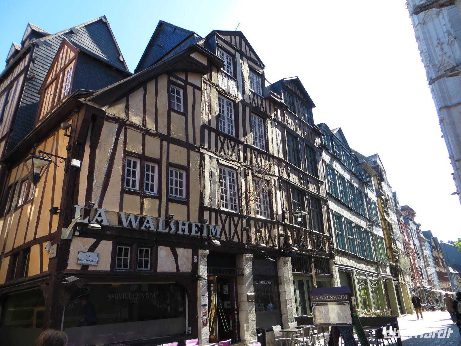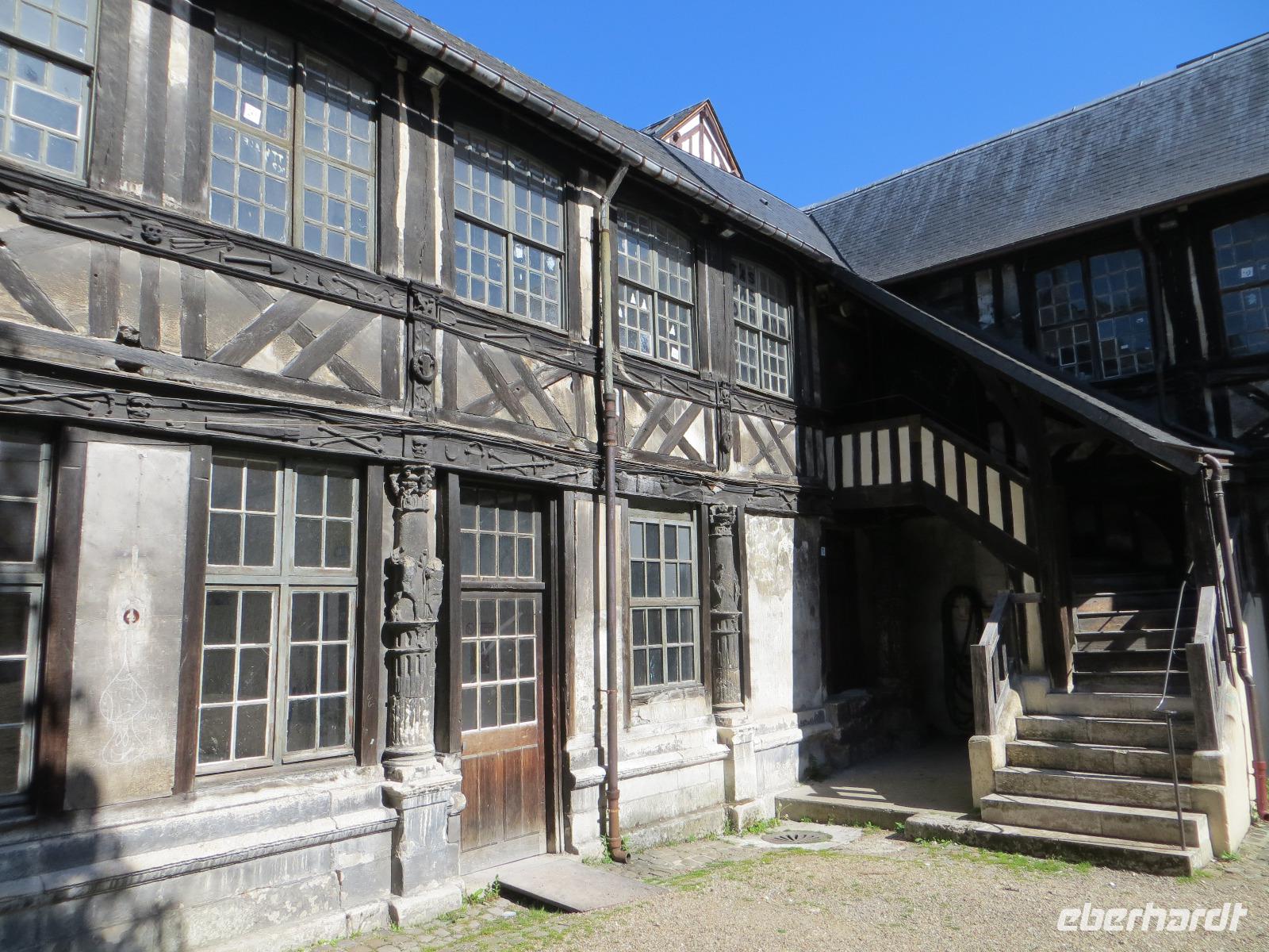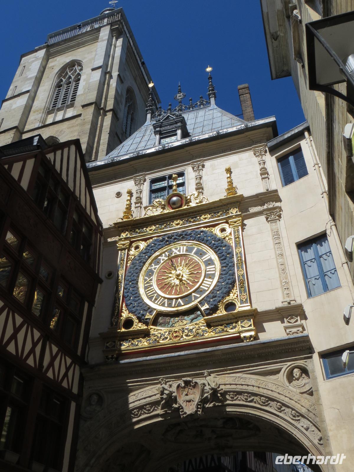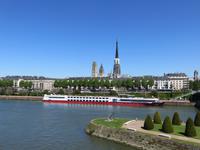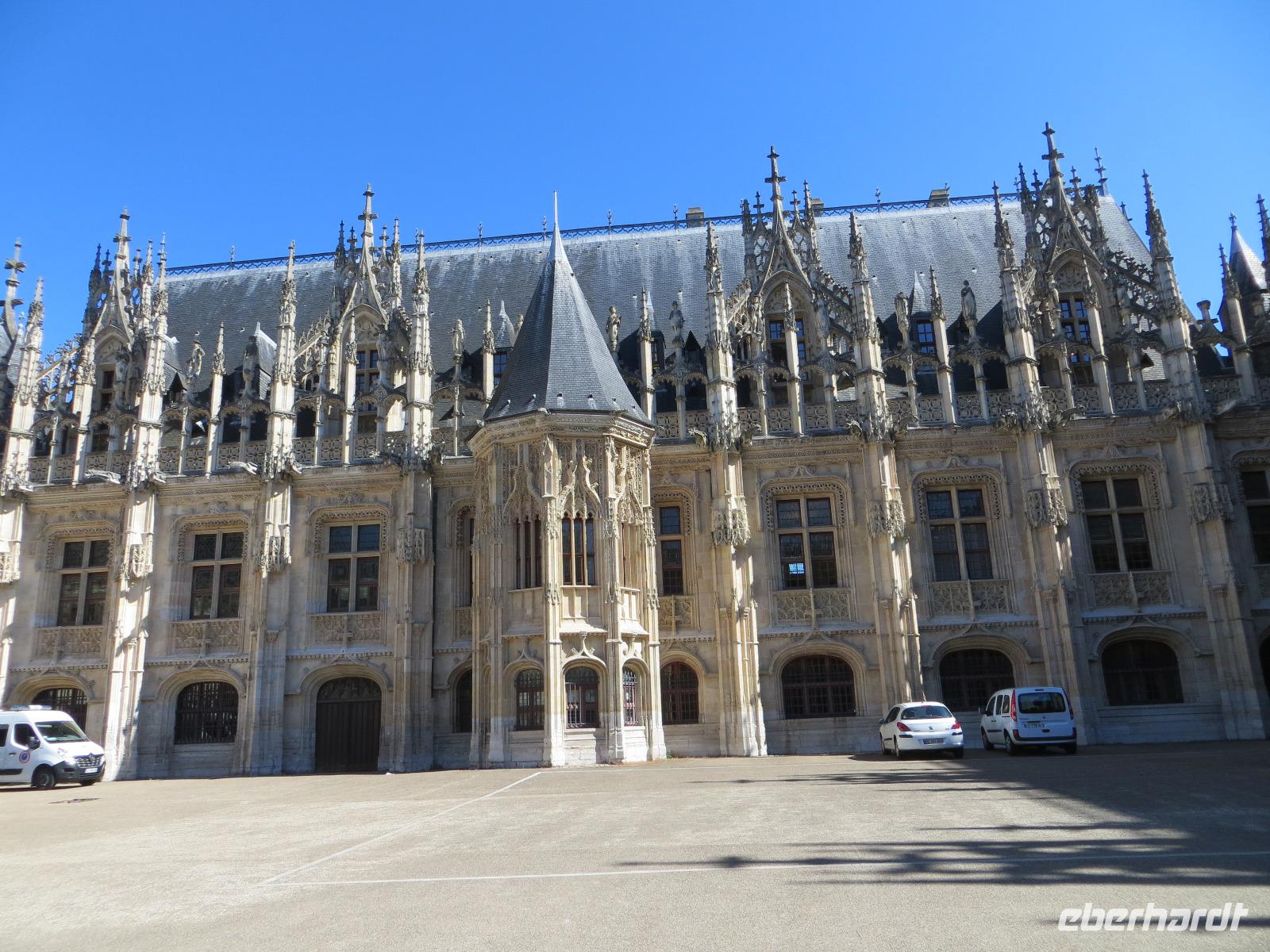 Unsere örtliche Reiseleiterin erwartete uns bereits in der Toursitinformation zu einem Bummel auf den Spuren der Johanna von Orleans. Wir starteten an der Westseite der Kathedrale zum Stadtbummel in Rouen, der zweitgrößten Stadt der Normandie. So begannen wir den Bummel vor und in einer der imposantesten gotischen Kathedralen Frankreichs, sahen den Butterturm, der aus Spenden - oder doch wohl eher aus dem Ablasshandel finanziert wurde - und den hohen Helmturm, die übliche gotische Rosette an der Westfront, und in der Kirche die „Parade der Apostel". Unser Bummel führte uns vorbei an schiefwinkligen Fachwerkhäusern der Altstadt und zum ehemaligen Gebeinhaus der Pesttoten. Am Justizpalast vorbei strebten wir zur Rue d' Horologue mit dem bekannten Uhrturm und der wohl ältesten Turmuhr. Weiter ging es zum Alten Markt, jenem Platz, wo 1431 Jeanne d´Arc den Feuertod starb. Eine moderne, flache Kirche steht nun in diesem Areal. Zur Mittagszeit starteten wir am Ufer der Seine zur Weiterfahrt an die Atlantikküste in das im Sommer recht trublige Etretat - zur Maienzeit ist der Touristenstrom fast noch überschaubar. Am Strand erstreckt sich linker Hand aufsteigend die Steilküste am Falaise d' Aval und rechtsseitig die Falaise d' Amont. Riesige Felsentore öffnen sich im Kalkstein und die von Westen scheinende Sonne produziert leuchtend hellen Fels und smaragdgrünes Wasser des Ärmelkanals. Wer auf einen der Hügel anstieg, wurde für sein Mühen belohnt und konnte manch schönes Urlaubsbild machen. Am späten Nachmittag erreichten wir das moderne Hafenviertel von Le Havre und unser Hotel Mercure am Bassin.