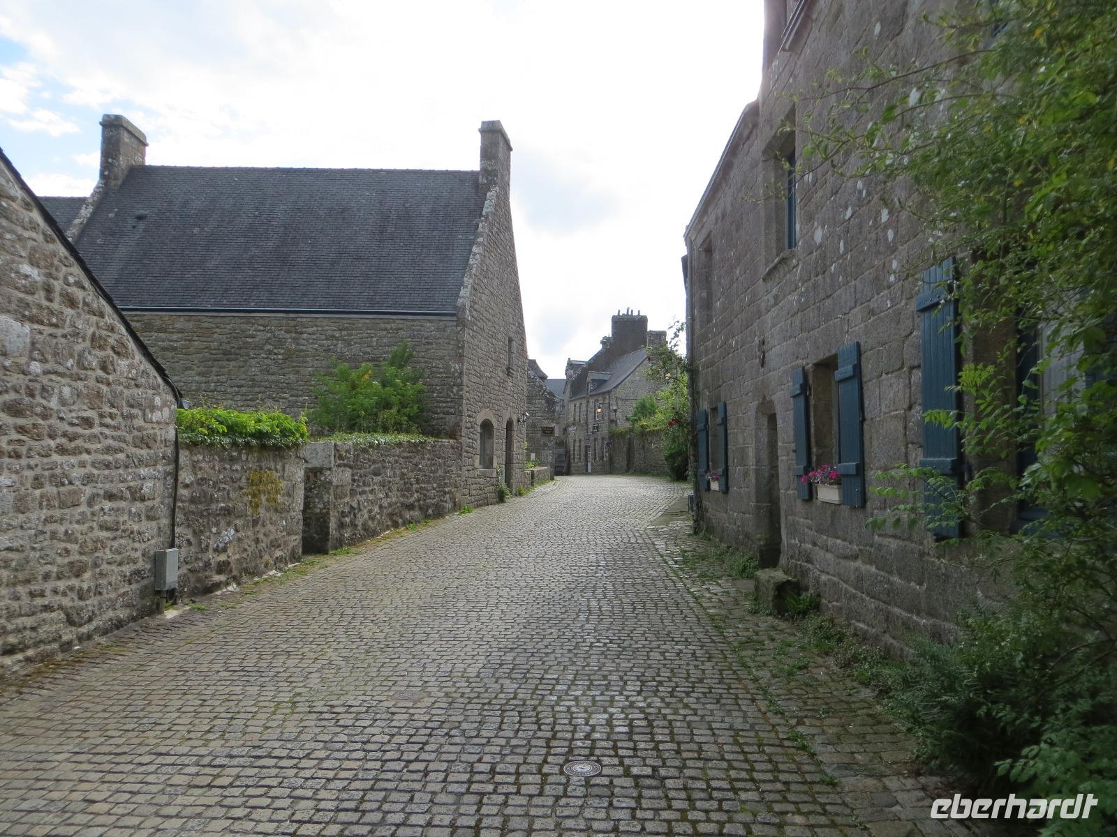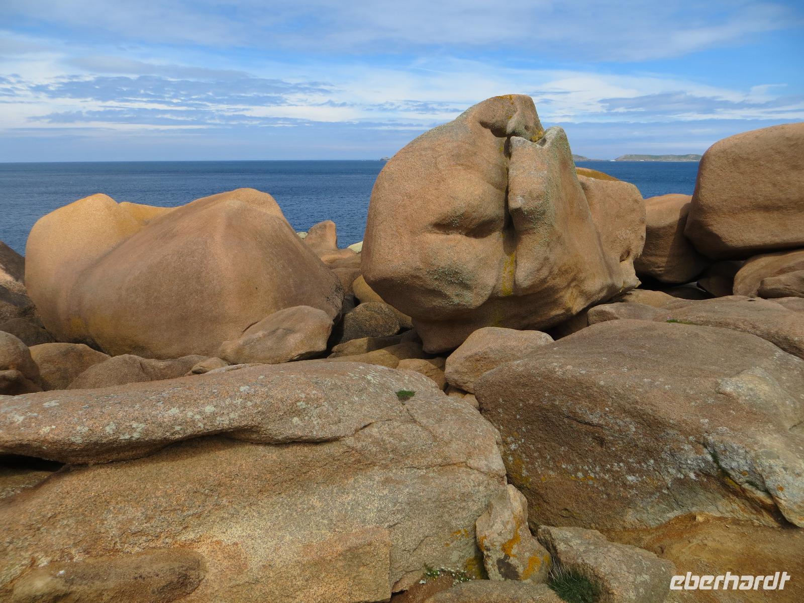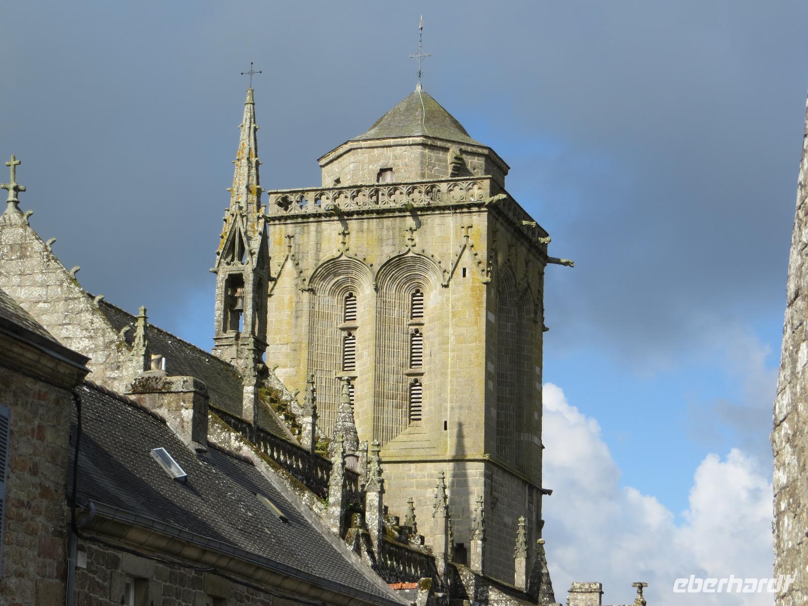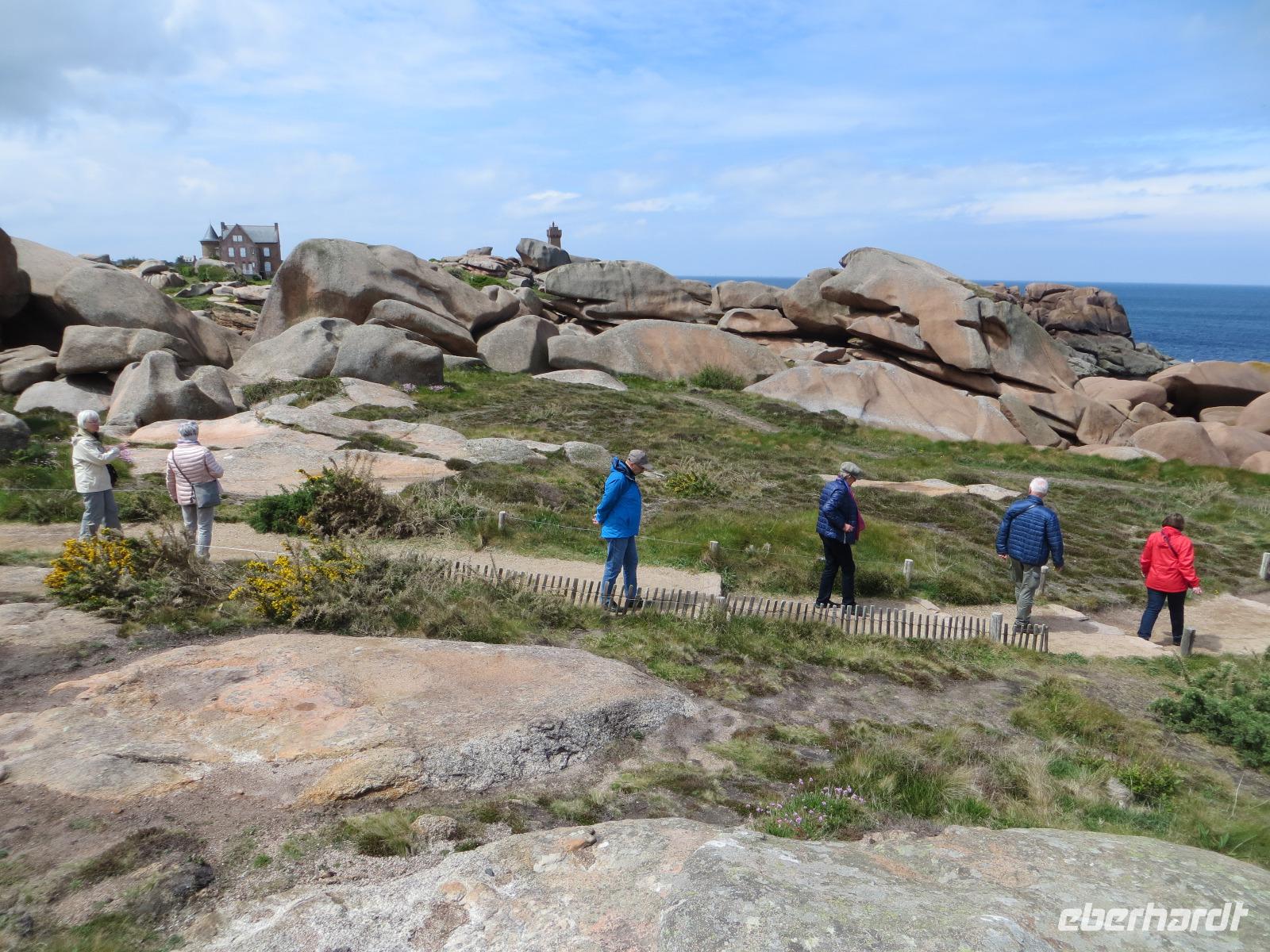 Heute ging es richtig durch die Bretagne von St. Malo zunächst an der Nordküste entlang und später querend im Finistere nach Quimper an der Südküste. Zunächst hielten wir - genau zur Richtungsänderung der Turbinen - am Gezeitenkraftwerk von Rance und diskutierten ein wenig die Möglichkeiten und Grenzen alternativer Energiegewinnung. An Küstenorten wie Dinard vorbei fuhren wir Richtung Cap Frehel, wo wir entlang der Steilküste durch Erika und Ginster zur Capspitze bummelten. Nach der ersten Begegnung mit der Steilküste und dem Meer der Smaragdküste, die bei grauem Wetter eher nicht smaragd strahlte, zog es uns nach Ploumanac'h, dem touristischen Hauptort an der Rosa-Granit-Küste. Durch ein leicht bewältigbares Wegesystem bummelten wir vorbei an den riesigen, von Wind und Wellen geformten Gesteinsbrocken. Mitunter kam sogar die Sonne heraus. Unsere Weiterfahrt durch die ländliche Bretagne führte uns nach Guimillau. Im abgeschlossenen Pfarrbezirk des kleinen Ortes befindet sich einer der bedeutendsten Kalvarienberge Frankreichs. Mehr als zweihundert Figuren stellen das Leben Jesu und seinen letzten Gang auf Golgata dar. Während sich Reisebücher vorrangig auf den Kalvarienberg beschreiben stürzen, wird mitunter die Kirche kaum erwähnt. Sie stammt auch aus der Zeit der französischen Rennaissance und bereits die feinen Figuren am Portal faszinieren. Vierhundert Jahre alte Taufbecken, Altarbilder, die Kanzel und eine immerhin dreihundert Jahre alte Orgel voller Schnitzerein am Prospekt sind ein unerwartetes Kunstwerk in einem Dorf mit kaum eintausend Einwohnern. Die Einfahrt nach Quimper haben wir uns wohl etwas schwerer als erforderlich gemacht und dann war vauch noch die Straße am Hotel gesperrt. Bdreitwillig rollten alle Gäste Ihre Koffer die zweihundert Meter zum Hotel, nicht weit vom Zusammenfluss („Kemper") von Odet und Steir. Mancher bummelte nach dem Abendessen noch in das nahe gelegene Stadtzentrum.