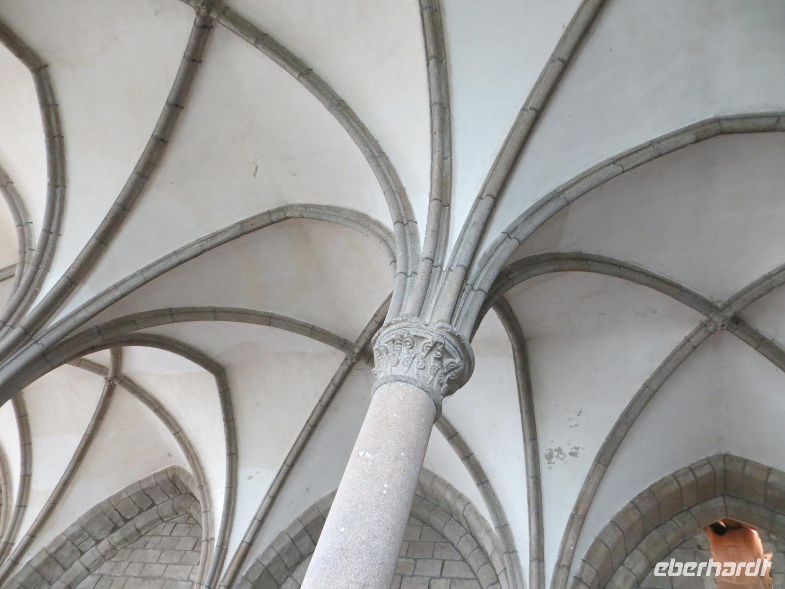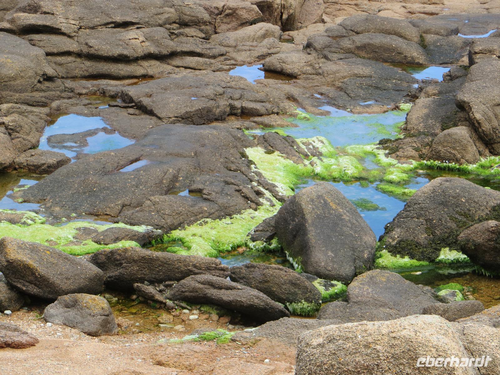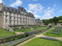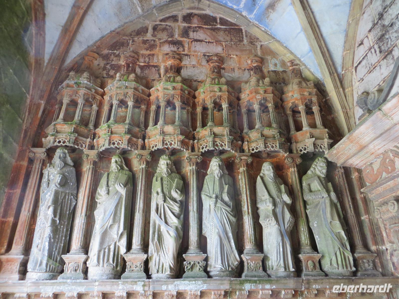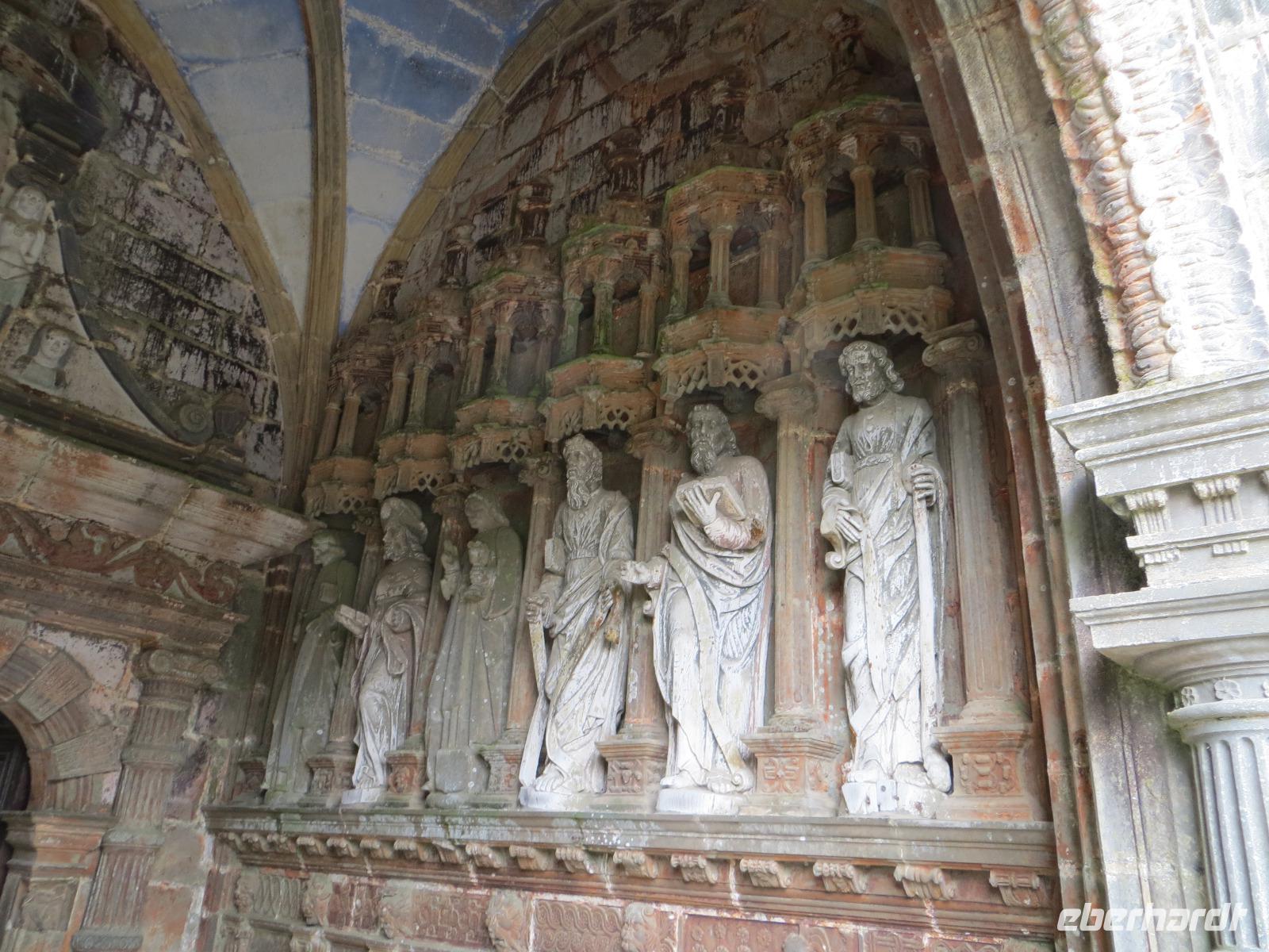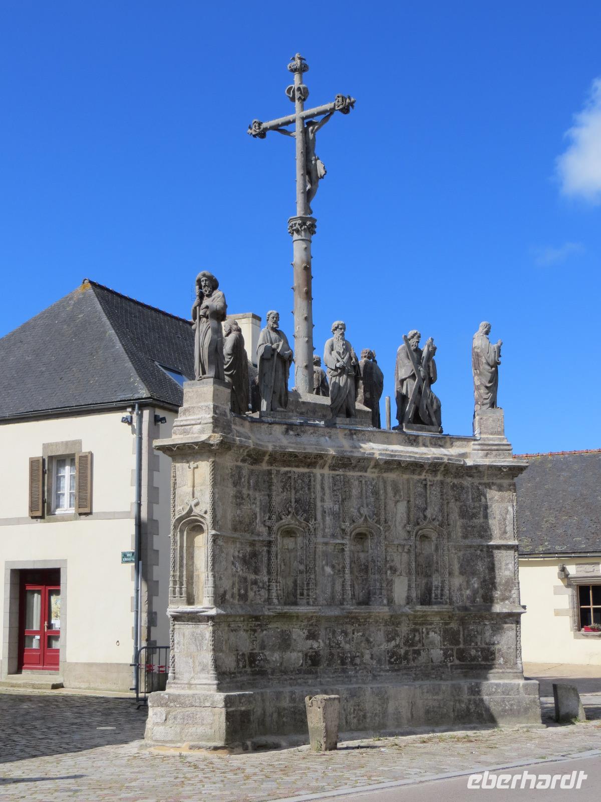 Heute ging es richtig durch die Bretagne von St. Malo zunächst an der Nordküste entlang und später querend im Finistere nach Quimper an der Südküste. Zunächst hielten wir - genau zur Richtungsänderung der Turbinen - am Gezeitenkraftwerk von Rance und diskutierten ein wenig die Möglichkeiten und Grenzen alternativer Energiegewinnung. An Küstenorten wie Dinard vorbei fuhren wir Richtung Cap Frehel, wo wir entlang der Steilküste durch Erika und Ginster zur Capspitze bummelten. Nach der ersten Begegnung mit der Steilküste und dem Meer der Smaragdküste, die bei grauem Wetter eher nicht smaragd strahlte, zog es uns nach Ploumanac'h, dem touristischen Hauptort an der Rosa-Granit-Küste. Durch ein leicht bewältigbares Wegesystem bummelten wir vorbei an den riesigen, von Wind und Wellen geformten Gesteinsbrocken. Mitunter kam sogar die Sonne heraus. Unsere Weiterfahrt durch die ländliche Bretagne führte uns nach Guimillau. Im abgeschlossenen Pfarrbezirk des kleinen Ortes befindet sich einer der bedeutendsten Kalvarienberge Frankreichs. Mehr als zweihundert Figuren stellen das Leben Jesu und seinen letzten Gang auf Golgata dar. Während sich Reisebücher vorrangig auf den Kalvarienberg beschreiben stürzen, wird mitunter die Kirche kaum erwähnt. Sie stammt auch aus der Zeit der französischen Rennaissance und bereits die feinen Figuren am Portal faszinieren. Vierhundert Jahre alte Taufbecken, Altarbilder, die Kanzel und eine immerhin dreihundert Jahre alte Orgel voller Schnitzerein am Prospekt sind ein unerwartetes Kunstwerk in einem Dorf mit kaum eintausend Einwohnern. Die Einfahrt nach Quimper haben wir uns wohl etwas schwerer als erforderlich gemacht und dann war vauch noch die Straße am Hotel gesperrt. Bdreitwillig rollten alle Gäste Ihre Koffer die zweihundert Meter zum Hotel, nicht weit vom Zusammenfluss („Kemper") von Odet und Steir. Mancher bummelte nach dem Abendessen noch in das nahe gelegene Stadtzentrum.
