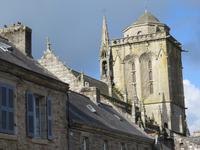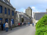 Der fakultative Busausflug führte auf das westlichste Kap des Festlandes von Frankreich. Zunächst fuhren wir jedoch zum kleinen Dörfchen Locronon, dem einst die Segeltuchweberei Reichtum gebracht hatte und dies wohl dem Heiligen Ronan, einem irischen Mönch verdankt. Heute gehört der Ort zu den schönsten Dörfern Frankreichs. Manchmal erhaschten wir einen Sonnenstrahl, so dass die grauen bretonischen Gebäude mit blauen Fensterrahmen und hellem Grün von Pflanzen ganz freundlich im Lichte schimmerten. Auf unserer Weiterfahrt zum Pointe du Raz stoppten wir im kleinen Ort Confort mit einer Kirche aus dem 16. Jahrhundert, einem großrädrigen Glockenspiel im Kirchenschiff, dass wir natürlich läuten ließen und einem Kalvarienberg mit 13 Figuren, darunter einigen ausgetauschten Aposteln. Das Glockengeräusch, das wir verursachten, lockte einen Einheimischen an, der uns zur Kirche noch mehr erklärte, vor allem uns aber die gegenüberliegende ehemalige Schmiede zeigte, die heute durch einen Verein an Sonnabenden zur Besichtigung geöffnet wird. Am großen Parkplatz vor dem Point du Raz entschieden sich die meisten zunächst zum nahen Aussichtspunkt mit Blick auf die Biskaya zu gehen, so dass alle ihre läuferischen Potenzen für eine Stundentour abschätzen konnten. Auf ebenem, breitem Weg ging es entlang der Steilküste bis zum Kap. Die Erfahrung, am westlichsten Punkt Frankreichs gewesen zu sein, begossen wir mit Bordeaux und verkosteten bretonischen Käse. Bei böigem Wind und grauem Himmel stiegen wir in den Bus und hatten den Ausflug trocken erlebt und mit Landschaftseindrücken gefüllt. Zur guten Sonnabend-Nachmittagszeit hatten alle in Quimper die Möglichkeit zum Bummeln hinter der der Stadtmauer, nur wenige Schritte entfernt von unserem Hotel.