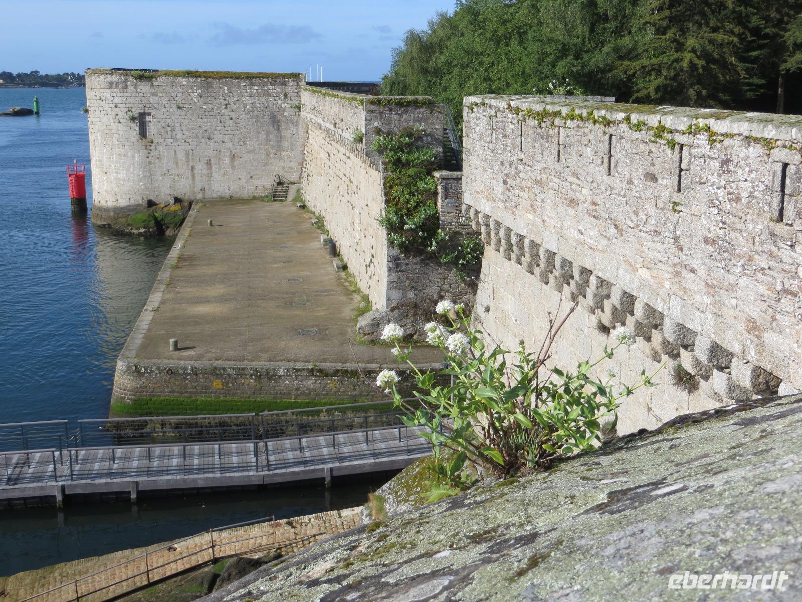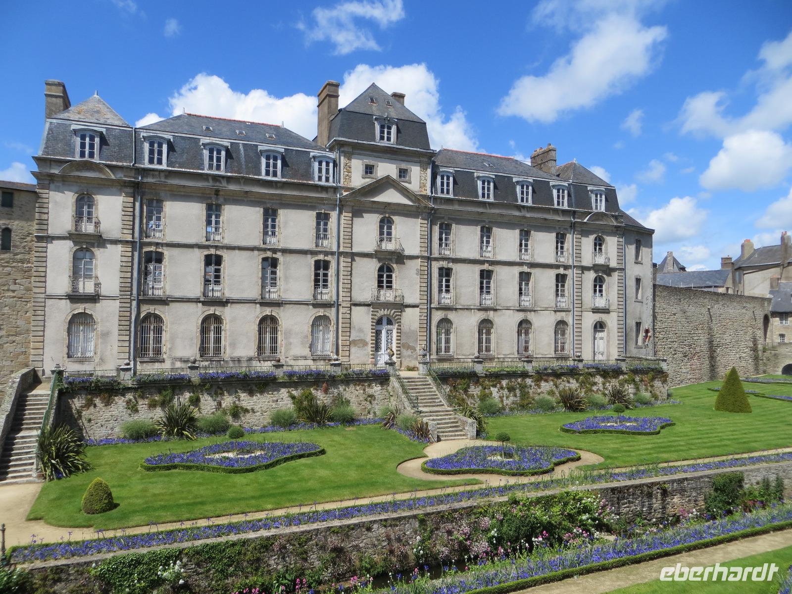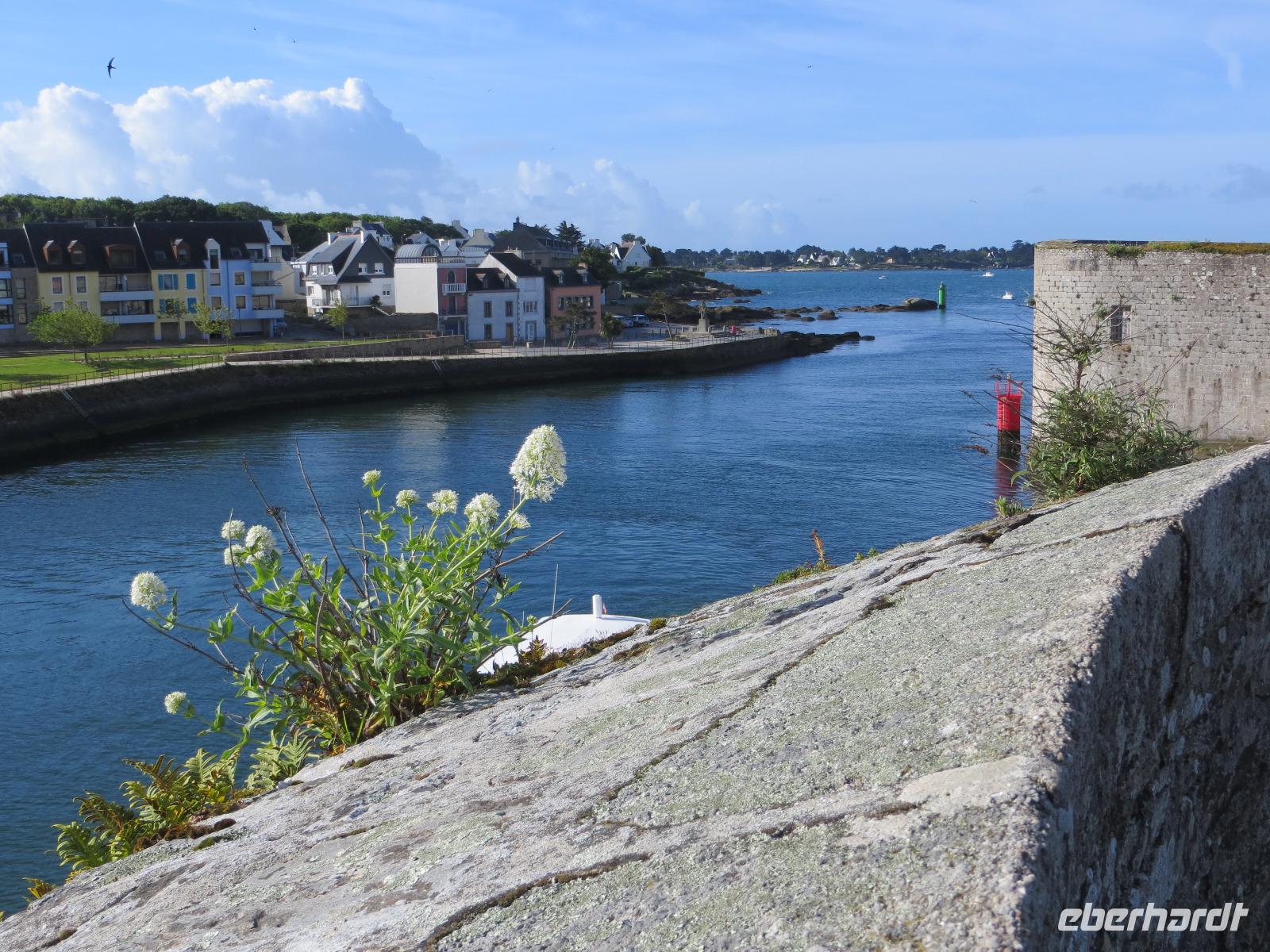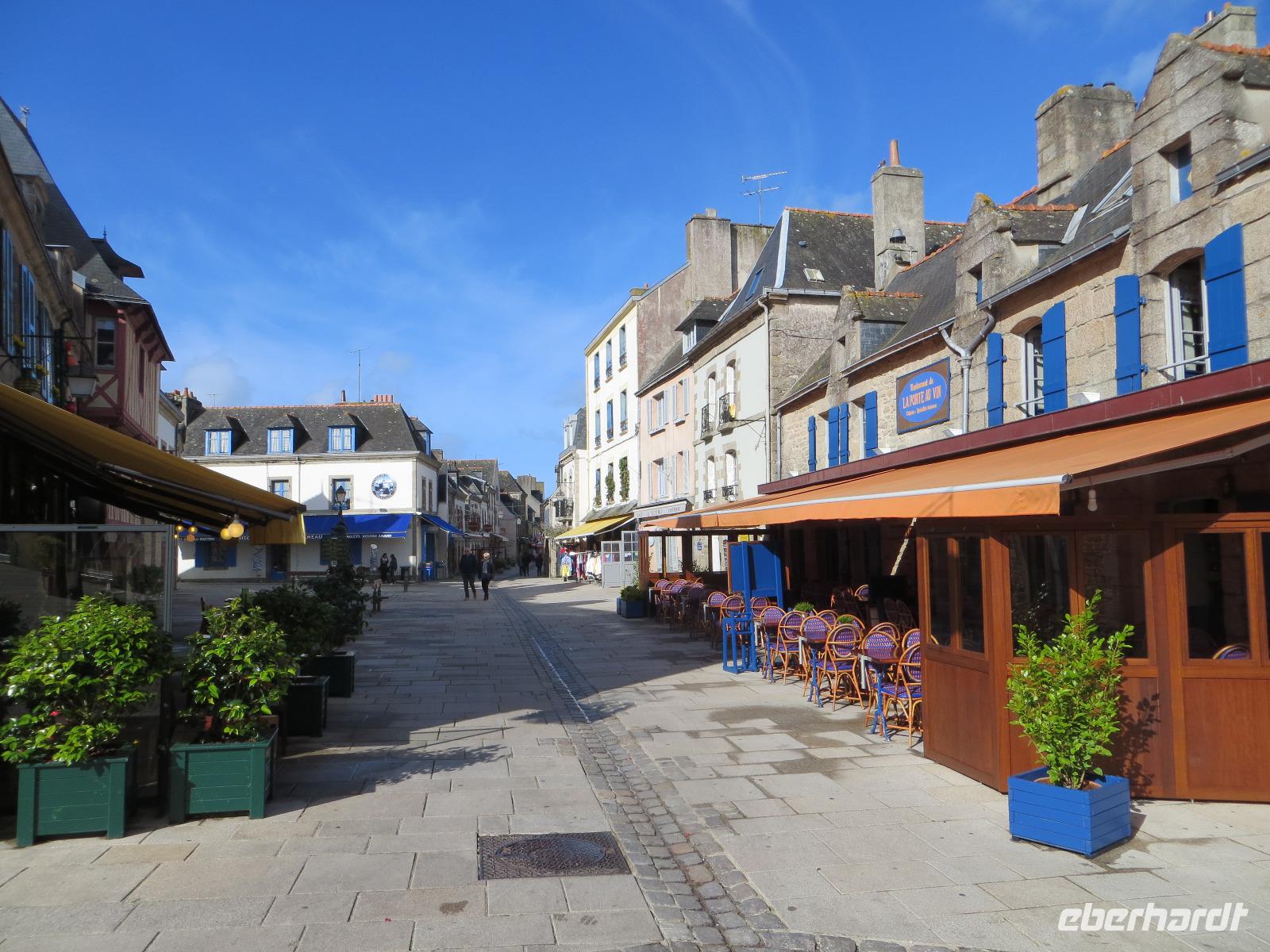 Am frühen Vormittag erreichten wir den Fischerort Concarneau mit seiner einst geschlossenen Stadt, einer Altstadt im Festungsring auf einer Halbinsel im Meer. Ohne Touristen und noch mit geschlossenen Geschäften hat der Ort durchaus seinen Reiz, weil man die ursprüngliche Bausubstanz viel besser erkennen kann als im Gewimmel von Touristen und Auslagen. Auf üblichem Weg durch die Altstadt erreichten wir das Weintor, erheischten Fotos an der Außenmauer voller Blüten und stiegen auf den Ausblick an der Festungsmauer. Bei lockerer Bewölkung fuhren wir weiter an die Südküste der Bretagne Richtung Carnac. Die Ortsbezeichnung gründet sich auf dem englischen Wort carns für Steine. Vor mehr als fünftausend Jahren stellten hier die Menschen teils behauene Findlinge auf und richteten sie in parallelen Reihen aus. So sind heut noch sechs der sogenannte Menhirfelder nördlich von Carnac mit je ca. 950 - 1150 Steinen zu besichtigen. Im bereits vor Carnac liegenden Feld bei Erdeven kann man sogar zwischen den Steinen gehen und entdeckt Dolmen von fünf bis sieben Metern Höhe, umgeben von Eichenbäumen mit Vogelgezwitscher. So hatten wir ein prächtiges Naturerlebnis während unser Fahrer Holger die Küchenelektrik reparierte. Am zeitigen Nachmittag erreichten wir Vannes, checkten im Hotel ein und starteten zum Stadtrundgang mit Friedhelm, dem „bretonischen Eroberer", der uns mit häufigen Fragen unsere Unwissenheit demonstrieren wollte oder seinen Kindern - in Begleitung zeigen - wollte, was er für ein toller Guide, Unternehmer, Buchautor und natürlich Bretone sei. Am Alten Hafen startend, zog es uns durch das Hafentor, in den doppelwandigen Stadtmauerring - heut eine blühende Gartenanlage nach französischer Gartenarchitektur - an der Waschstelle vorbei und dann hinauf über den Platz der Ritterturniere zur Kathedrale. Nach sechzehn Uhr war Zeit für individuelles Bummeln - leider war die Stadt am Sonntagnachmittag doch recht verweist, aber wer suchte, der fand auch ein Eis oder gar mehr.