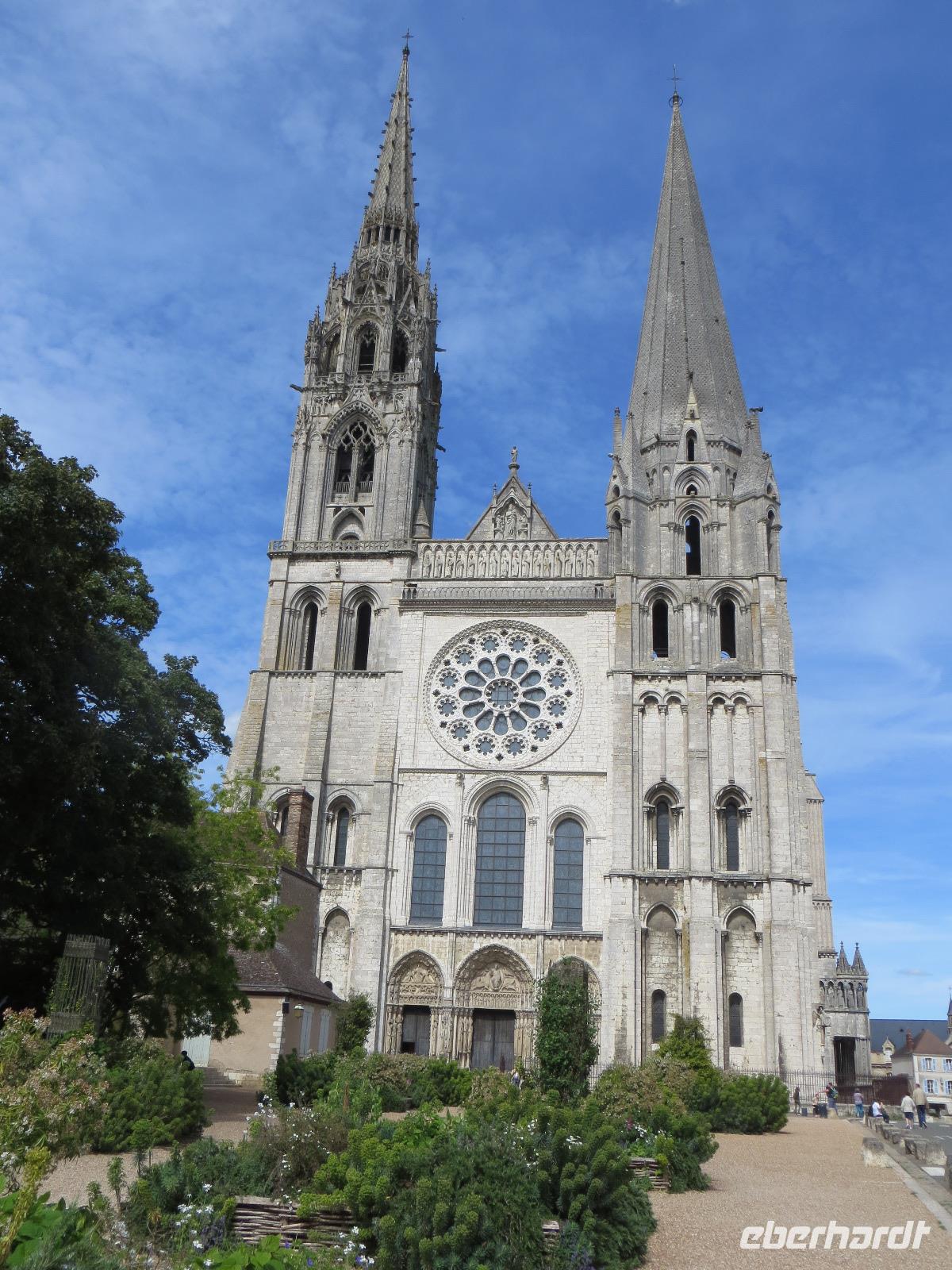 Wir verließen die Bretagne bei Nantes und erreichten nach fast drei Stunden Fahrt Anger. Die meisten Gäste drangen - nach Zahlung der fälligen Gebühr - durch die gewaltige Festungsmauer des Herzogs von Anjou und bestaunten den größten in Europa gewebten Teppich mit Szenen der Apokalypse. Die letzte Kathedrale, die wir besichtigen wollten, wurde vor achthundert Jahren gebaut: die Kathedrale Notre Dame von Chartres - älteste, fast ursprünglich erhaltene Kirche der Hochgotik. Beeindruckend die Lebendigkeit der Figuren an den Portalen, die Glasmalereien, die riesigen Rosetten an drei Seiten der Kathedrale, die unterschiedlichen Turmbauten aus zwei Zeitepochen, die Chorbarriere und die figuralen Darstellungen am Chor. Das war dann UNESCO-Weltkulturerbe vom Allerfeinsten zum Abschluss einer Perlenkette von Reiseeindrücken. Beim Hinübergehen zum Bus noch ein Blick auf ein Denkmal, das daran erinnert, dass es Frankreich 1789 war, dass die allgemeinen Menschenrechte erstmals postulierte. Mit etwas Stau - oder war es bereits mehr als „etwas2?; zumindest war es wohl das Übliche, erreichten wir unser Holiday Inn östlich von Paris.