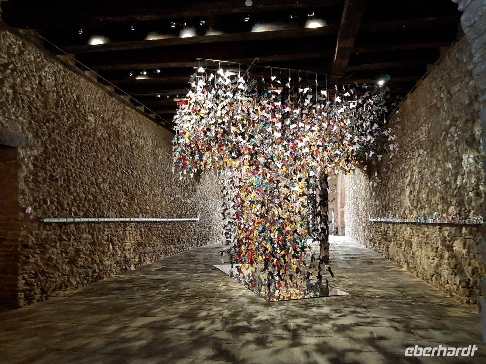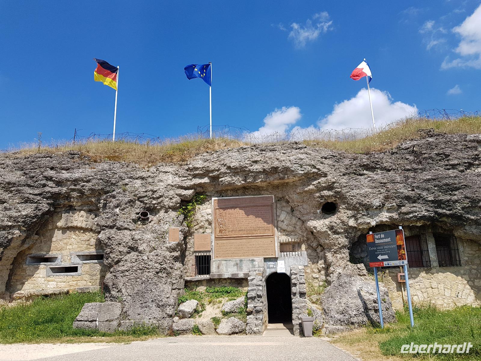 Nach unserer ersten Nacht in Frankreich und einem guten Frühstück fuhren wir am Morgen mit unserem Bus nach Verdun. Dort trafen wir unsere örtliche Fremdenführerin Madame Catherine Kremer, die uns zuerst mit der Geschichte der alten Stadt Verdun vertraut machte. Dann jedoch sollten die Orten und Ereignissen des Kriegsjahres 1916 zum beherrschenden Thema des Vormittags werden. Wie fuhren zunächst an Schlachtfeldern des 1. Weltkriegs vorbei und kamen zum 1932 eingeweihten Beinhaus vom Douaumont. Hier werden die sterblichen Überreste von 130.000 nicht identifizierten französischen und deutschen Soldaten aufbewahrt. Nach einem sehr eindrücklichen Dokumentarfilm, den wir dort sahen, fuhren wir zum Fort Douaumont, um das 1916 erbittert gekämpft wurde und besichtigten wir die Anlage. Sie legt bis heute ein bitteres Zeugnis ab für die Grausamkeit an den Fronten des 1. Weltkriegs und für die schockierenden Lebensumständen der Soldaten im Fort Douaumont.