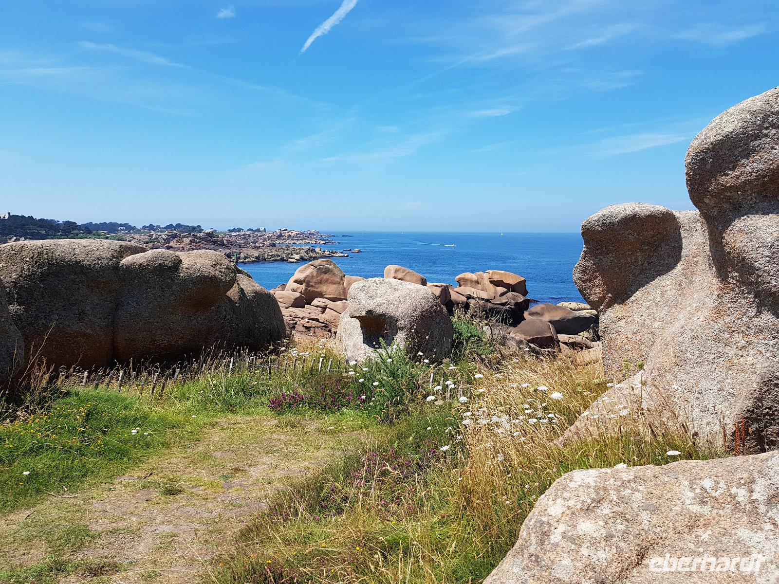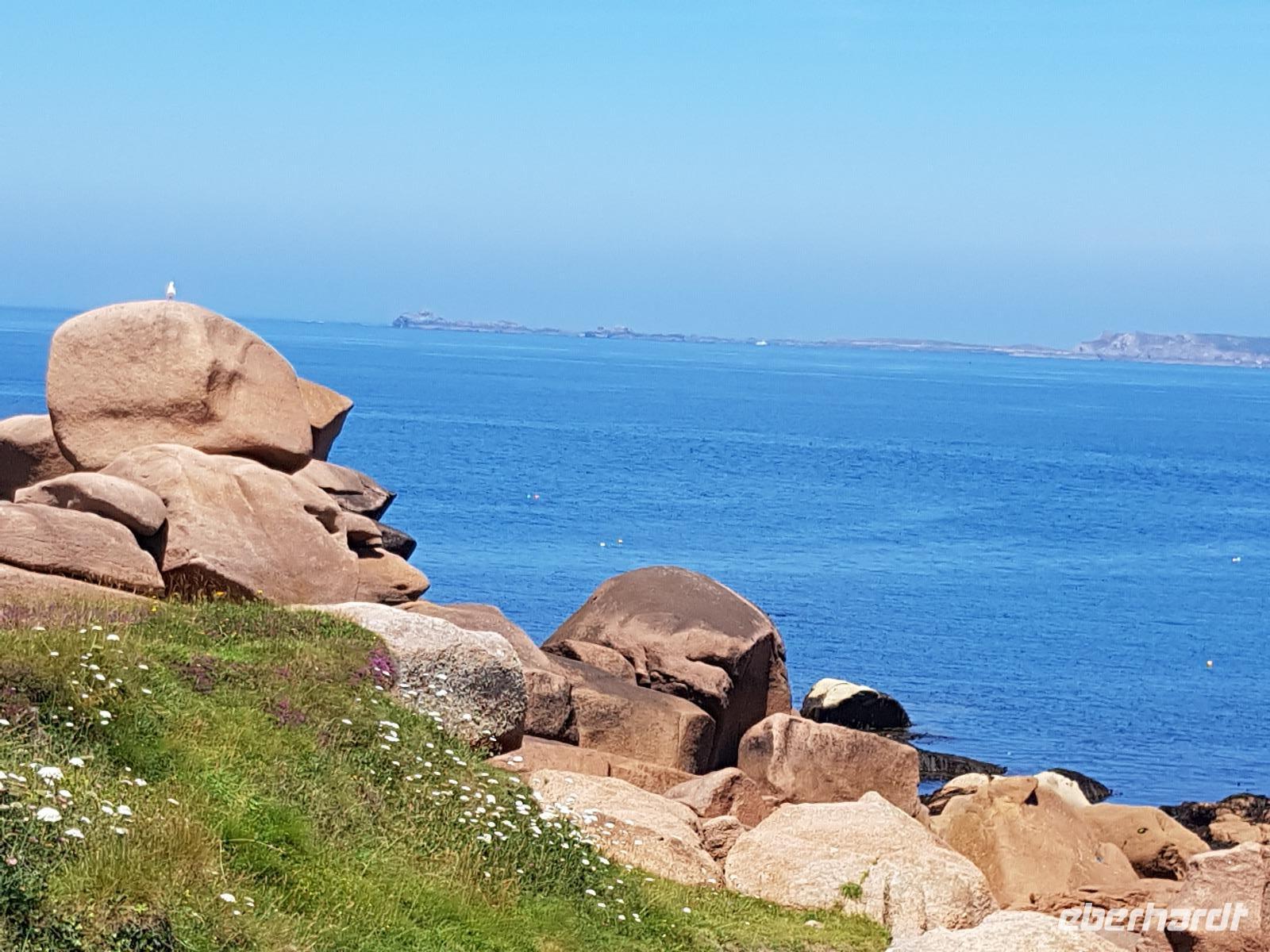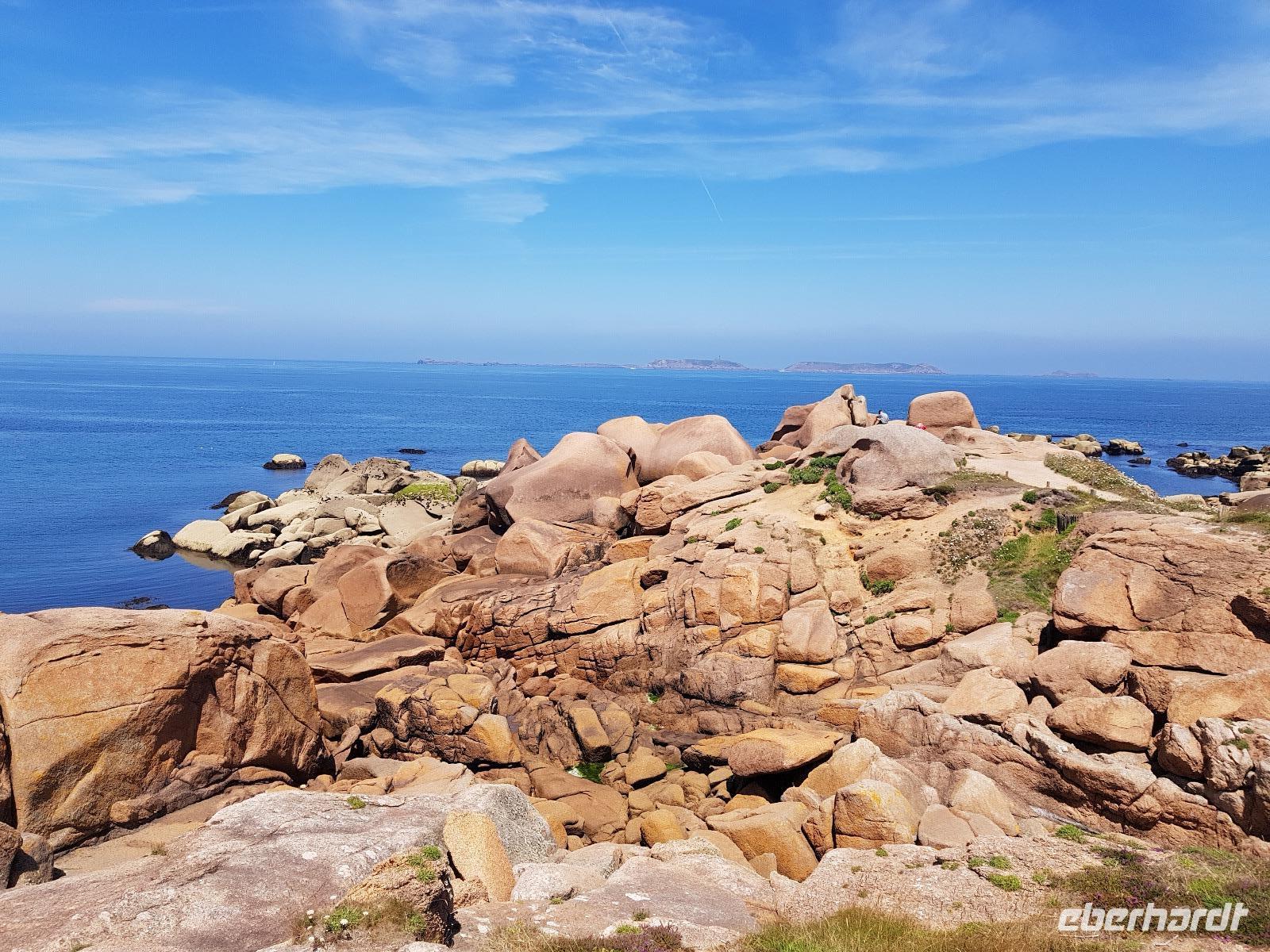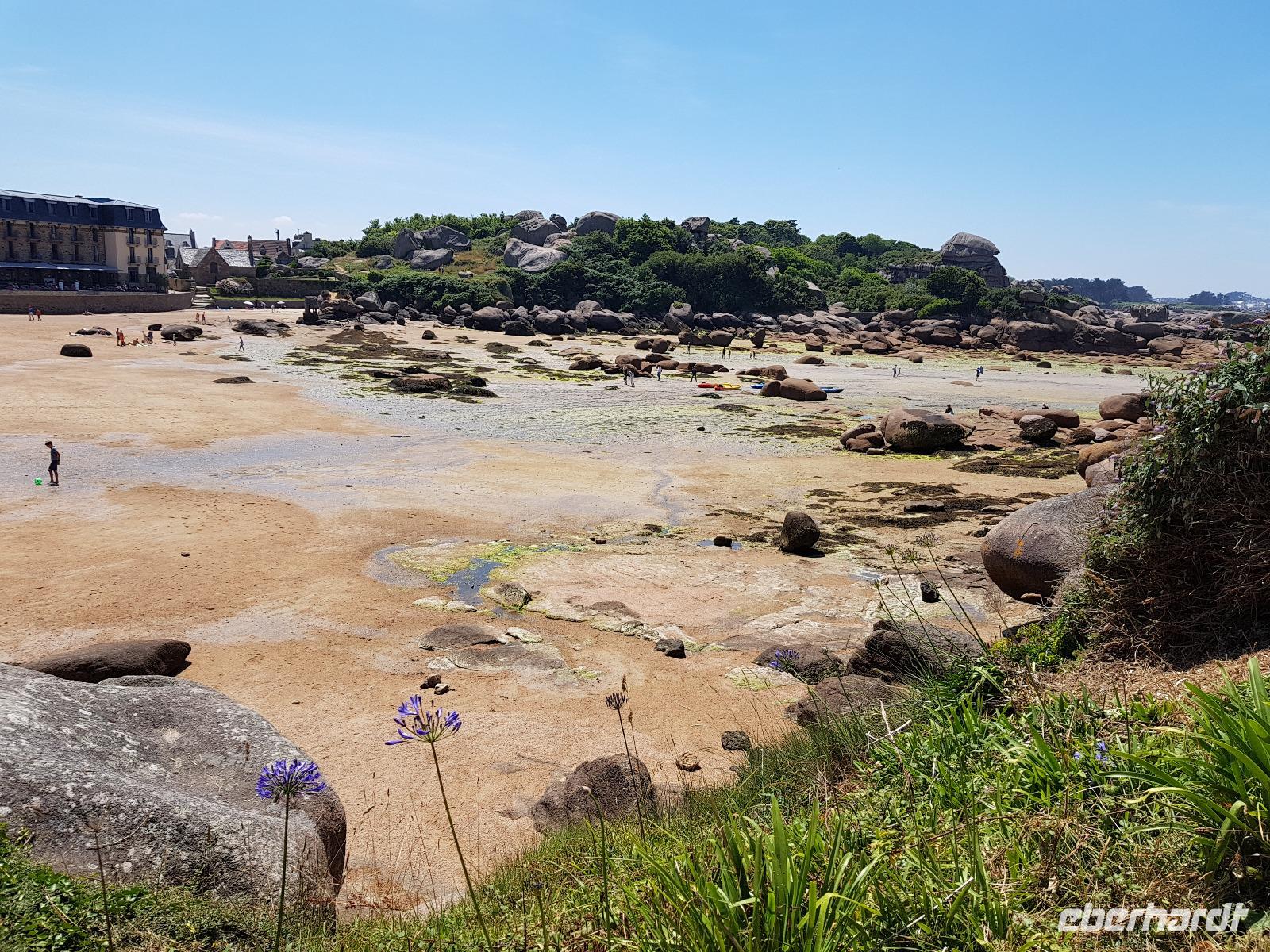 Nach diesem wunderbaren Küstenerlebnis an der Côte d'Emmeraude steuerten wir nun die Granitküste, die Côte d'Granit Rose, an. Nach einer Mittagspause am Bus in Ploumanac'h wanderten wir bei schönstem Sommerwetter auf dem alten Zöllnerpfad an den gigantischen Steinkolossen vorüber, sahen in ihnen Tiere, Köpfe und allerlei Fabelwesen und waren fasziniert von der spektakulären Felsenlandschaft und ihren bizarre Formen.