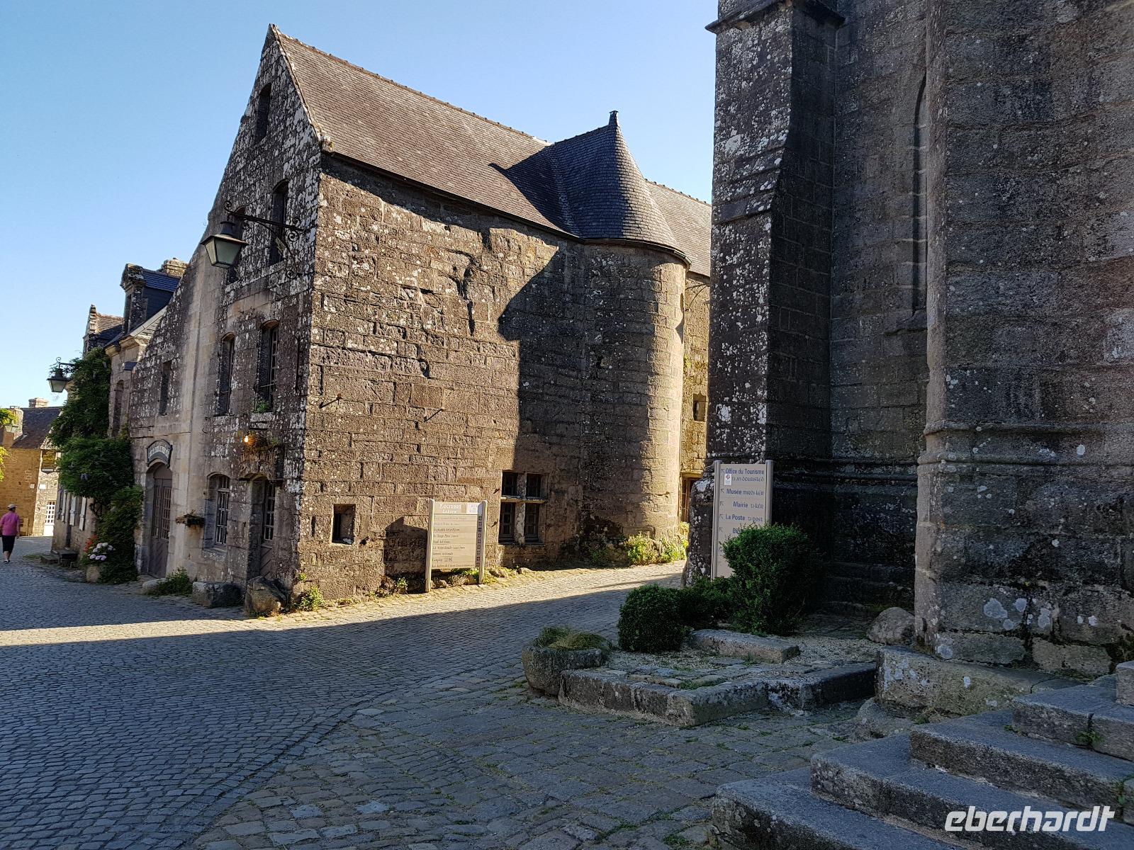 Am heutigen Samstag unternahmen wir einem fakultativen Ausflug nach Locronan und zur Pointe du Raz. Fast die gesamte Gruppe war mit von der Partie. Das Dorf, das in der historischen Landschaft der Cornouaille liegt, wurde benannt nach dem Heiligen Ronan, der im 7. Jahrhundert aus Irland in die Bretagne gekommenen war. Er gehörte zu den frommen Männern, die in dieser Zeit von den britischen Inseln kamen, um das Christentum in der Bretagne zu verbreiten. Nach seinem Tod wurde er in der Kirche von Locronan bestattet.Später wuchs um die Kirche herum ein Dorf, das sich zu Beginn der Neuzeit auf die Herstellung von Segeltuch spezialisierte. Mit diesem Segeltuch wurden seinerzeit nicht nur bretonische Fischer und Seeleute sondern auch die Schiffe der Königlichen Marine Frankreichs ausgestattet. Seit diesen Jahrhunderten der Blüte versank Locronan in einen Dornröschenschlaf und blieb mit seinen malerischen Renaissance-Gebäude aus Granitstein und seinem stimmungsvollen Marktplatzes nahezu unverändert erhalten. Vor vielen Jahren schon wurde Locronan vom Film als Drehort entdeckt Über 30 Filme wurden hier inzwischen gedreht, darunter so berühmte Filme wie "Tess" von Roman Polanski mit Nastassja Kinski in der Hauptrolle und „Chouans ! - Revolution und Leidenschaft" von Philippe de Broca mit Sophie Marceau und Philippe Noiret.