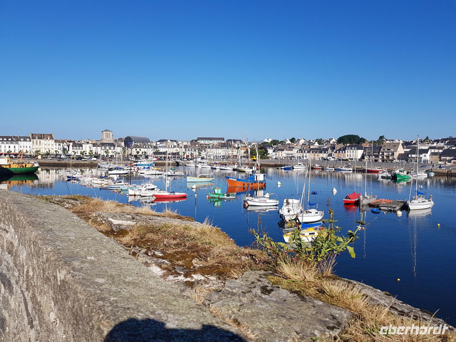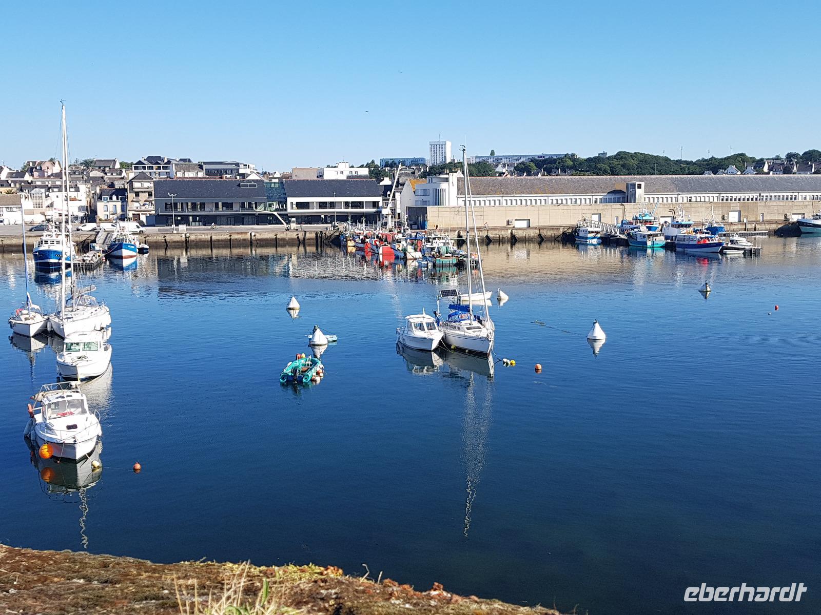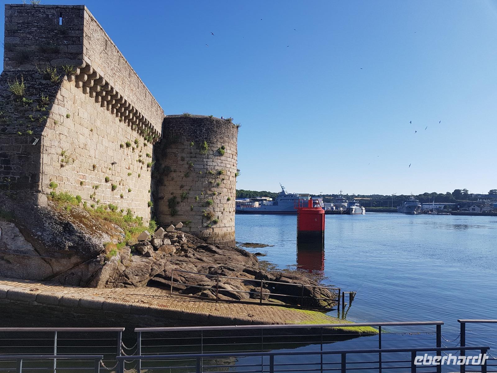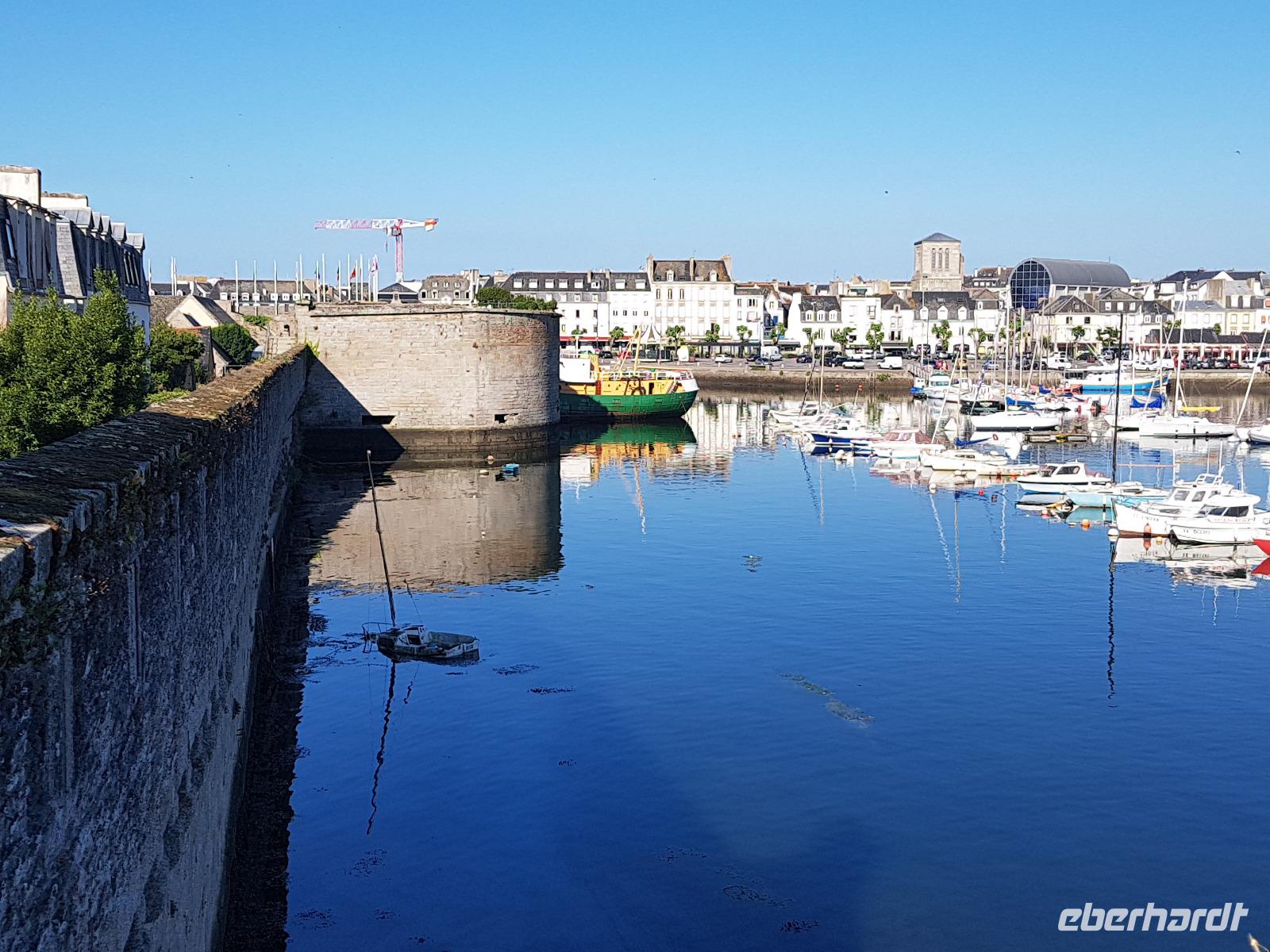 Schon früh am Morgen sind wir nach Concarneau gefahren. Die Altstadt von Concarneau war in der Geschichte eine der wichtigsten Festungen der Bretagne und liegt heute genau zwischen Fischerei- und Jachthafen. Im 12. Jahrhundert wurde die einstige Insel durch eine Brücke mit dem Festland verbunden. Die Sardienenfischerei war früher der Haupterwerbszweig der Fischer. Als aber 1905, als die Sardinenschwärme plötzlich ausblieben, verbreitete sich schnell Armut und Ratlosigkeit. Die Künstler aus dem nahen Pont-Aven kamen aber auf die fabelhafte Idee, ein Fest als Wohltätigkeitsveranstaltung für die Fischer zu organisieren, das schließlich ein voller Erfolg wurde. Seit dieser Zeit feiert man hier jedes Jahr Mitte August das "Festival der blauen Netze" (Fête des Filets Bleus). Darüber hinaus ist Concarneau dank der Kriminalromane von Jean-Luc Bannalec als Dreh- und Angelpunkt des Kommisars George Dupin seit einigen Jahren auch zur Krimi-Stadt avanciert.