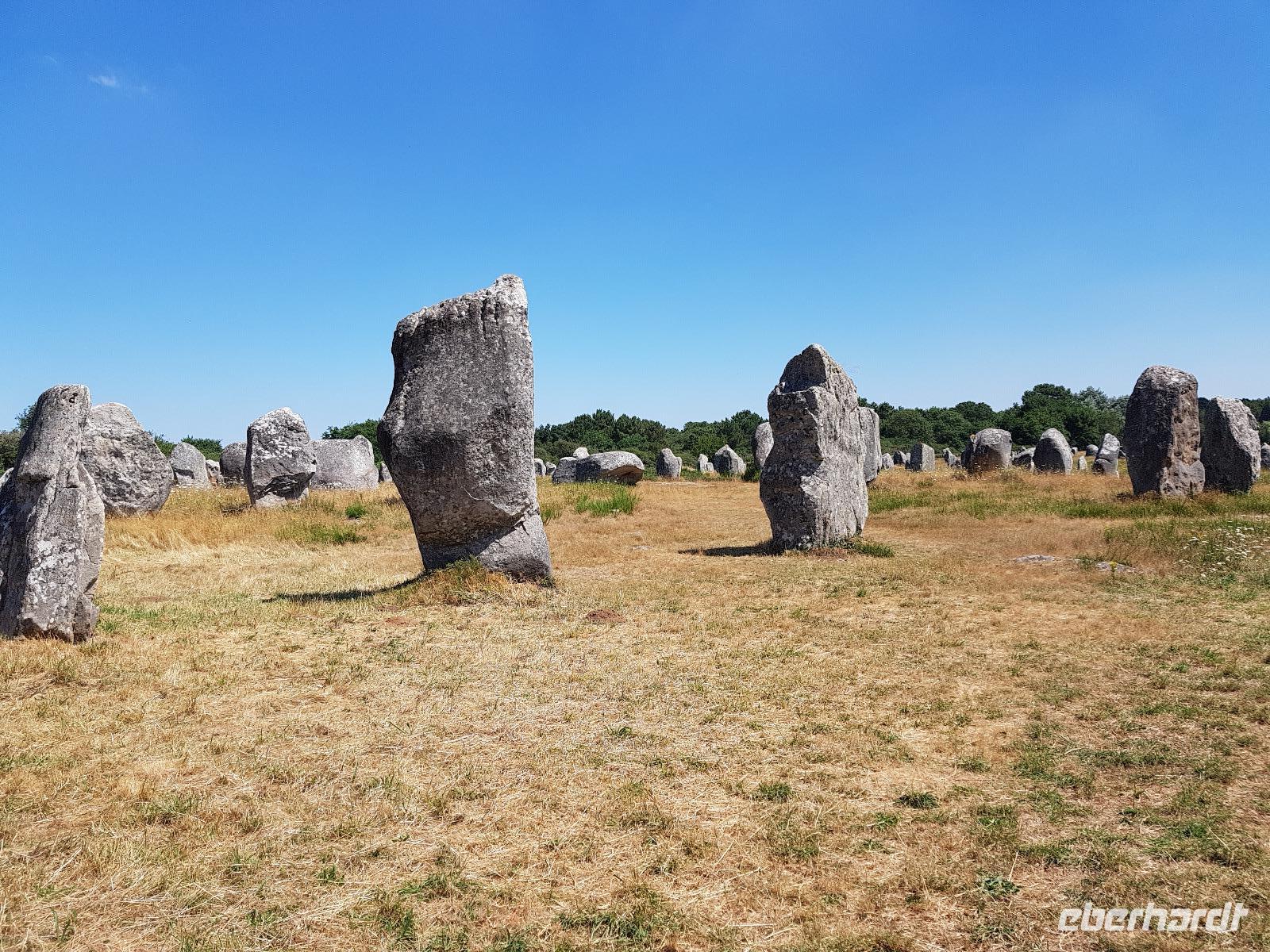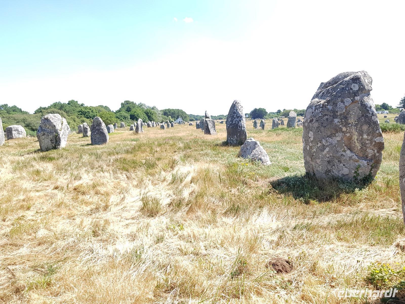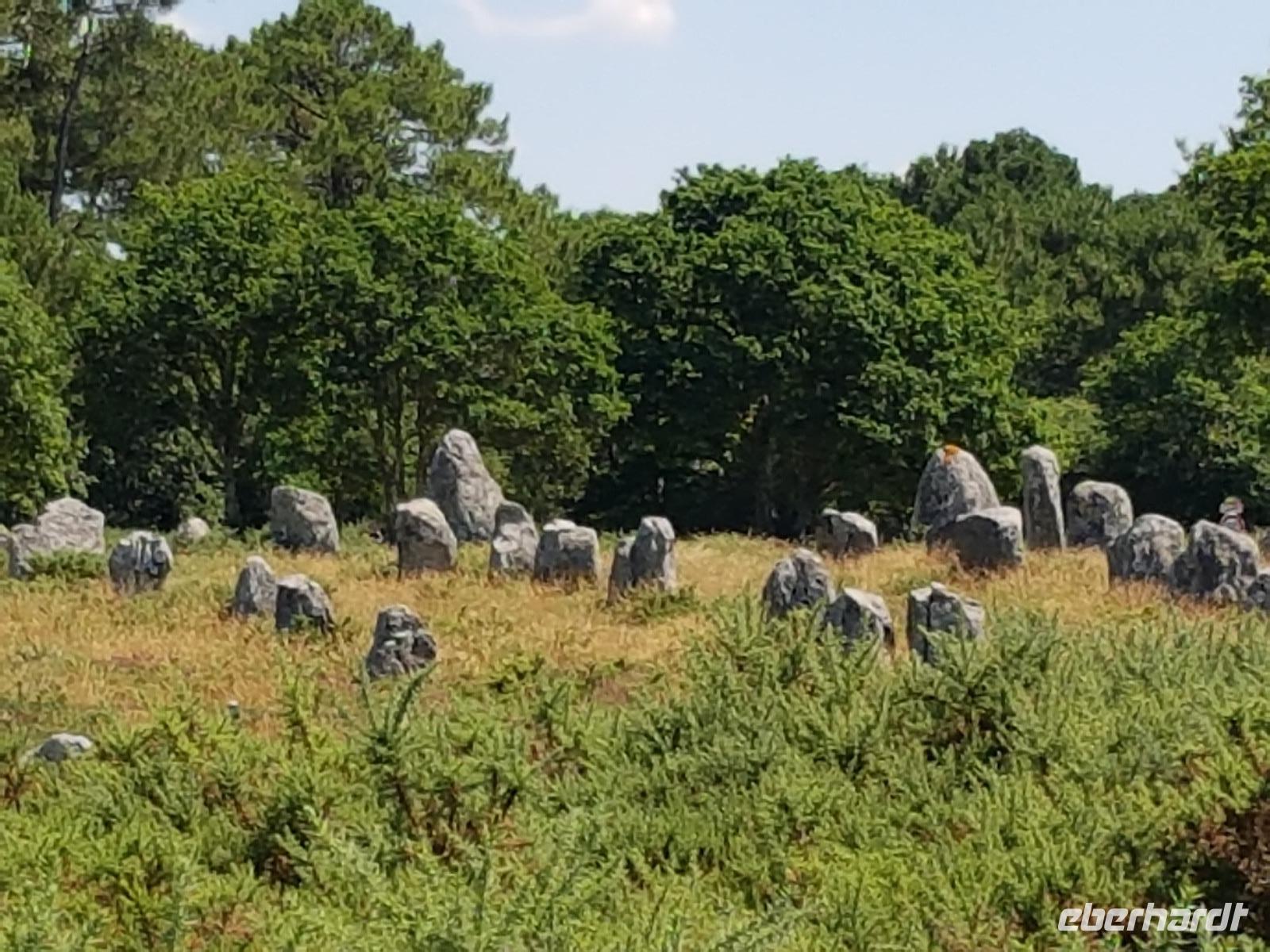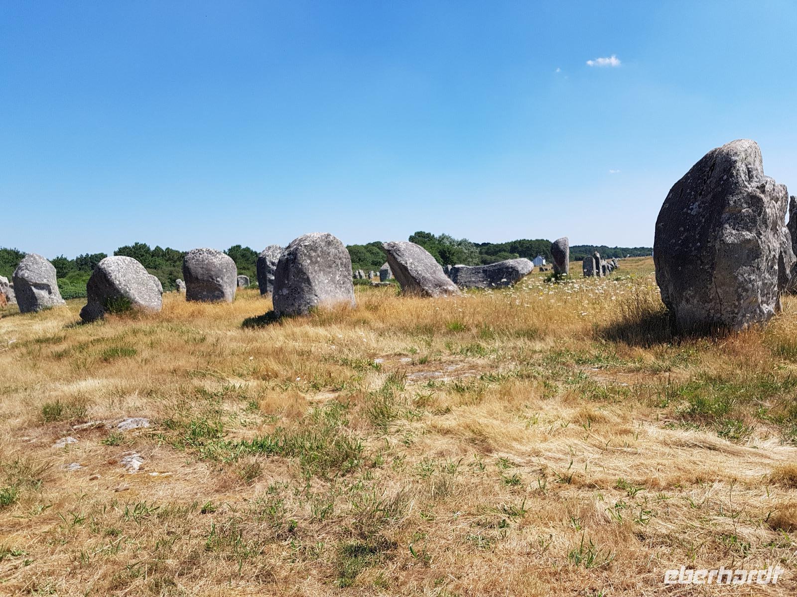 Wenig später erreichten wir über die Schnellstraße 165 das Departement Morbihan, wo wir die weltweit berühmten, aus der Jungsteinzeit stammenden Megalithanlagen von Carnac besuchten. In Le Ménec, ein Dorf bei Carnac, umfassen die zwischen dem 5. und dem 3. Jahrtausend v. Chr. entstandenen Steinreihen (Alignements) 1050 Steine, die sich über eine Länge von 950 m erstrecken. Hier enden die 11 Reihen der bis zu 4 Meter hohen Menhire. Die Deutung der gesamten Megalithanlage von Carnac liegt noch immer im Dunkeln. Sicher ist jedoch, dass es sich hier um eine der ältesten Kultstätten der Menschheitsgeschichte handelt.