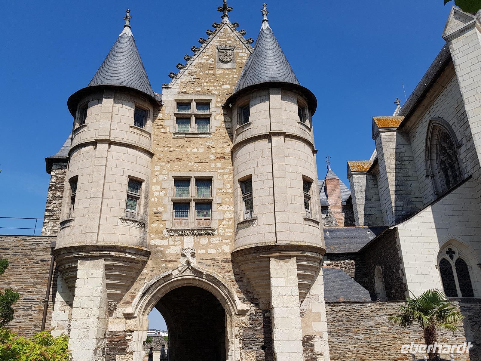 Nach einer durch die Geräuschkulisse der nächtlichen Siegesfeiern etwas unruhigen Nacht verließen wir am Montagmorgen Vannes und nahmen wenig später Abschied von der Bretagne. Bei la Roche-Bernardt überquerten wir den Fluss Vilaine, der heute die Grenze zur Region Pays de la Loire markiert. Später kamen wir an der alten bretonischen Residenz- und Hafenstadt Nantes vorbei, heute Hauptstadt dieser Region. Bald darauf erreichten wir Angers - die am Fluss Maine gelegene einstige Hauptstadt des Anjou. Ihre Blütezeit begann im 12. Jahrhundert unter den mächtigen Herzögen von Plantagenet, die zugleich Könige von England waren. Sie endete 1480 mit dem Tod des schöngeistigen Herzogs Réné, der sich schon 1475 in die Provence zurückgezogen hatte.