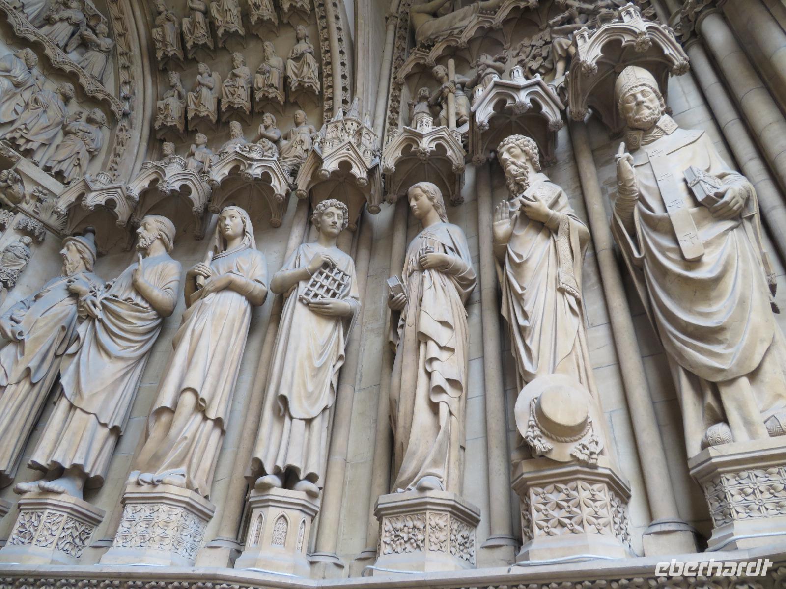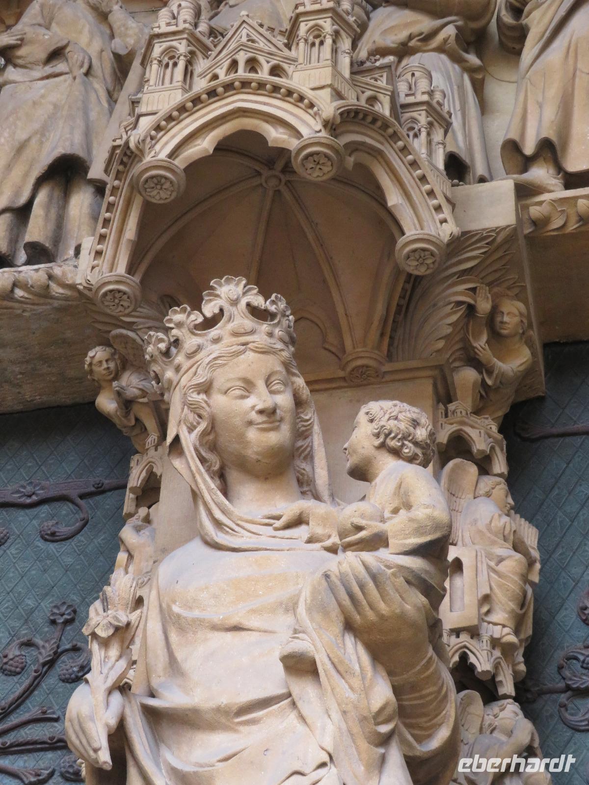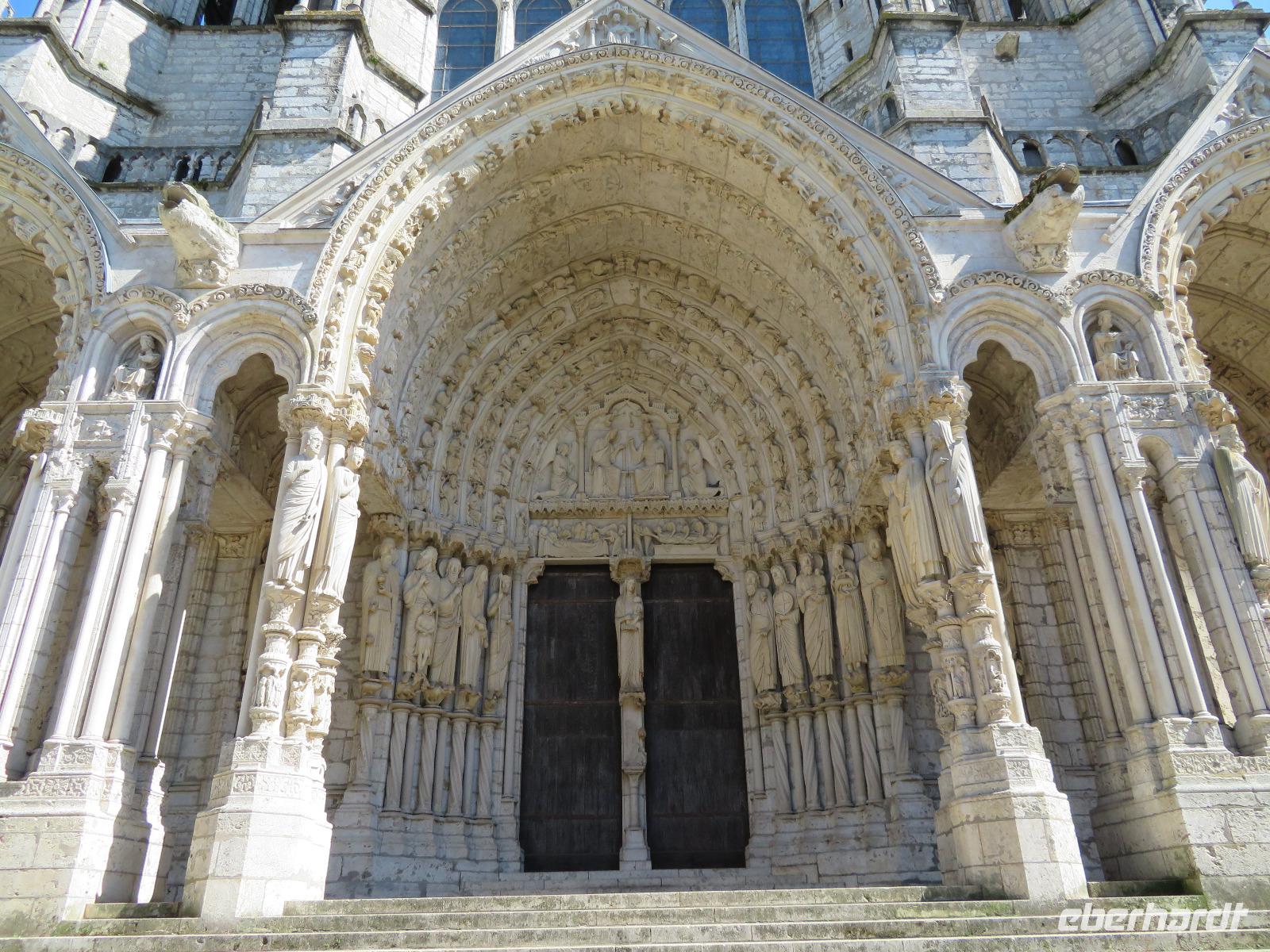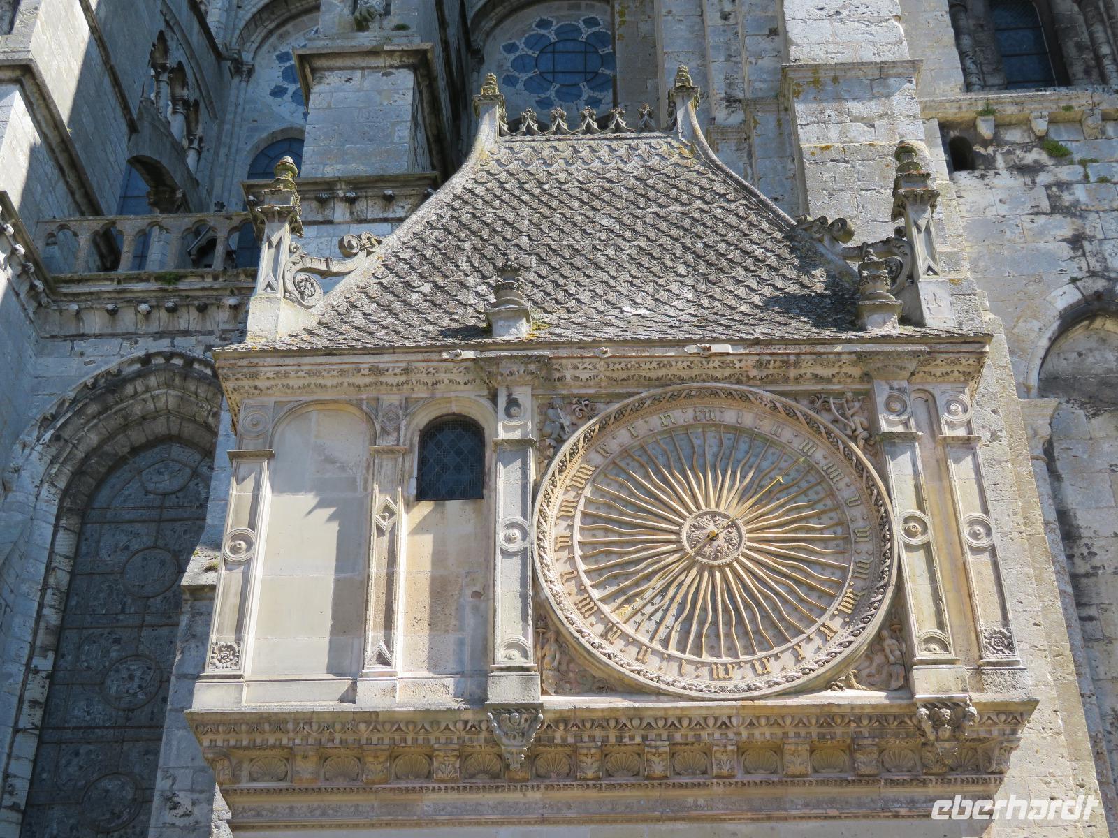 Die letzte Kathedrale, die wir besichtigen wollten, wurde vor achthundert Jahren gebaut: die Kathedrale Notre Dame von Chartres - älteste, fast ursprünglich erhaltene Kirche der Hochgotik. Beeindruckend die Lebendigkeit der Figuren an den Portalen, die Glasmalereien, die riesigen Rosetten an drei Seiten der Kathedrale, die unterschiedlichen Turmbauten aus zwei Zeitepochen, die durch Restaurierung wieder weiß erstrahlende Chorbarriere mit unzähligen figuralen Darstellungen. Das war dann UNESCO-Weltkulturerbe vom Allerfeinsten zum Abschluss einer Perlenkette von Reiseeindrücken. Beim Hinübergehen zum Bus noch ein Blick auf ein Denkmal, das daran erinnert, dass es Frankreich 1789 war, das die allgemeinen Menschenrechte erstmals postulierte. Mit nur wenig Stau erreichten wir unser Novotel in Creteil.